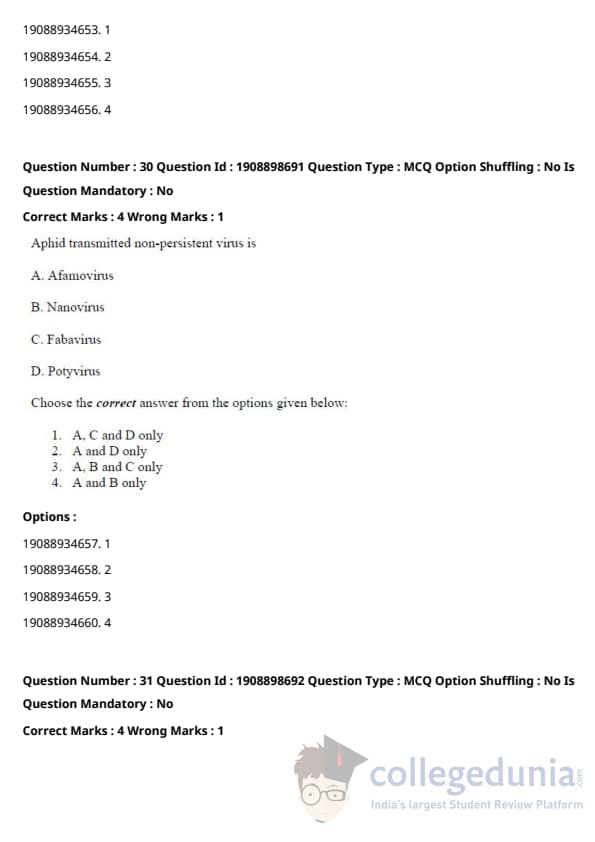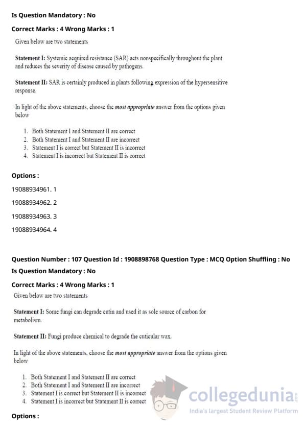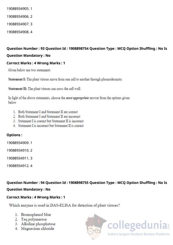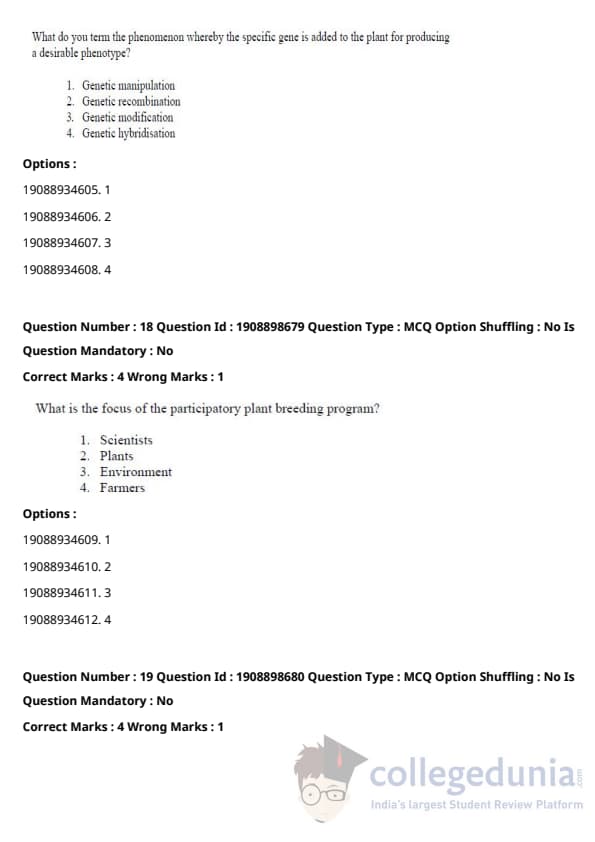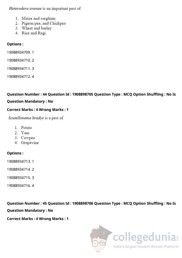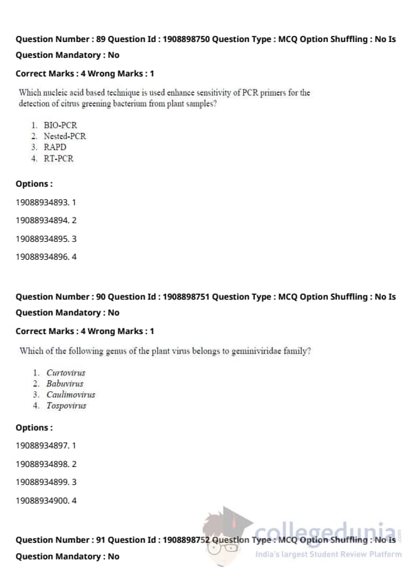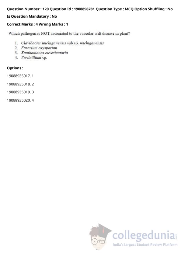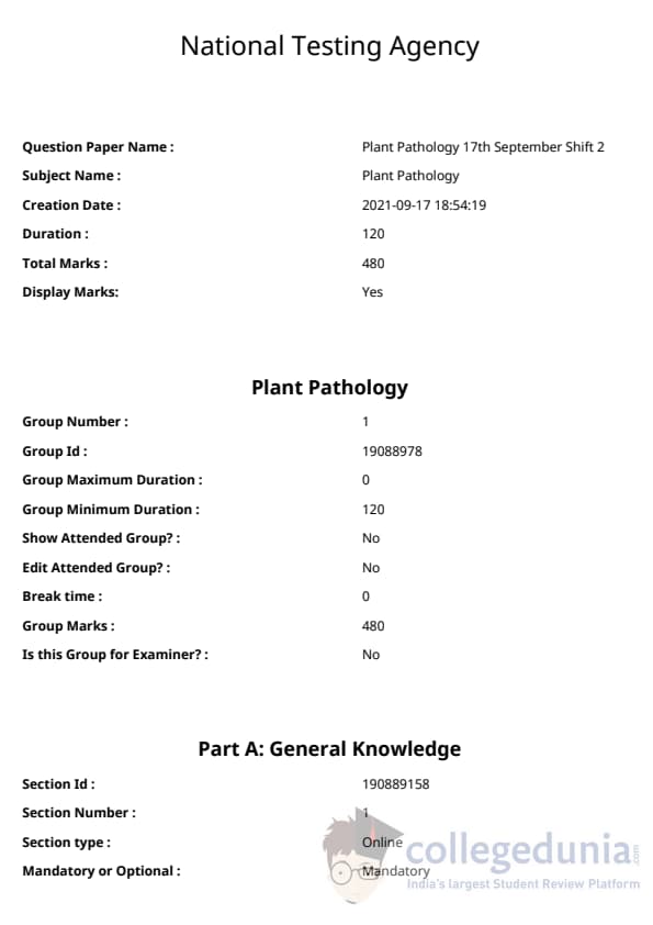 ICAR AIEEA 2021 JRF - PLANT PATHOLOGY Question paper with answer key pdf conducted on September 17, 2021 in Afternoon Session is available for download. The exam was successfully organized by National Testing Agency (NTA). The question paper comprised a total of 120 questions.