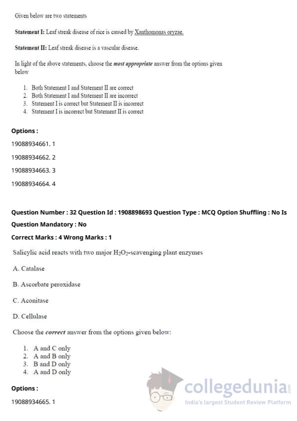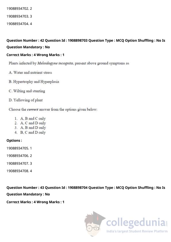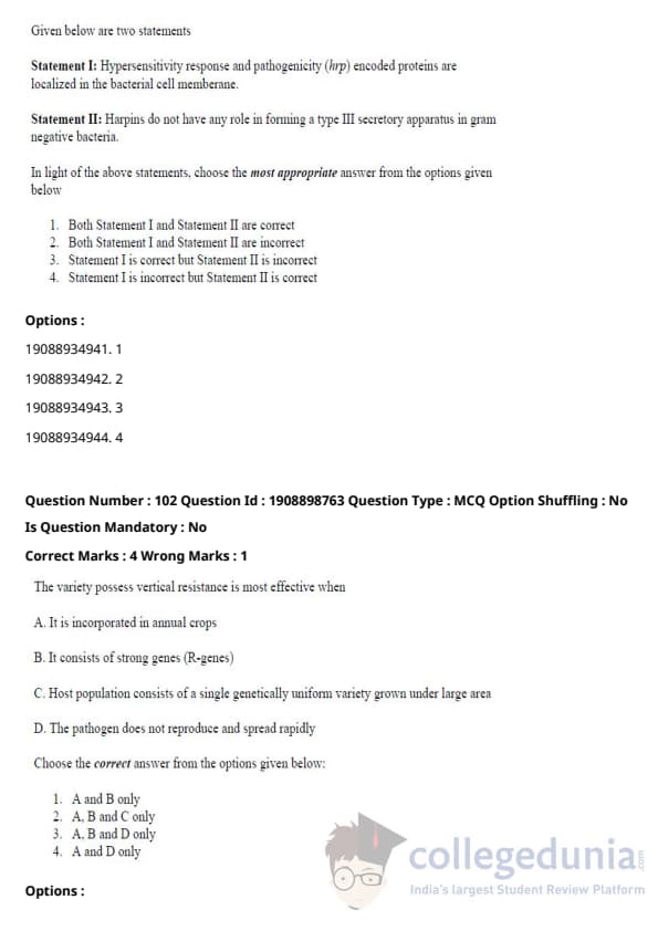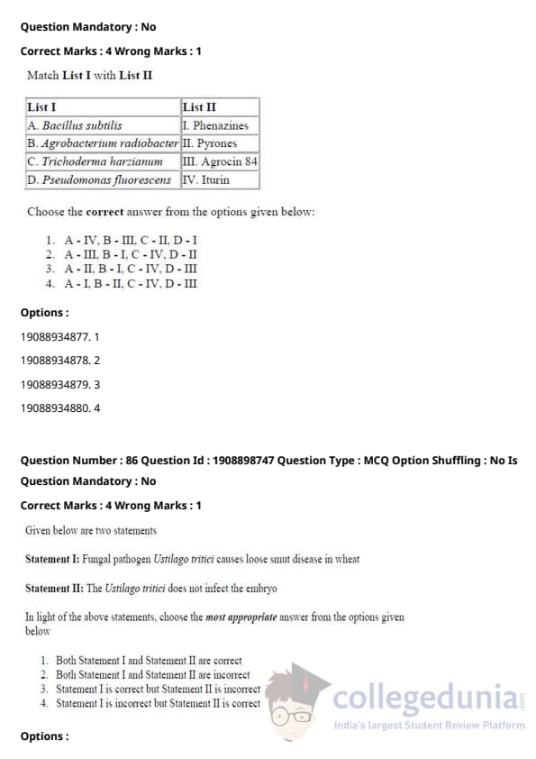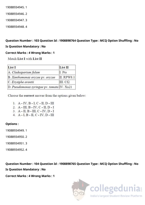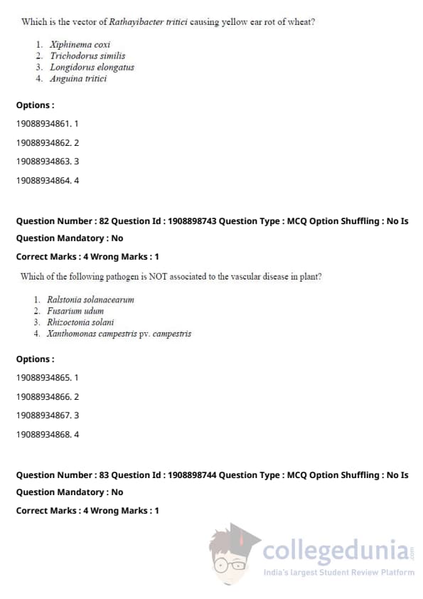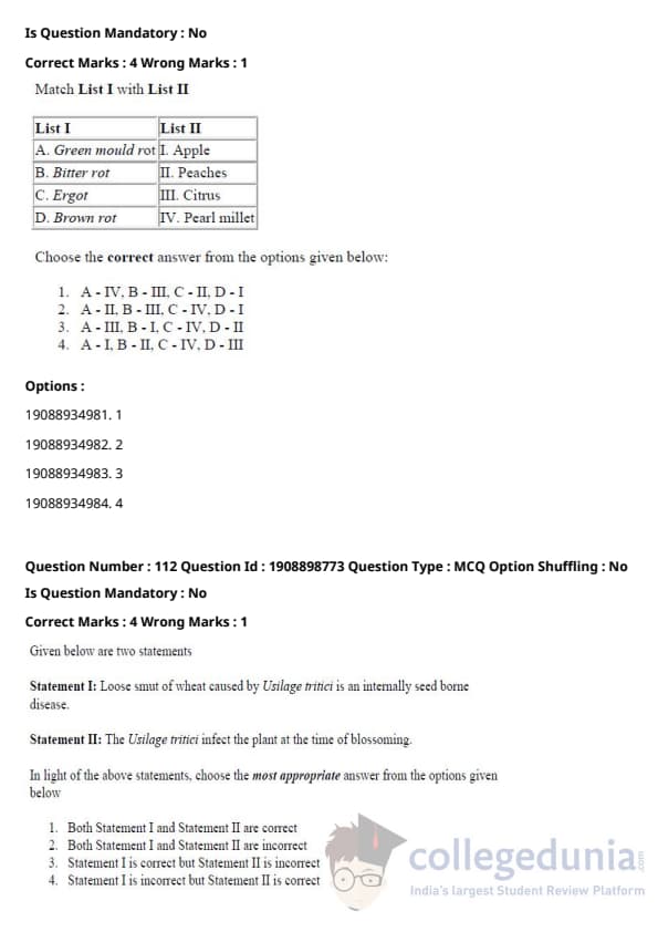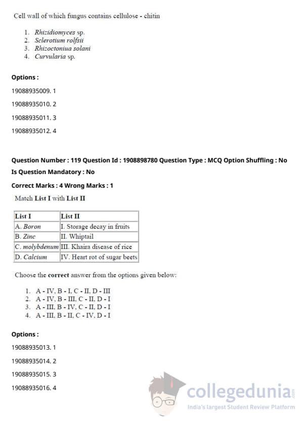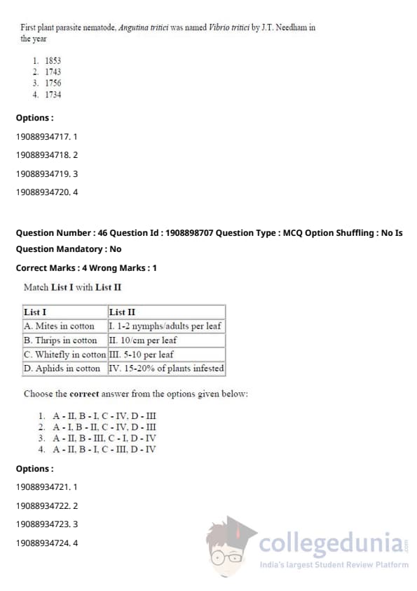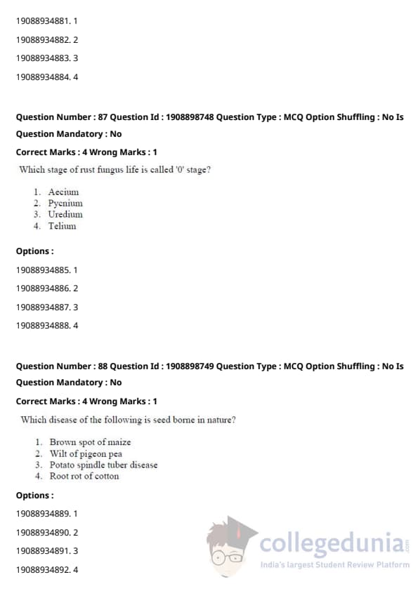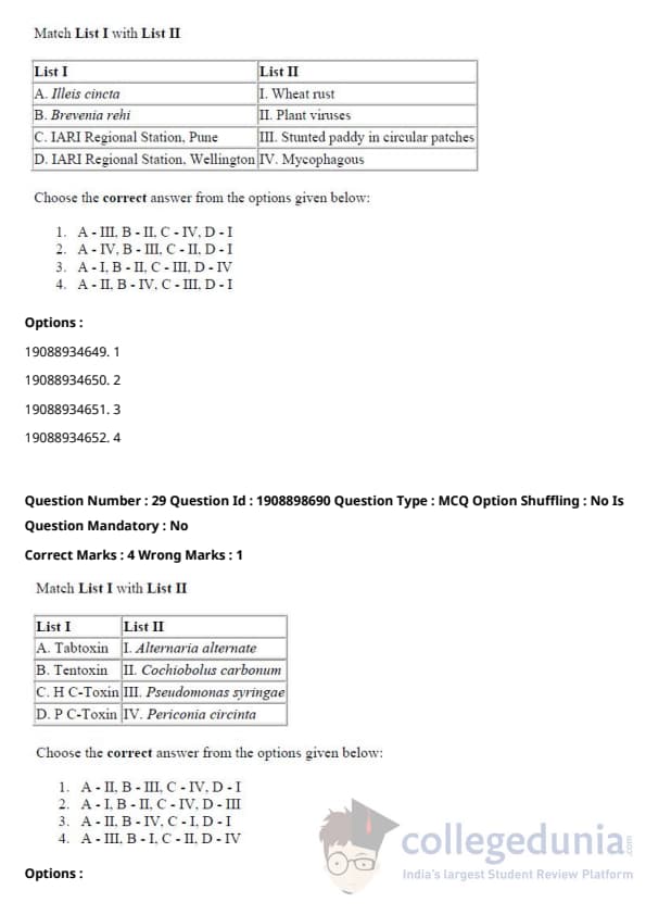 ICAR AIEEA 2021 JRF - PLANT PATHOLOGY Question Paper with Answer Key PDFs Afternoon Session