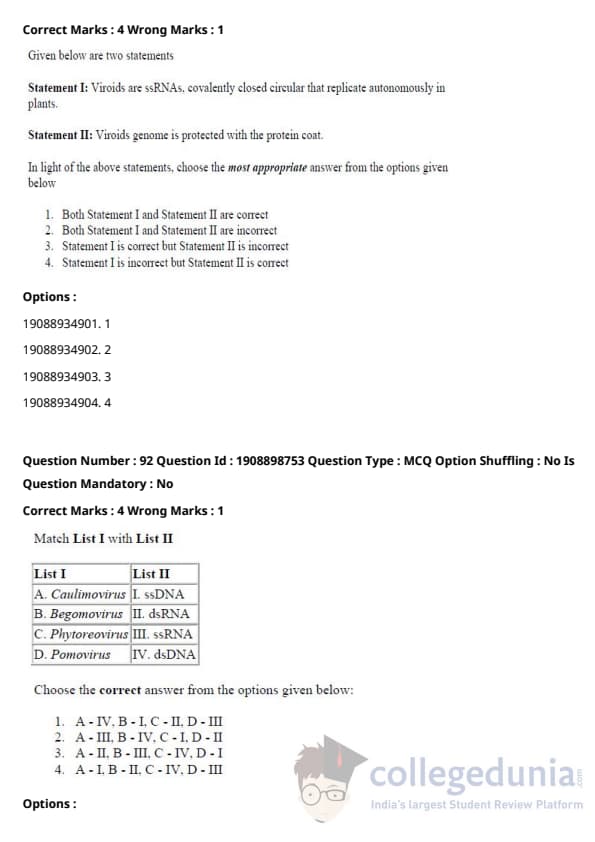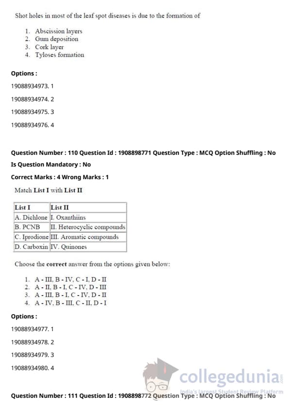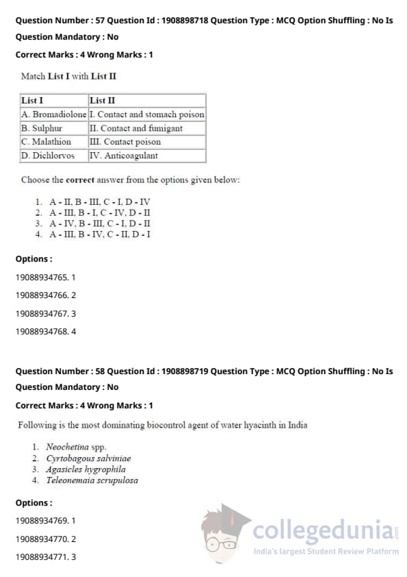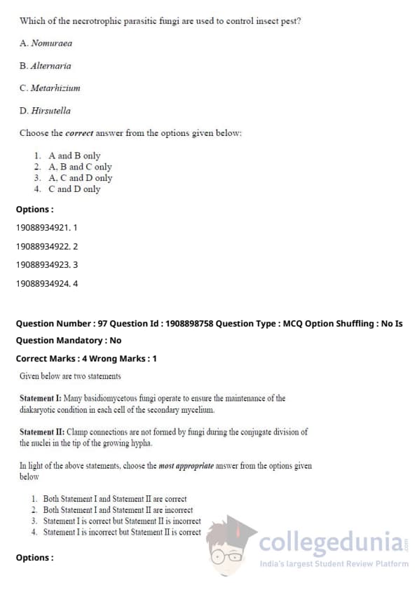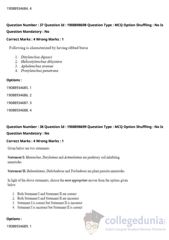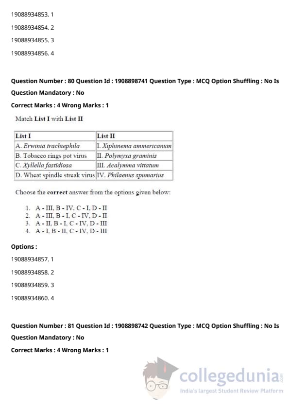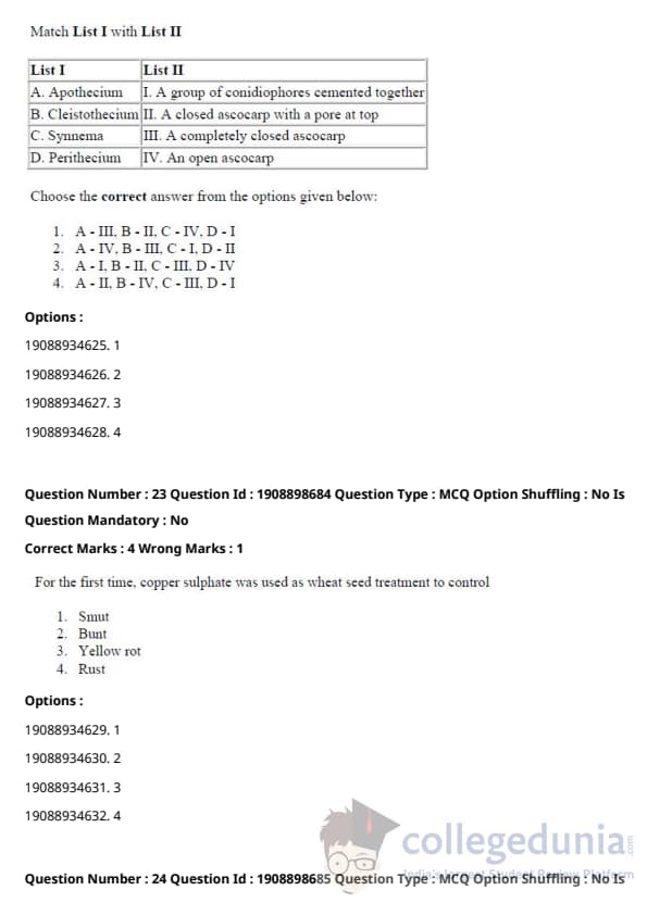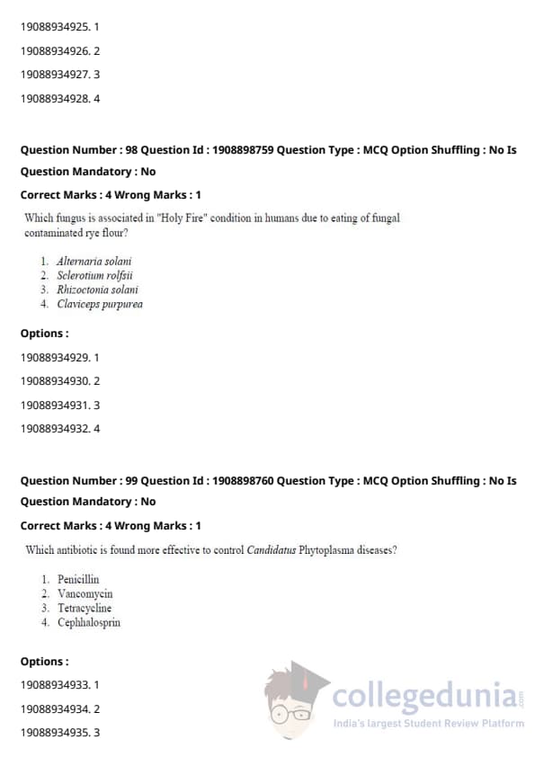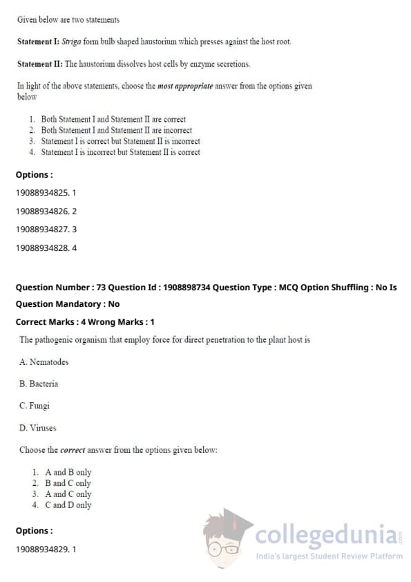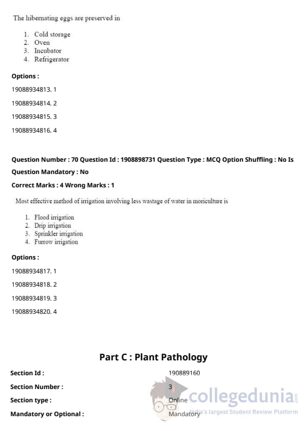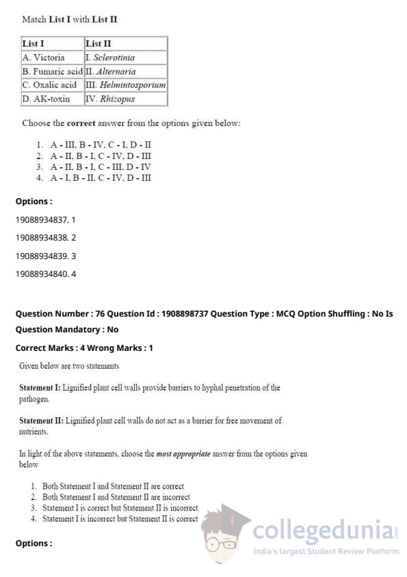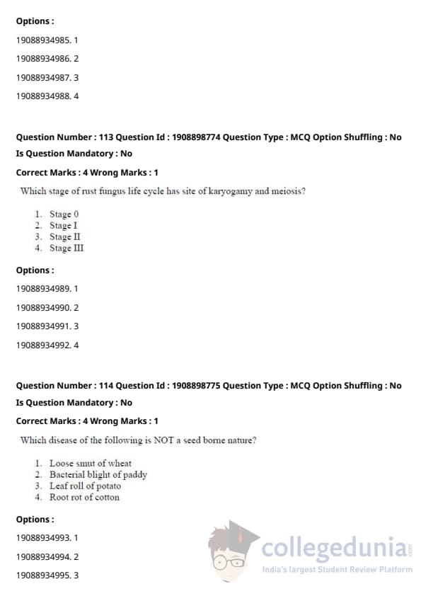 ICAR AIEEA 2021 JRF - PLANT PATHOLOGY Question Paper with Answer Key PDFs Afternoon Session
