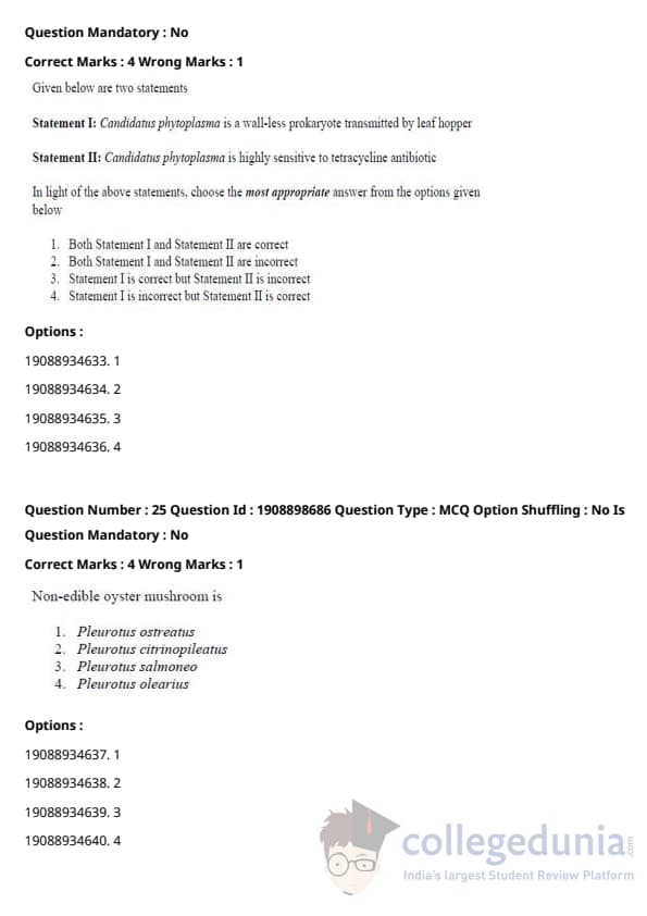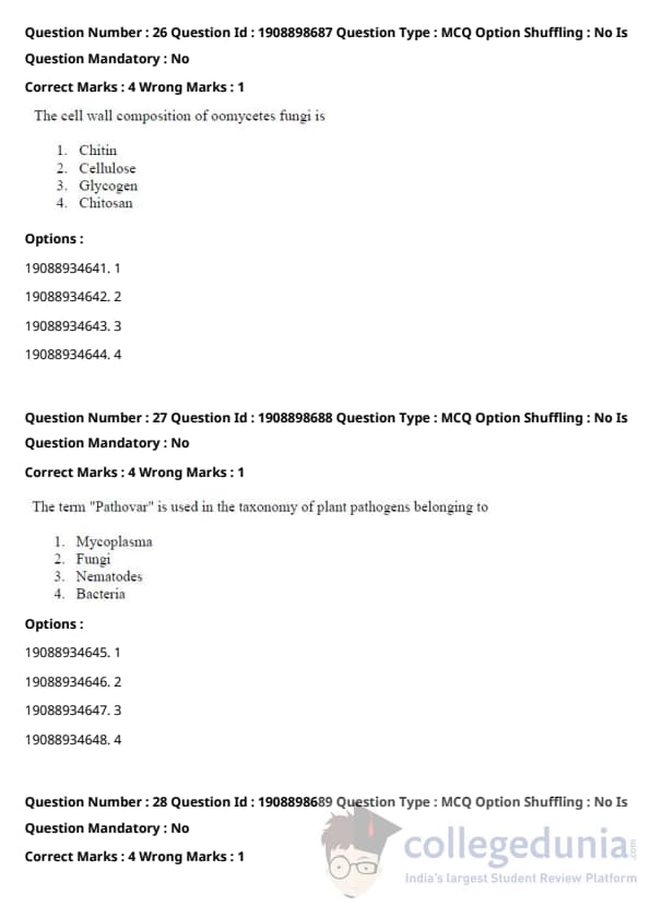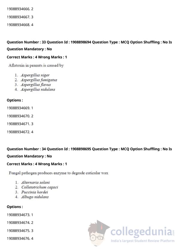 | ICAR AIEEA 2021 JRF - PLANT PATHOLOGY Question Paper PDF | ICAR AIEEA 2021 JRF - PLANT PATHOLOGY Answer Key PDF |