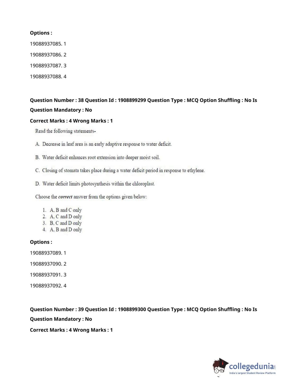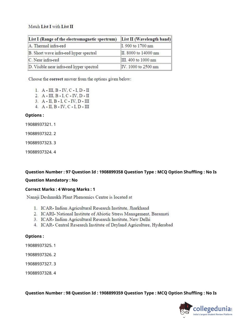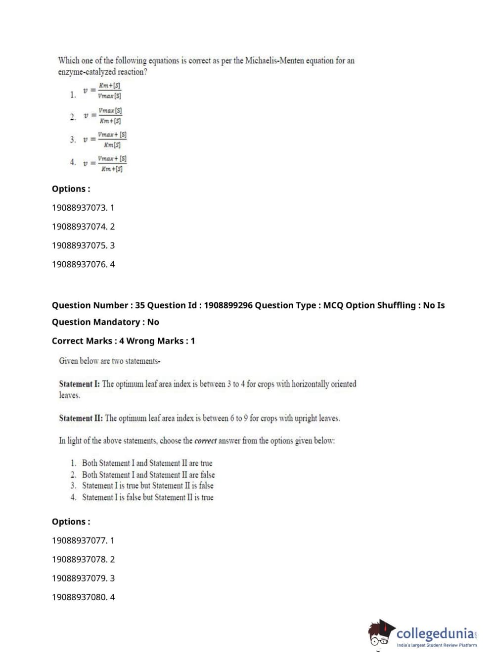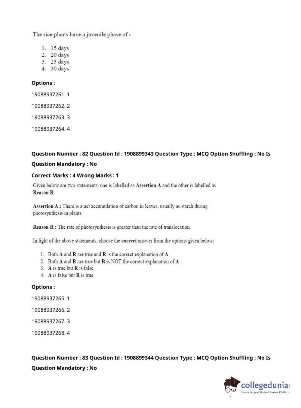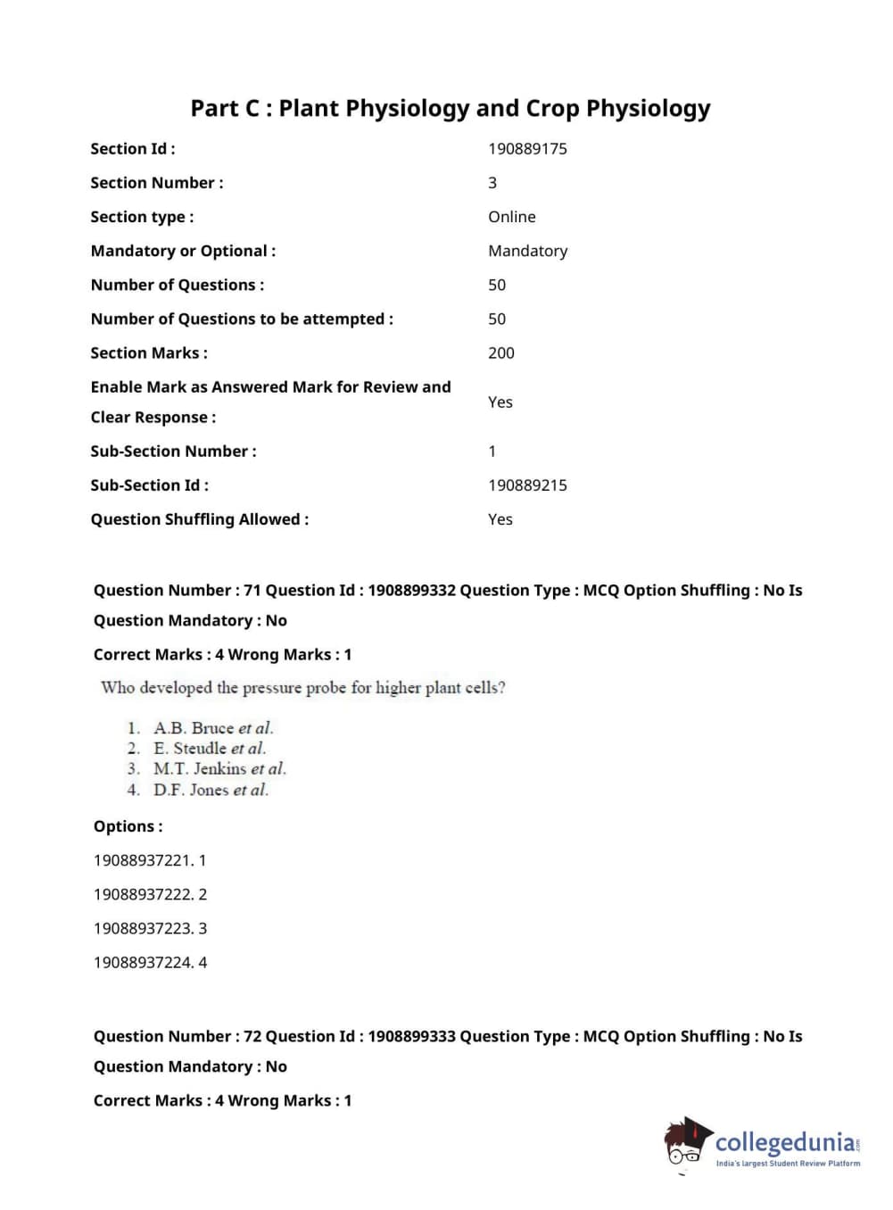 ICAR AIEEA 2021 JRF - PLANT PHYSIOLOGY AND CROP PHYSIOLOGY Question Paper with Answer Key PDFs Afternoon Session
