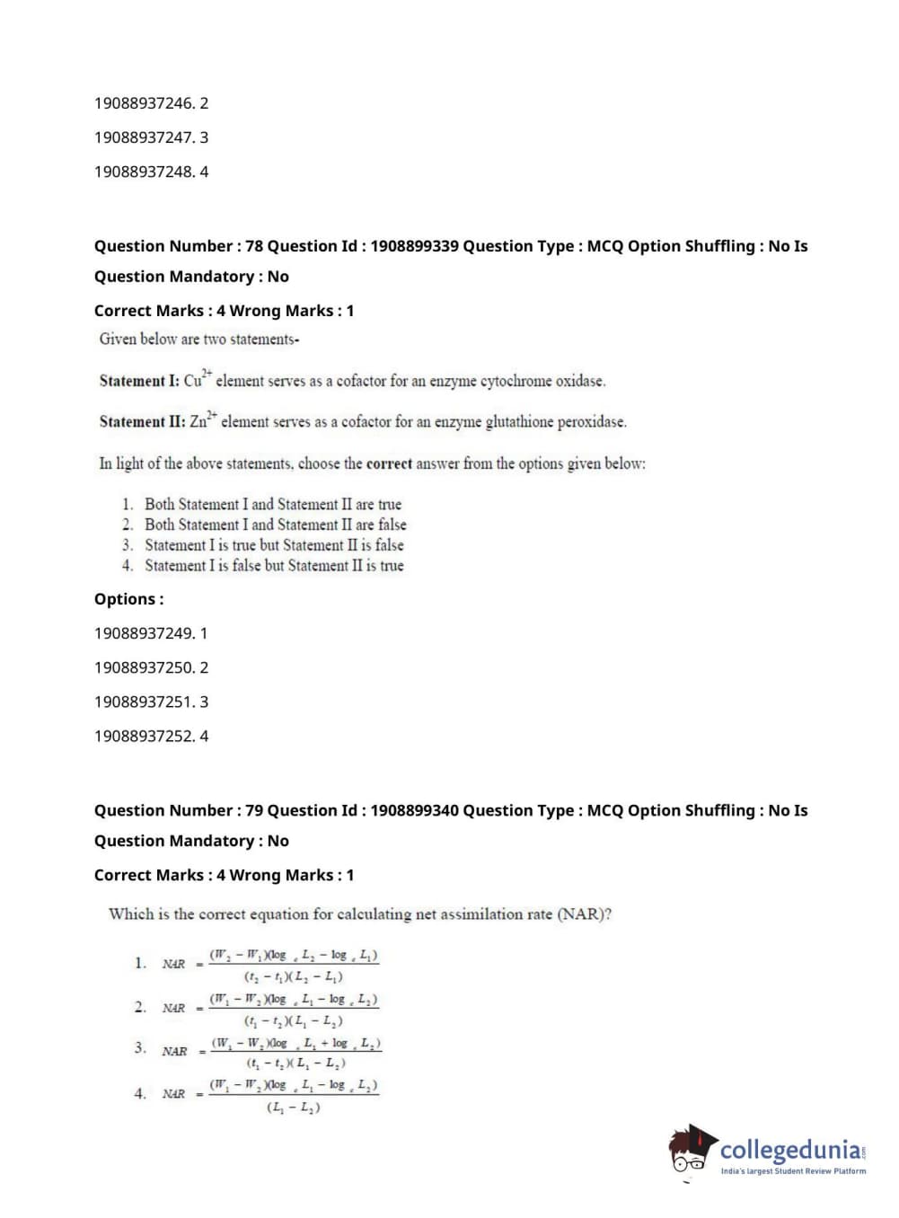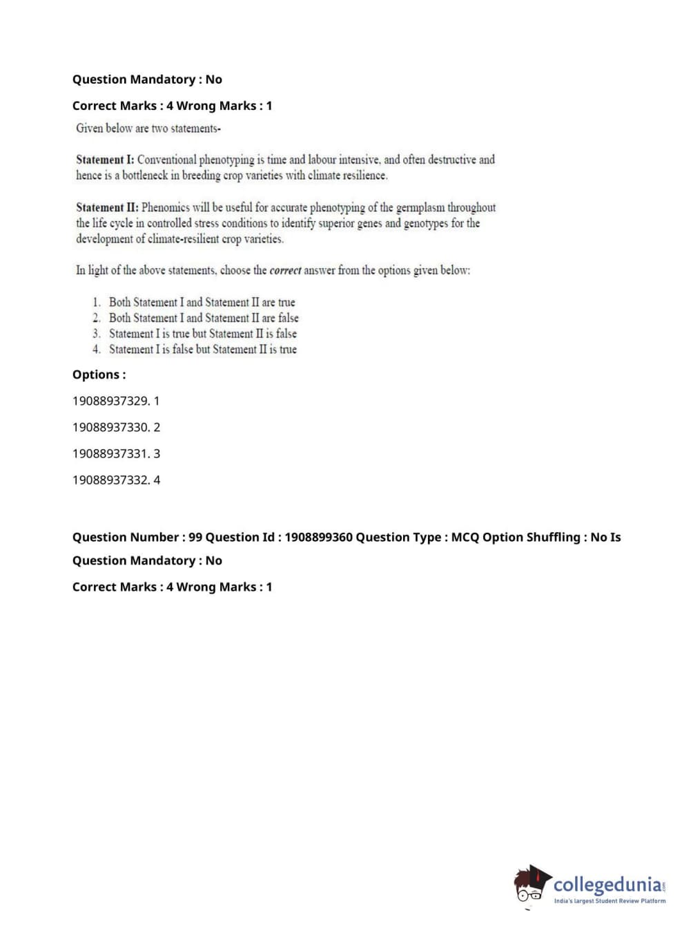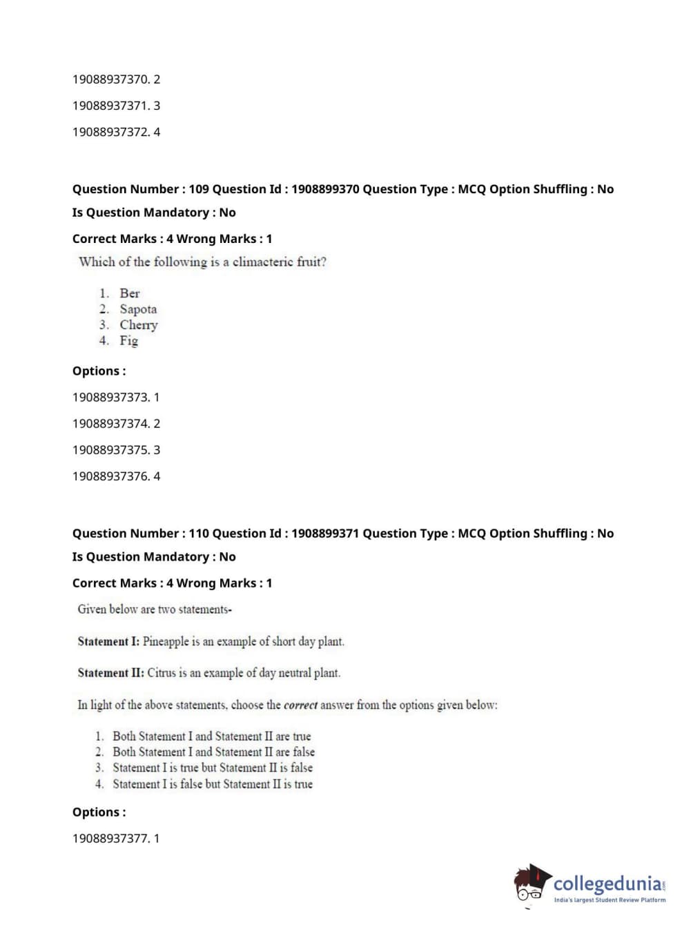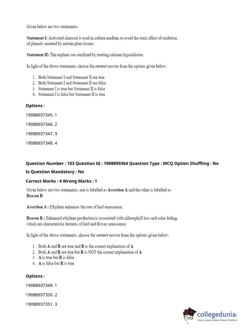 ICAR AIEEA 2021 JRF - PLANT PHYSIOLOGY AND CROP PHYSIOLOGY Question Paper with Answer Key PDFs Afternoon Session