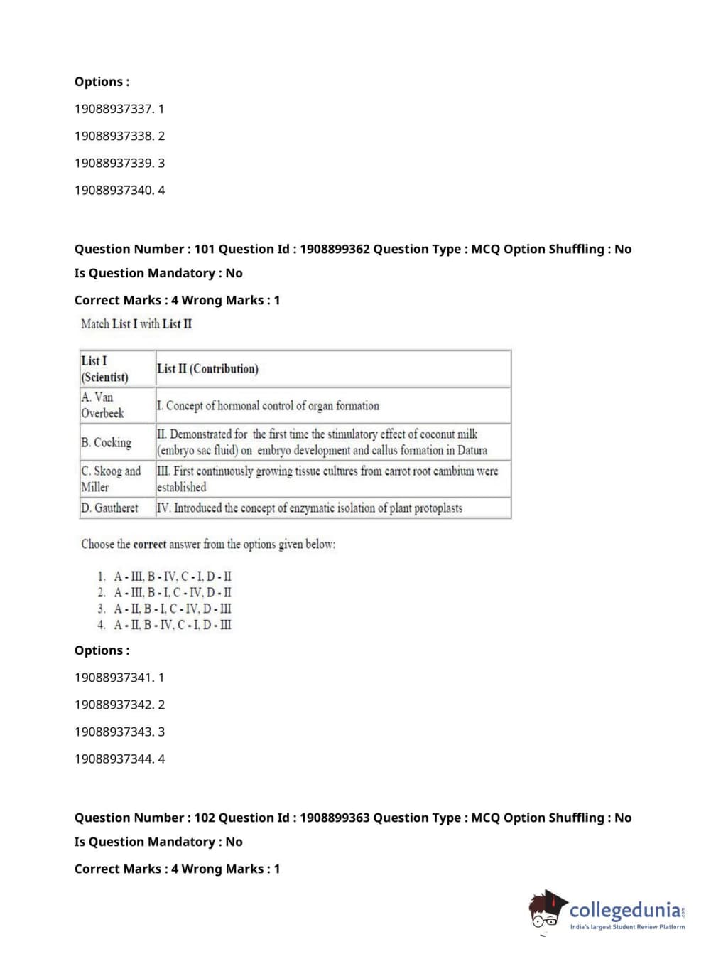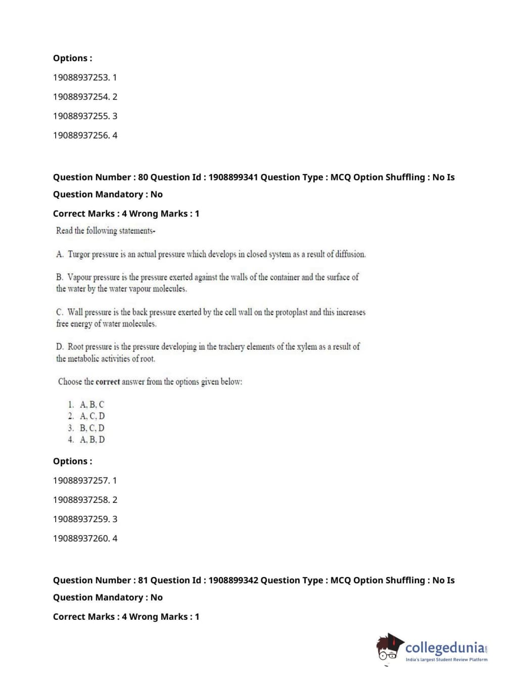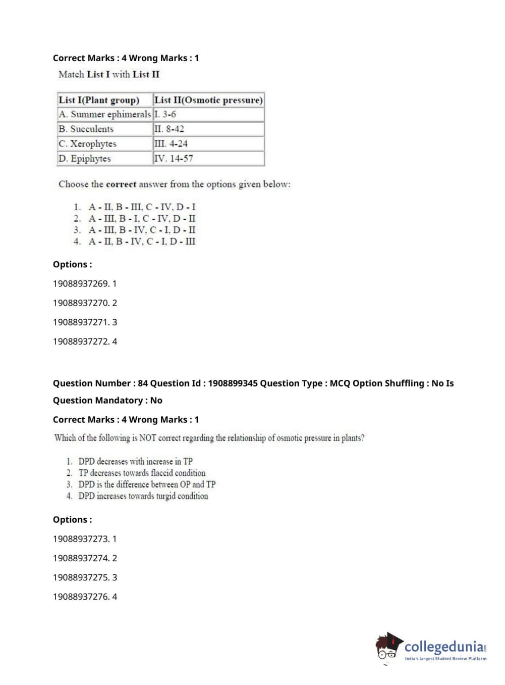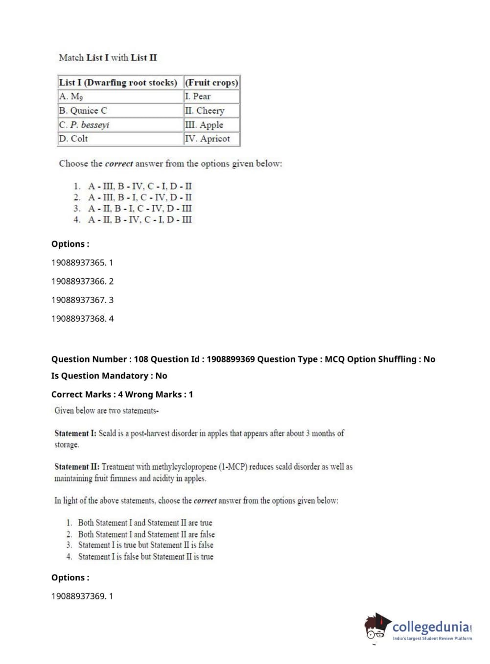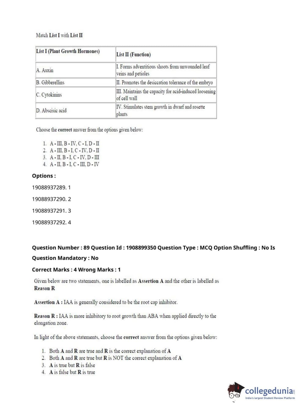 ICAR AIEEA 2021 JRF - PLANT PHYSIOLOGY AND CROP PHYSIOLOGY Question Paper with Answer Key PDFs Afternoon Session