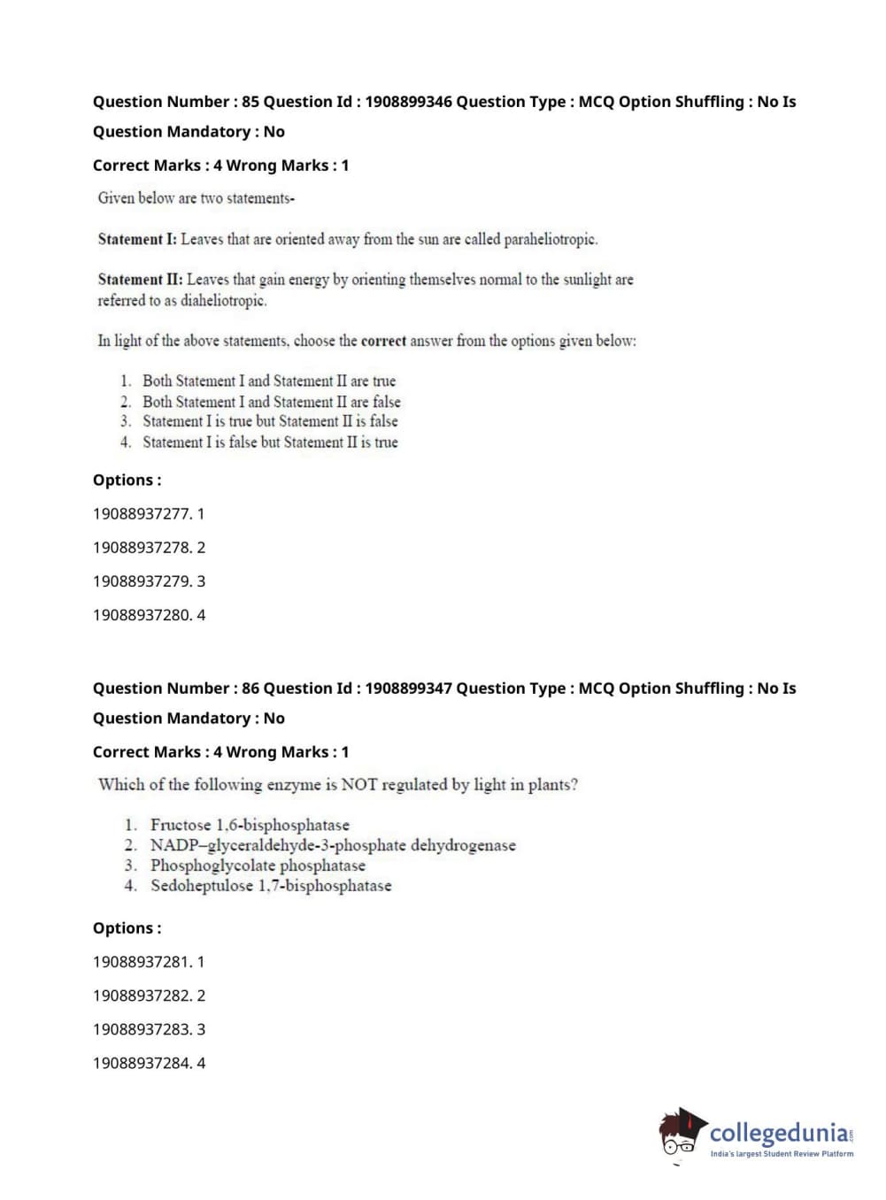 ICAR AIEEA 2021 JRF - PLANT PHYSIOLOGY AND CROP PHYSIOLOGY Question paper with answer key pdf conducted on September 17, 2021 in Afternoon Session is available for download. The exam was successfully organized by National Testing Agency (NTA). The question paper comprised a total of 120 questions.