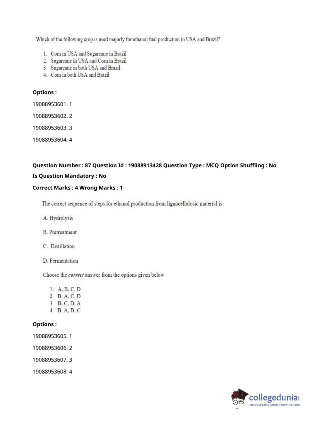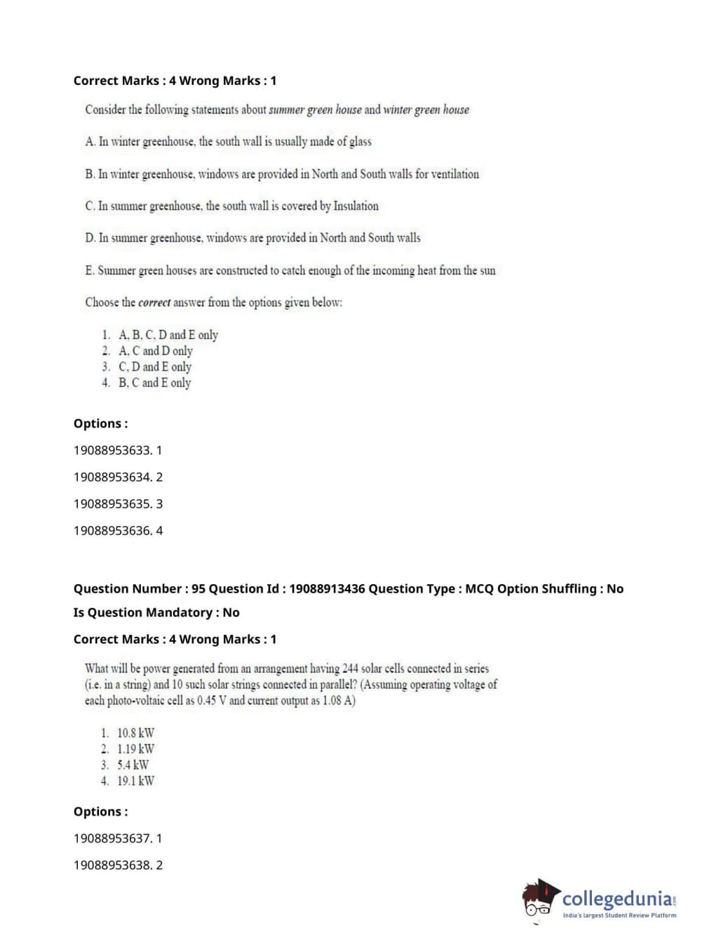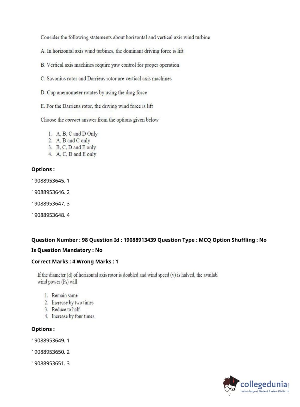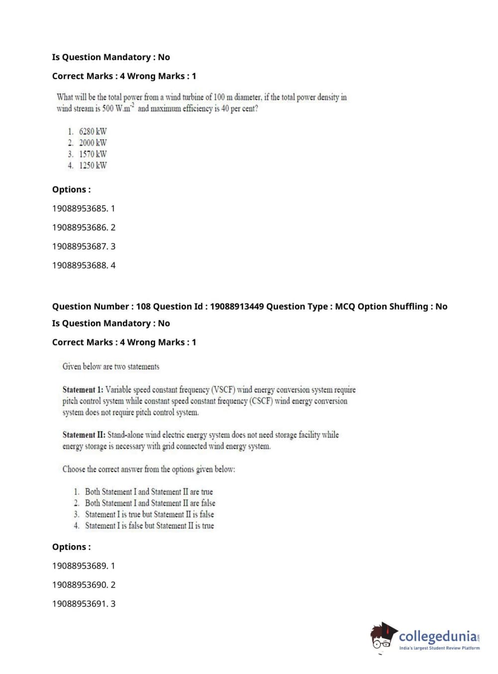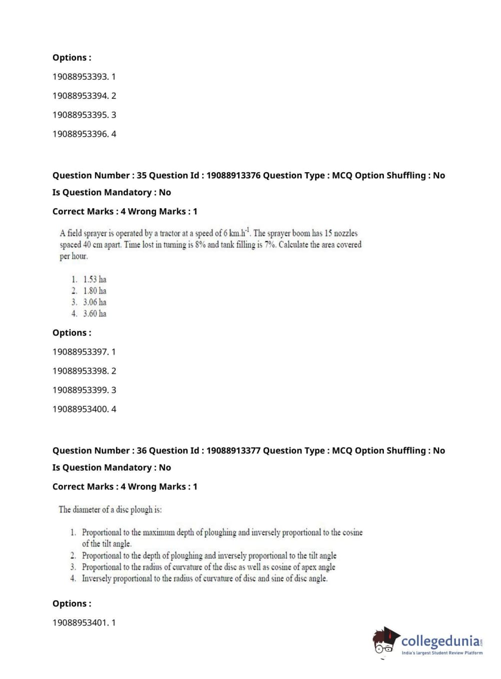 ICAR AIEEA 2021 JRF - RENEWABLE ENERGY ENGINEERING Question Paper with Answer Key PDFs Afternoon Session