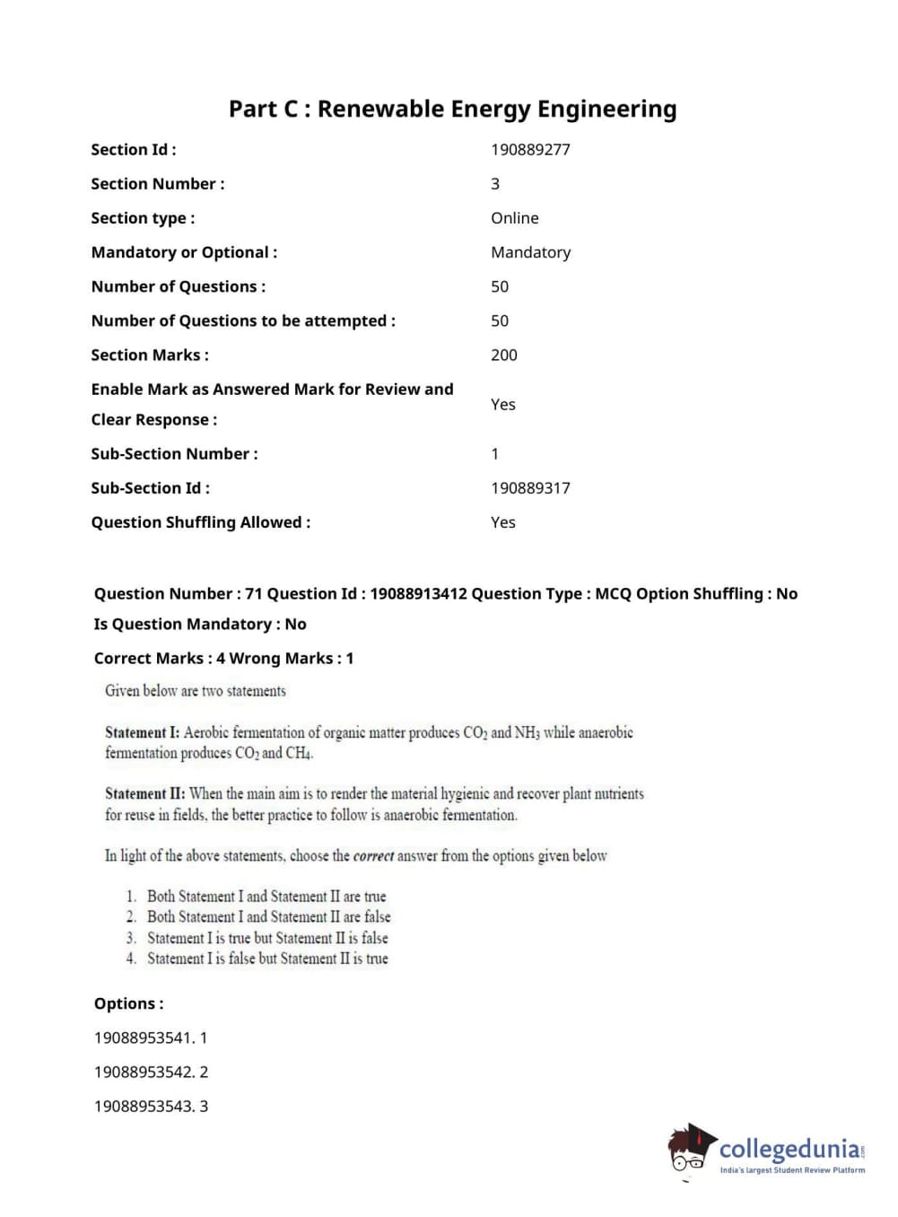 ICAR AIEEA 2021 JRF - RENEWABLE ENERGY ENGINEERING Question paper with answer key pdf conducted on September 17, 2021 in Afternoon Session is available for download. The exam was successfully organized by National Testing Agency (NTA). The question paper comprised a total of 120 questions.