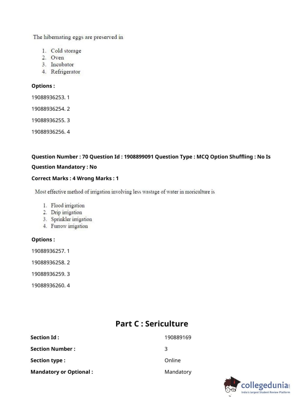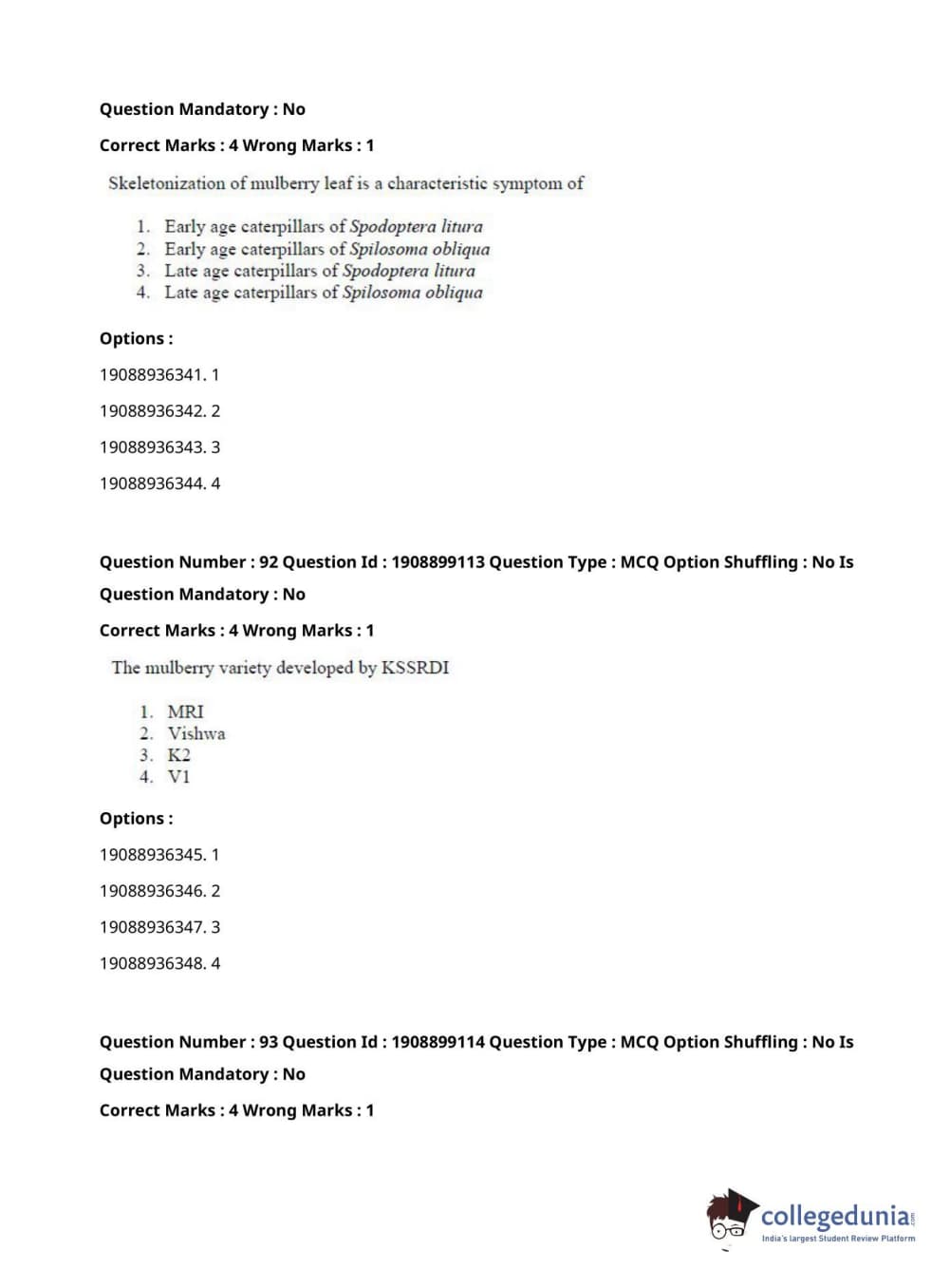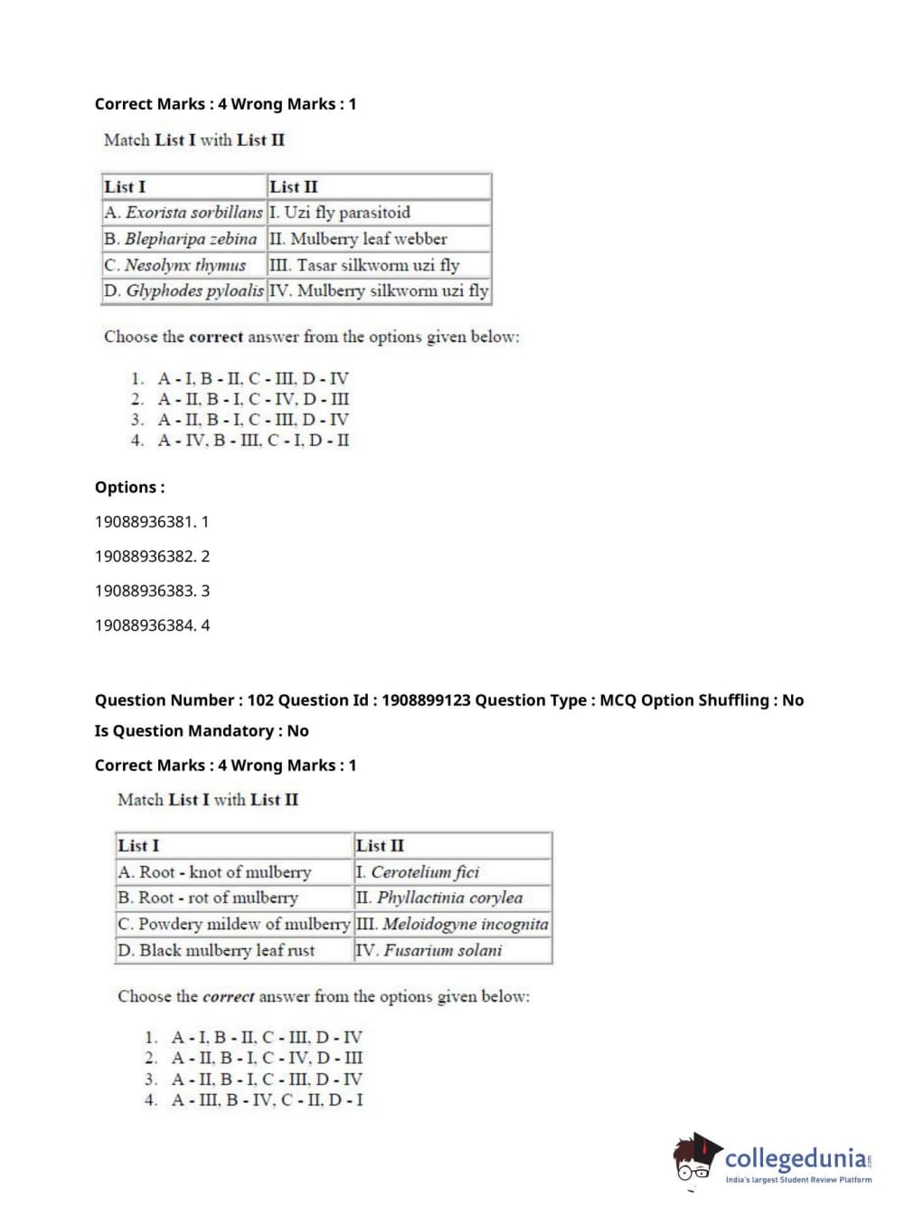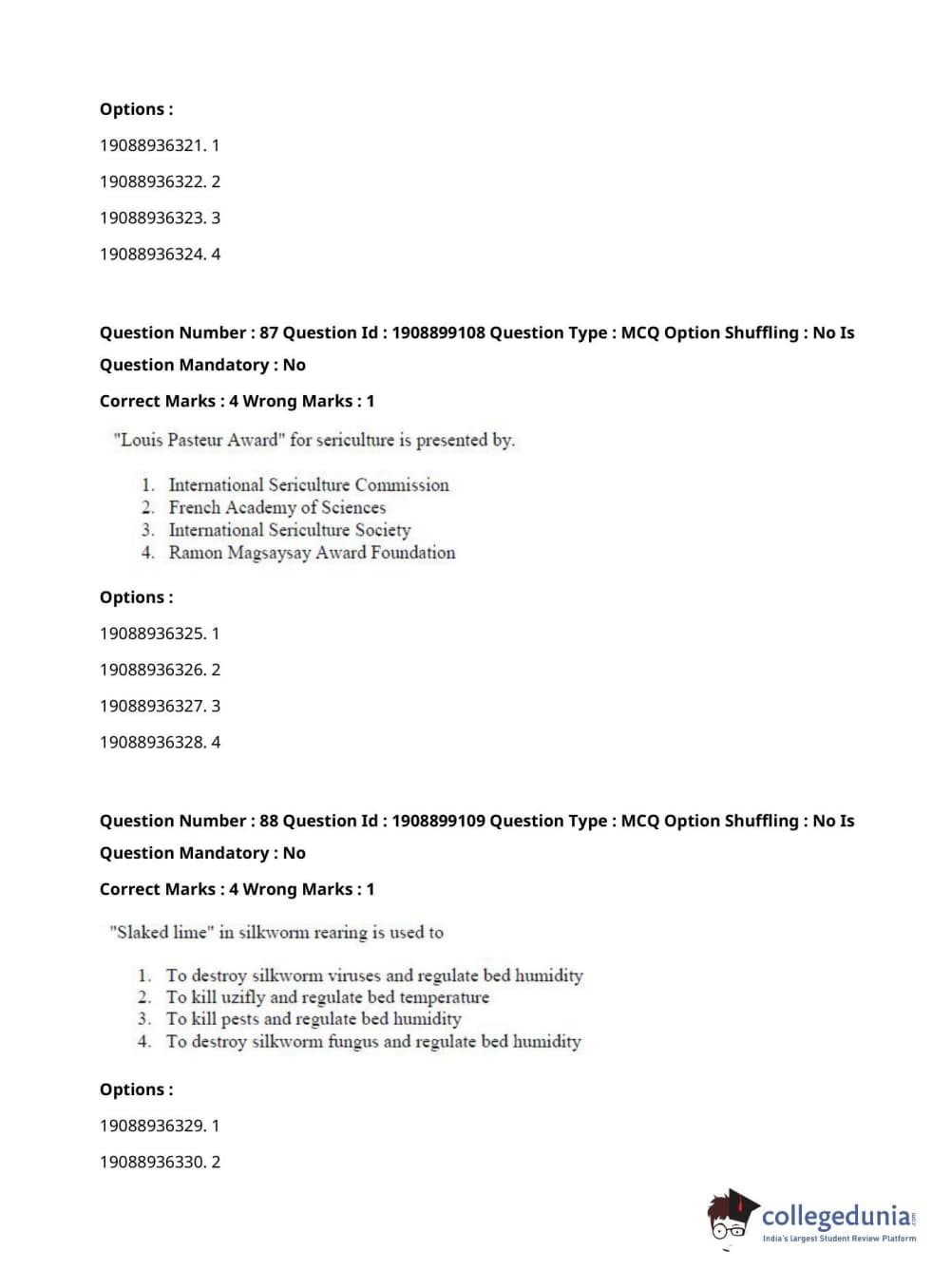 ICAR AIEEA 2021 JRF - SERICULTURE Question Paper with Answer Key PDFs Afternoon Session