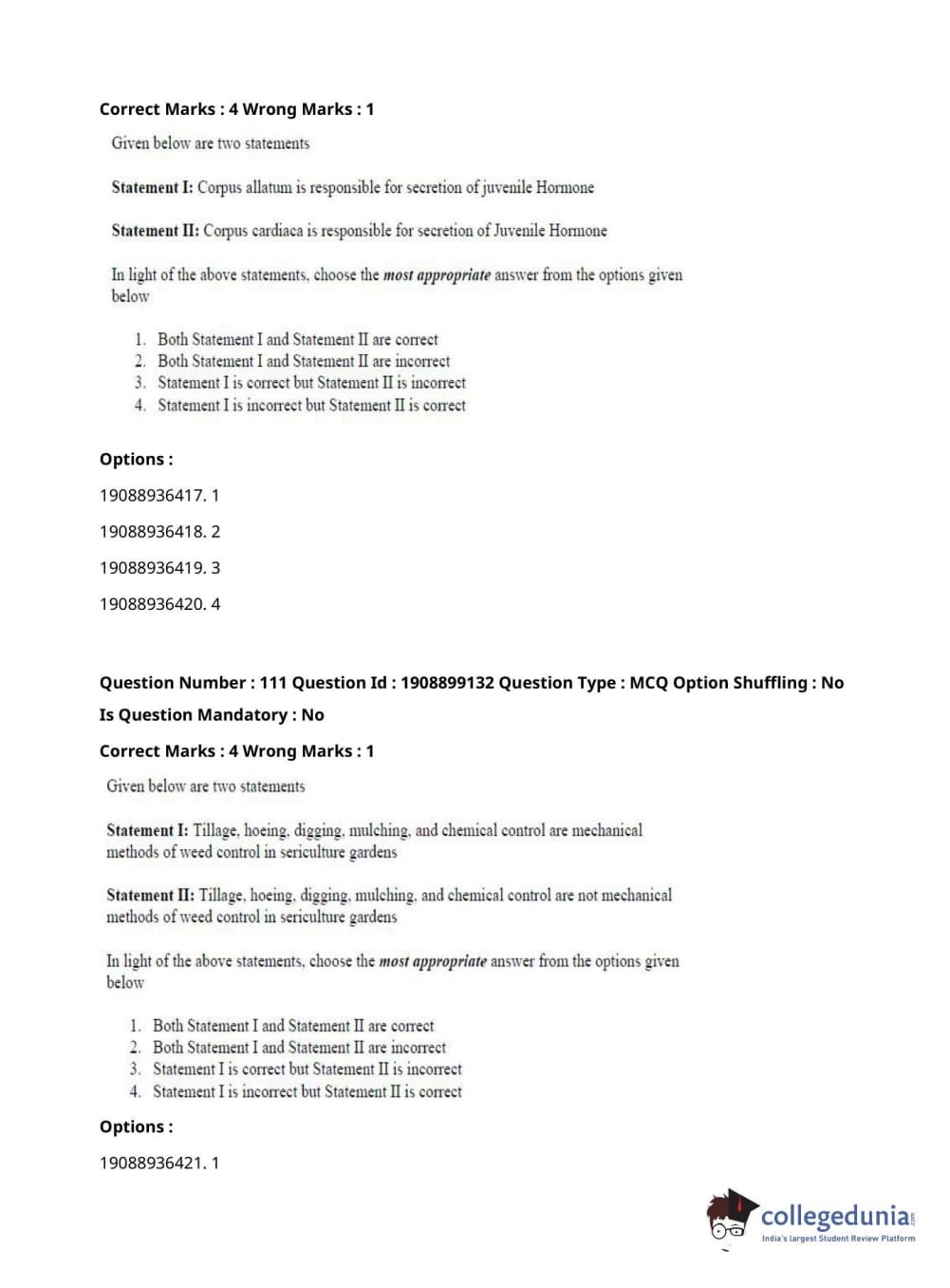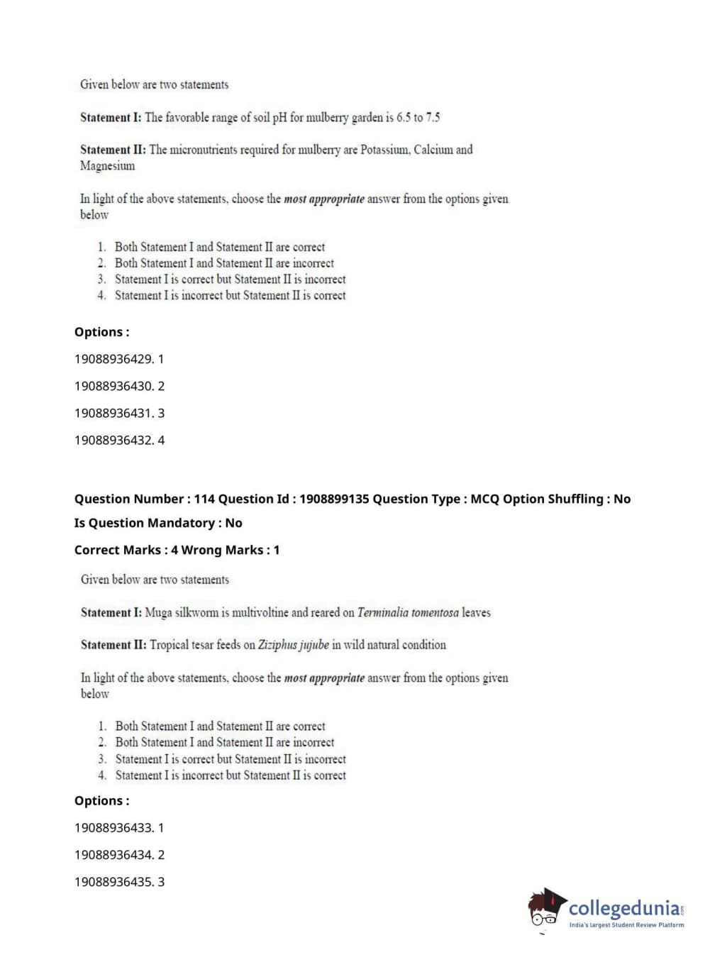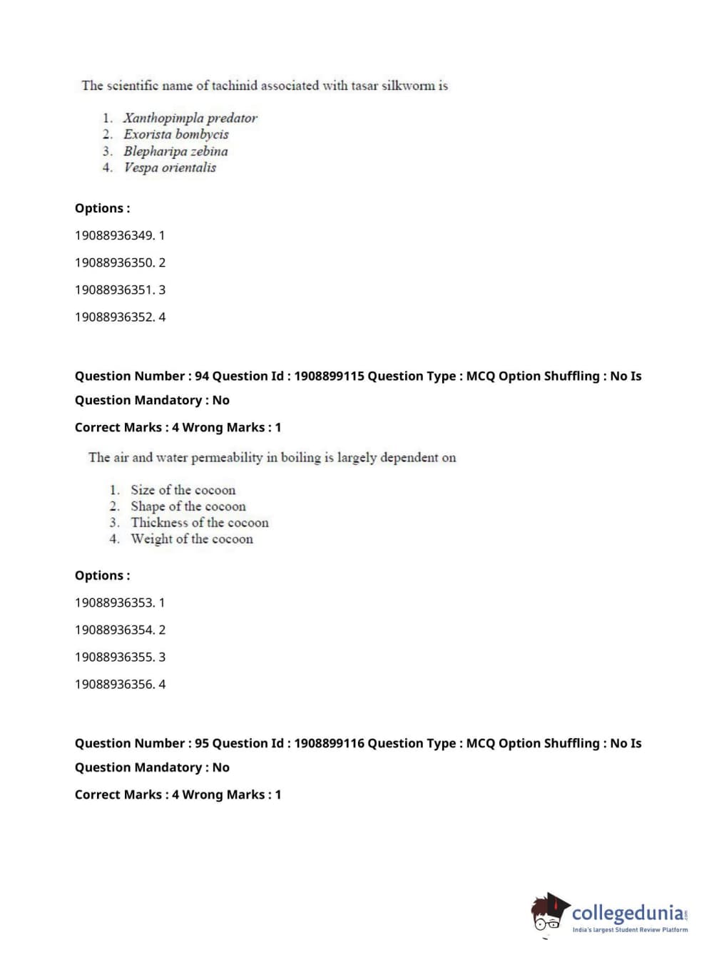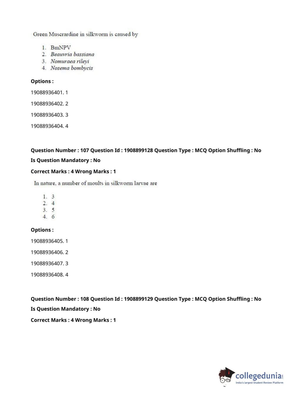 ICAR AIEEA 2021 JRF - SERICULTURE Question Paper with Answer Key PDFs Afternoon Session
