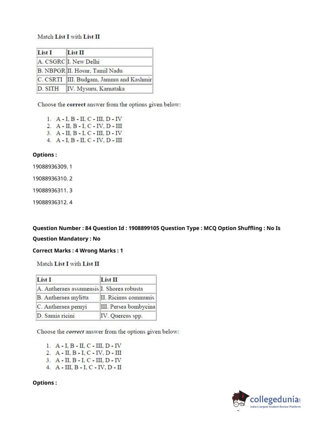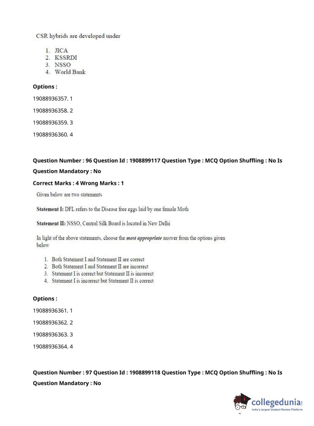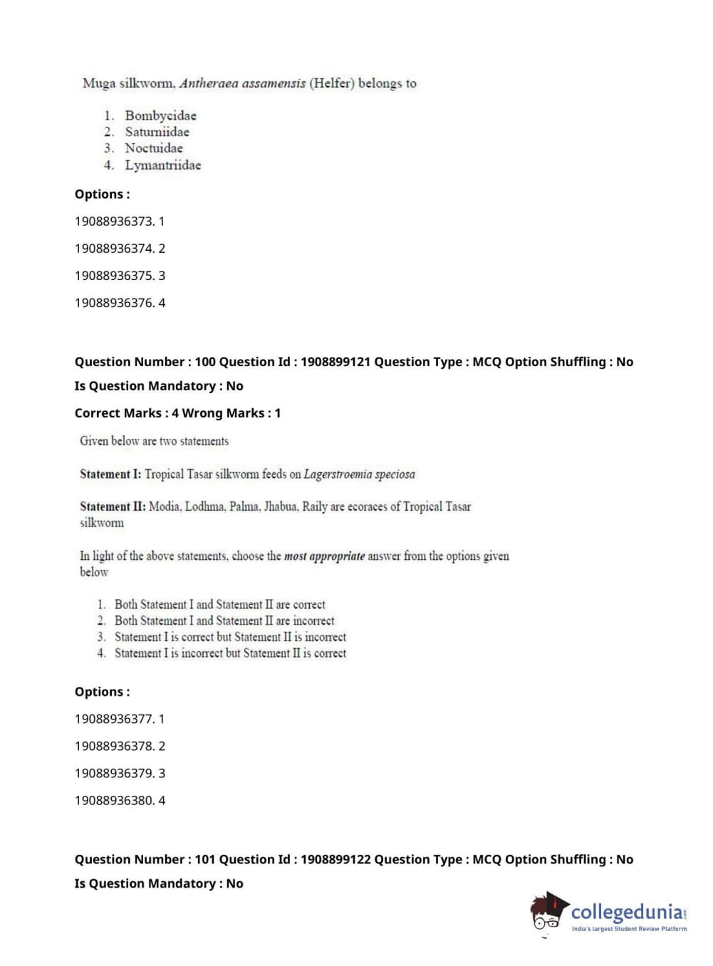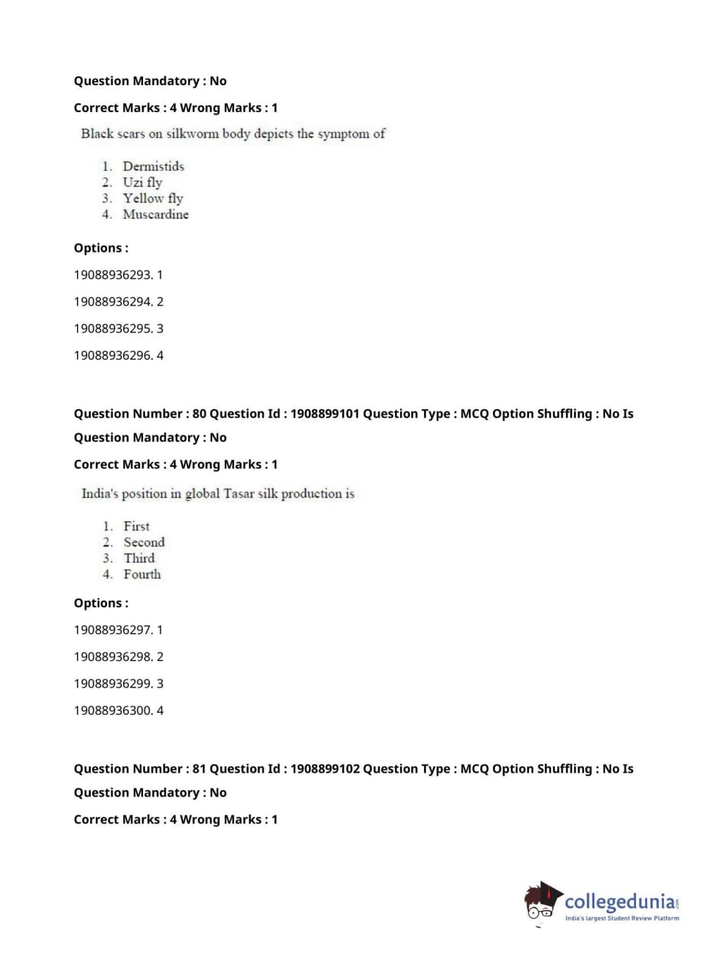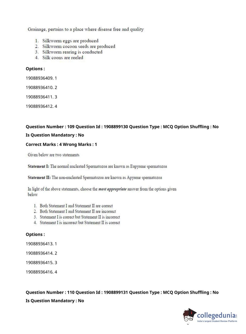 ICAR AIEEA 2021 JRF - SERICULTURE Question Paper with Answer Key PDFs Afternoon Session