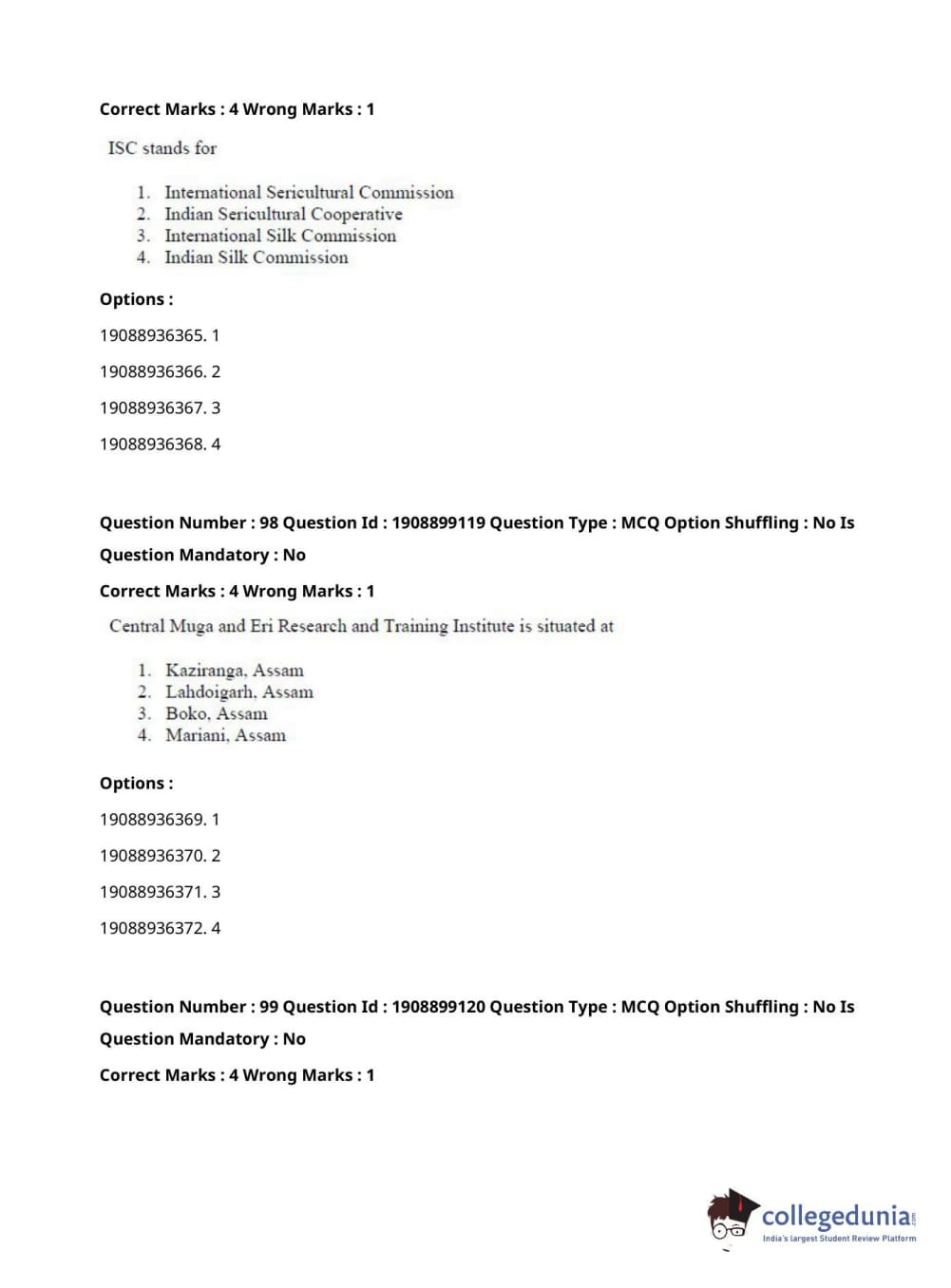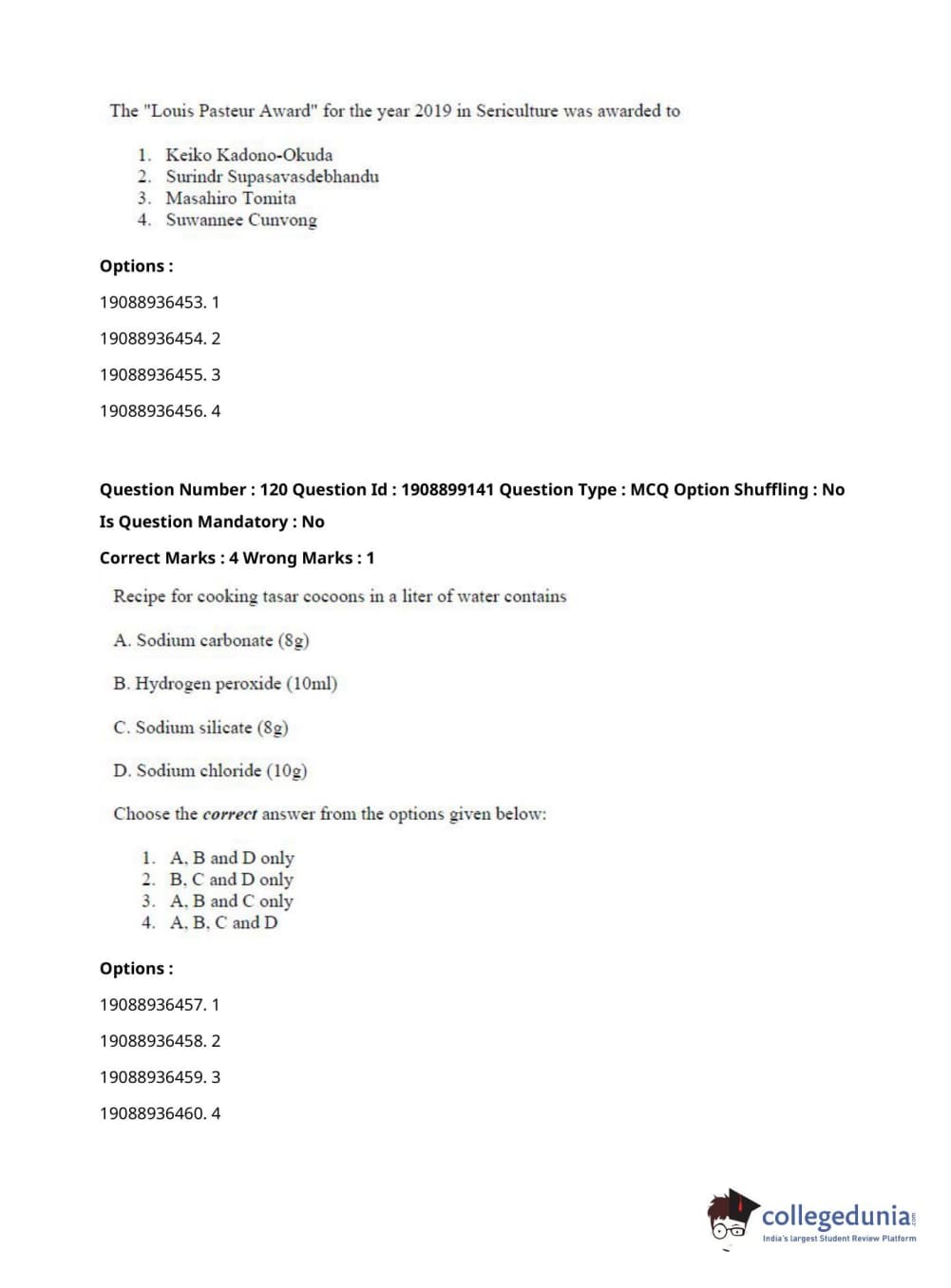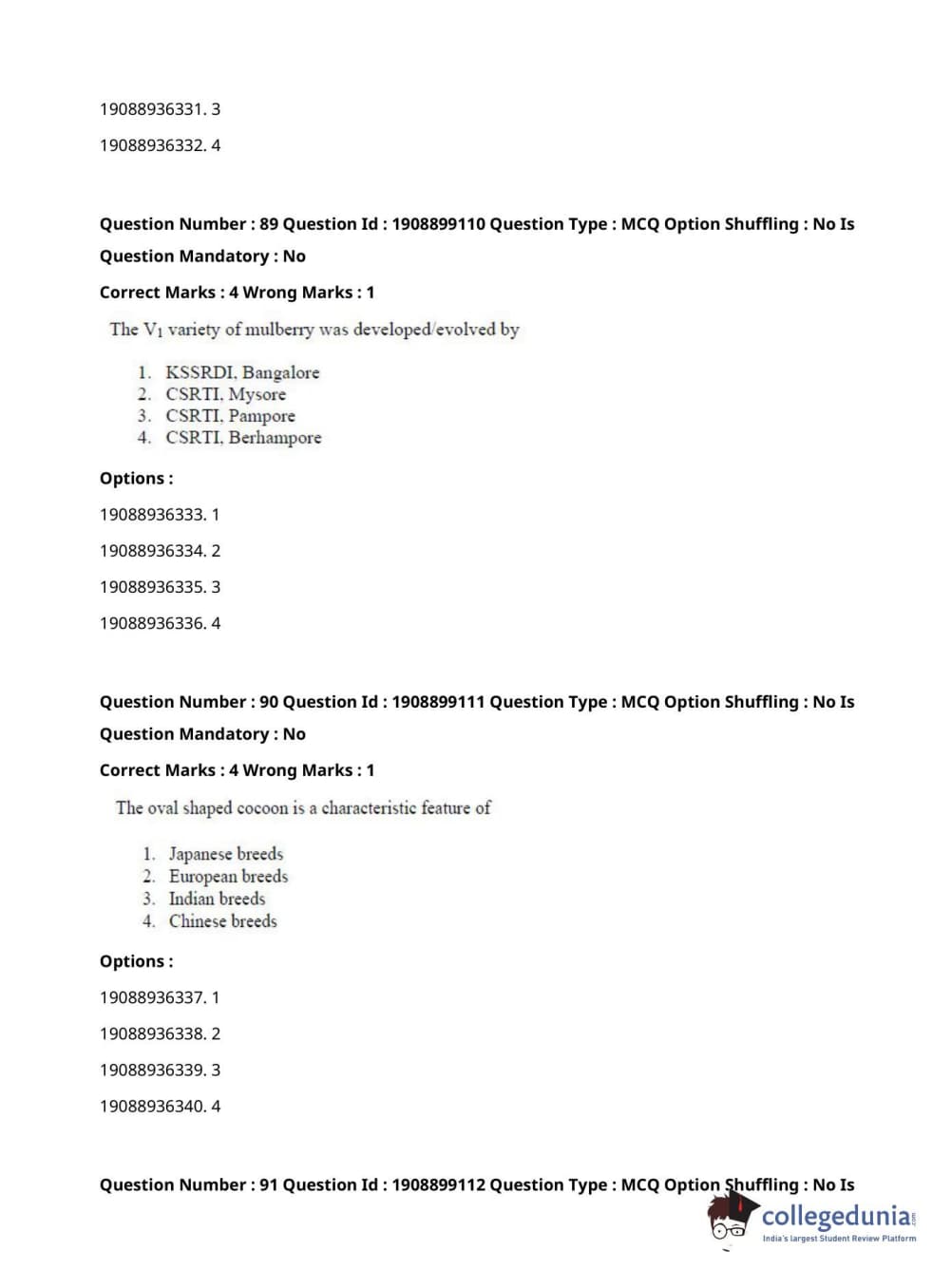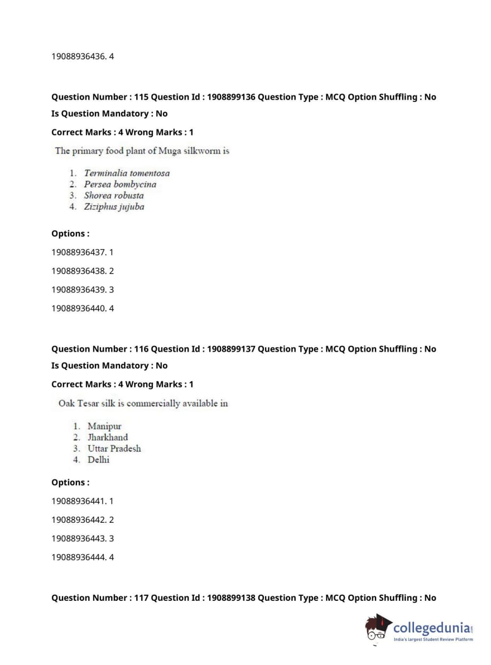 ICAR AIEEA 2021 JRF - SERICULTURE Question Paper with Answer Key PDFs Afternoon Session