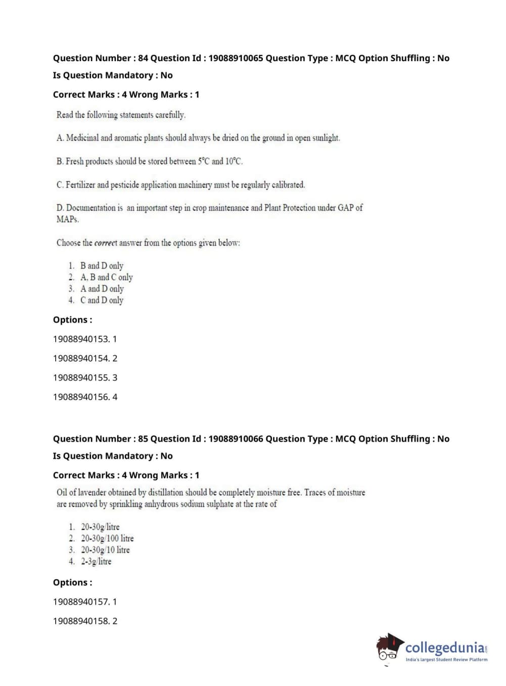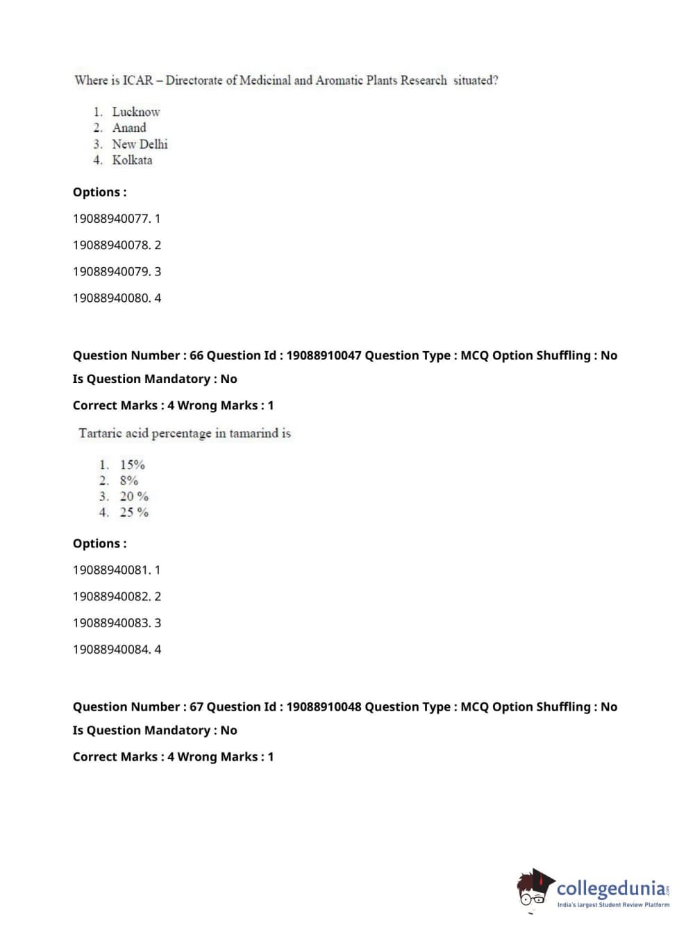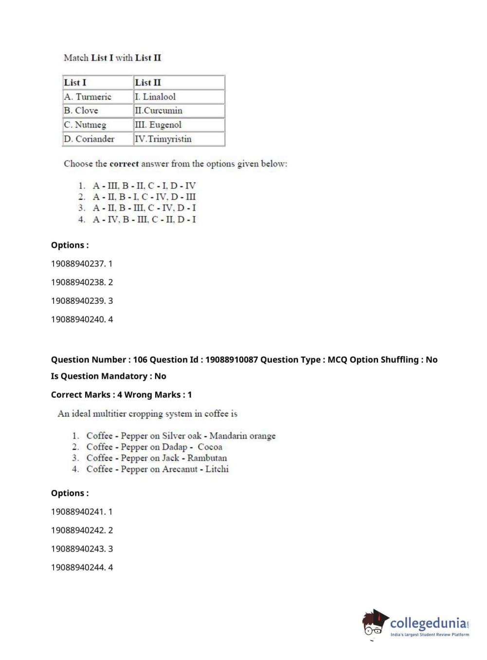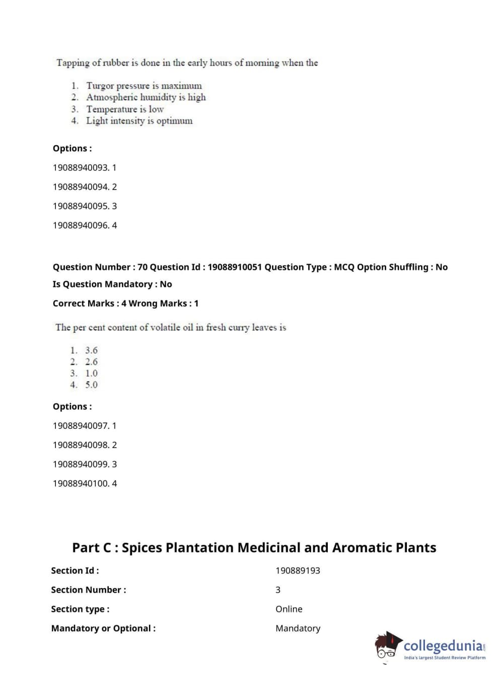 ICAR AIEEA 2021 JRF - SPICES PLANTATION MEDICINAL AND AROMATIC PLANTS Question Paper with Answer Key PDFs Afternoon Session