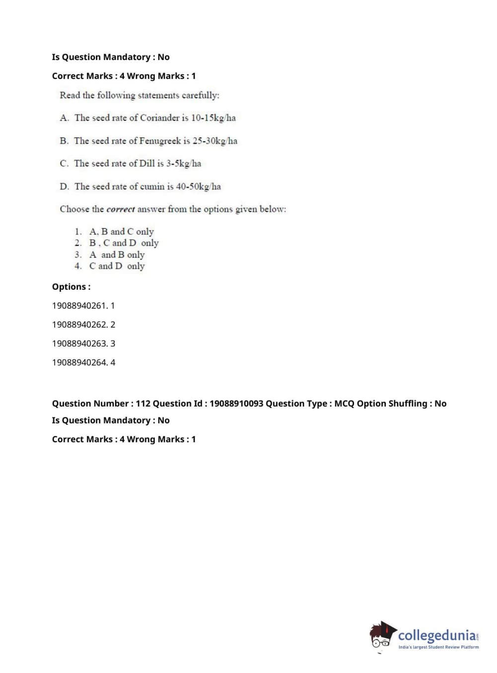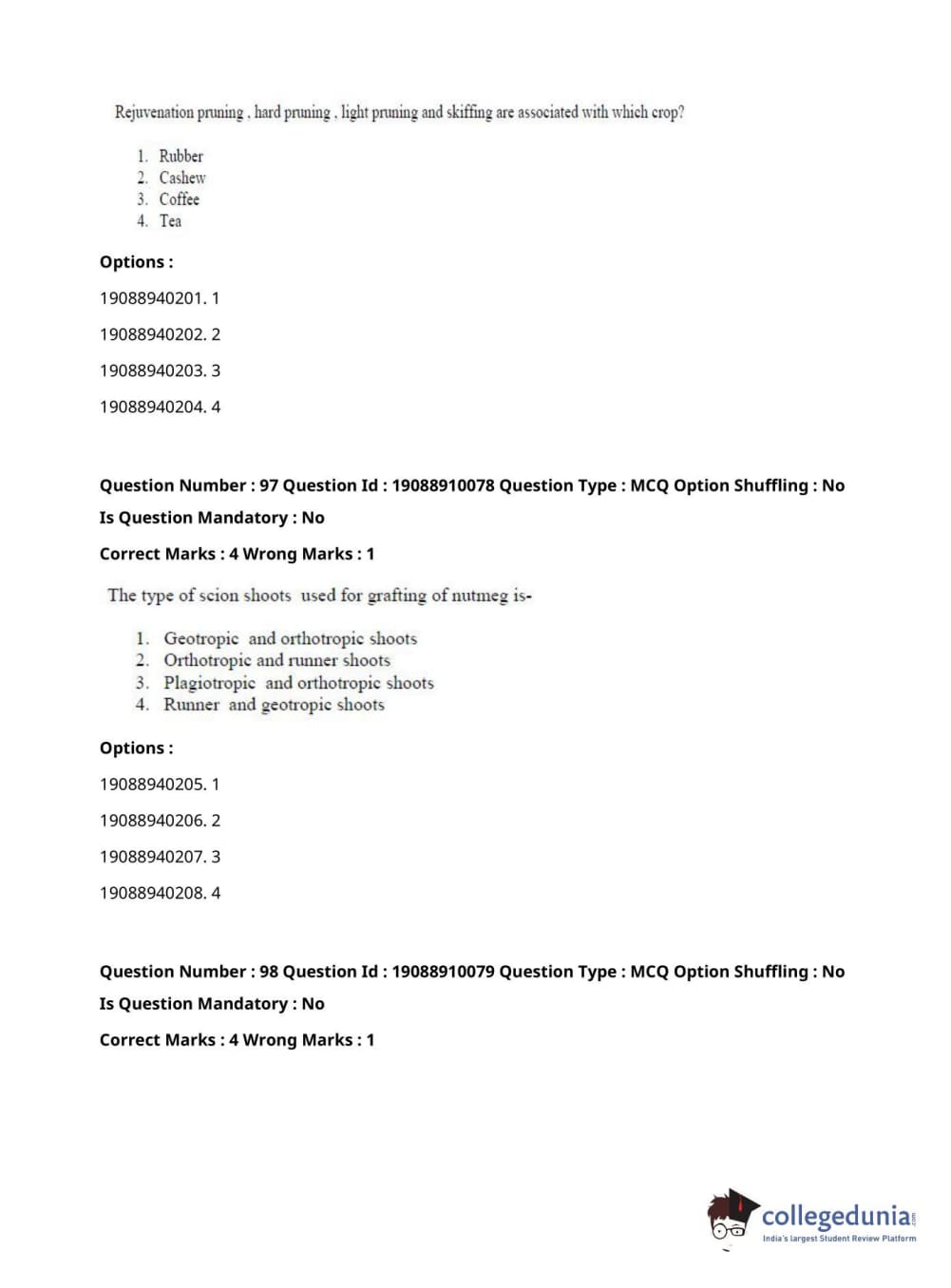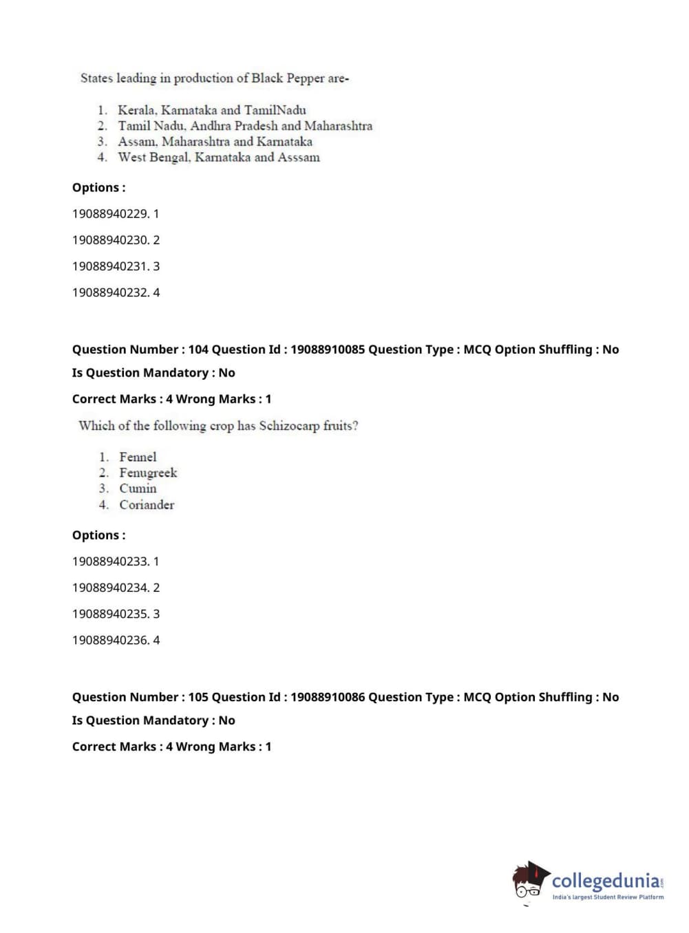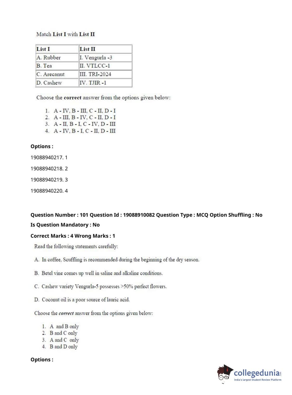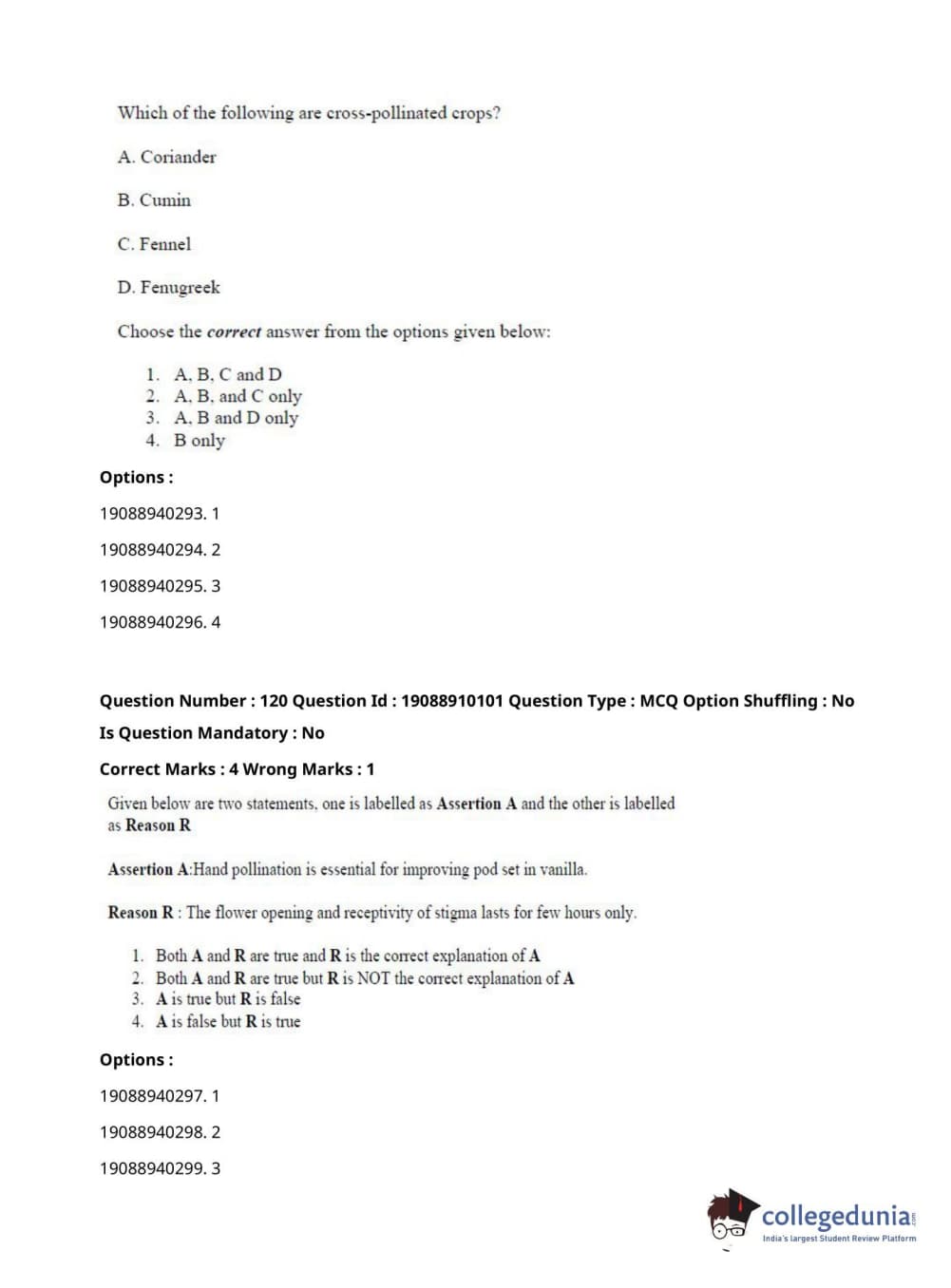 ICAR AIEEA 2021 JRF - SPICES PLANTATION MEDICINAL AND AROMATIC PLANTS Question Paper with Answer Key PDFs Afternoon Session