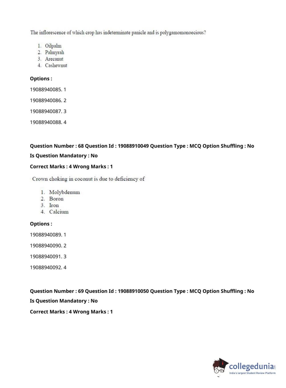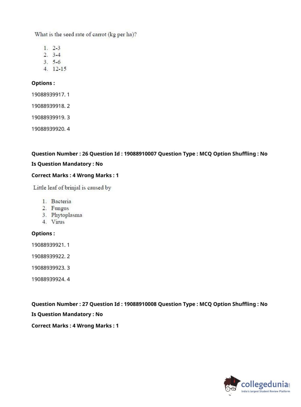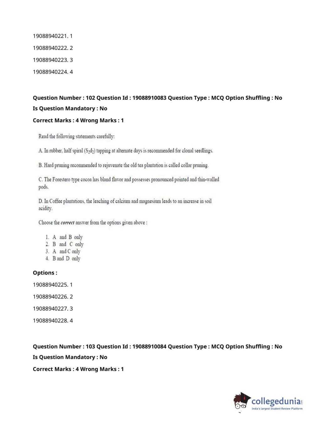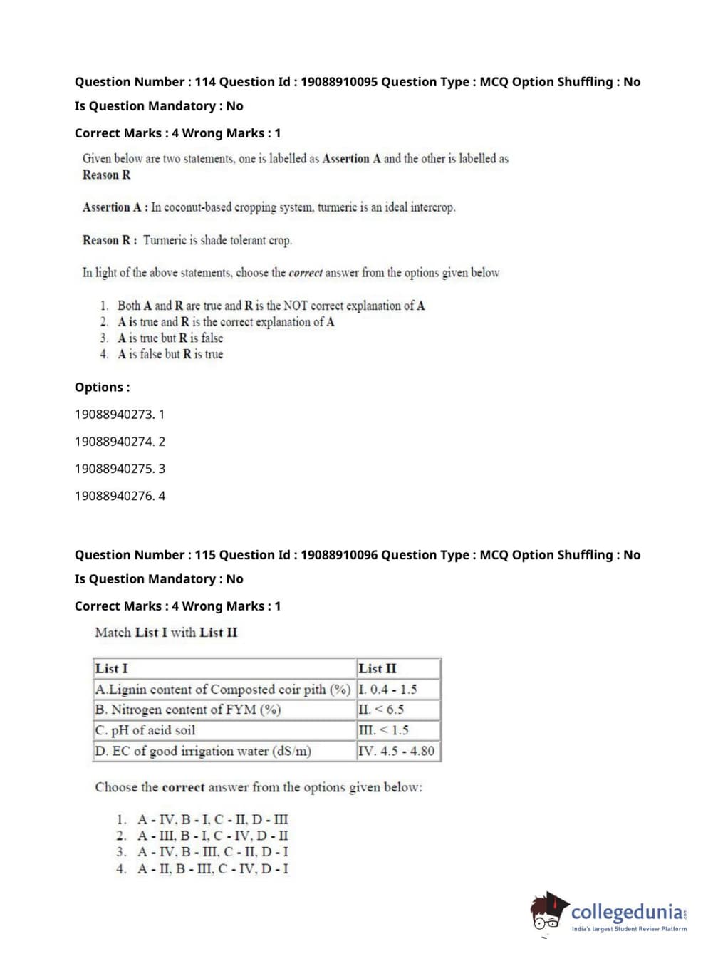 ICAR AIEEA 2021 JRF - SPICES PLANTATION MEDICINAL AND AROMATIC PLANTS Question Paper with Answer Key PDFs Afternoon Session