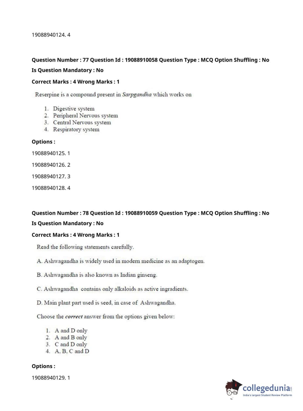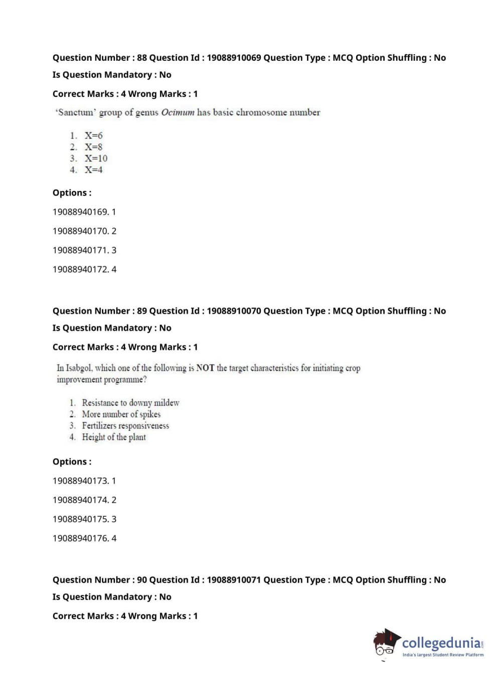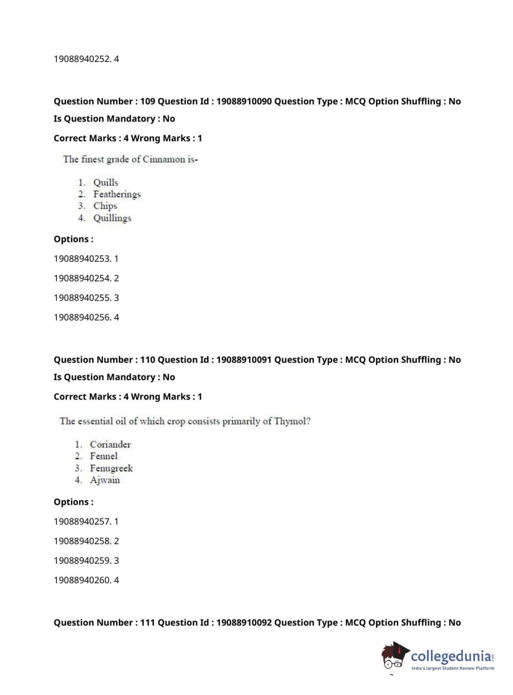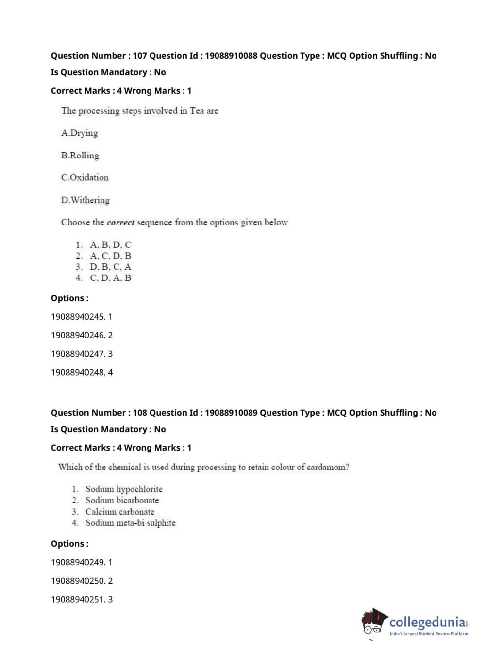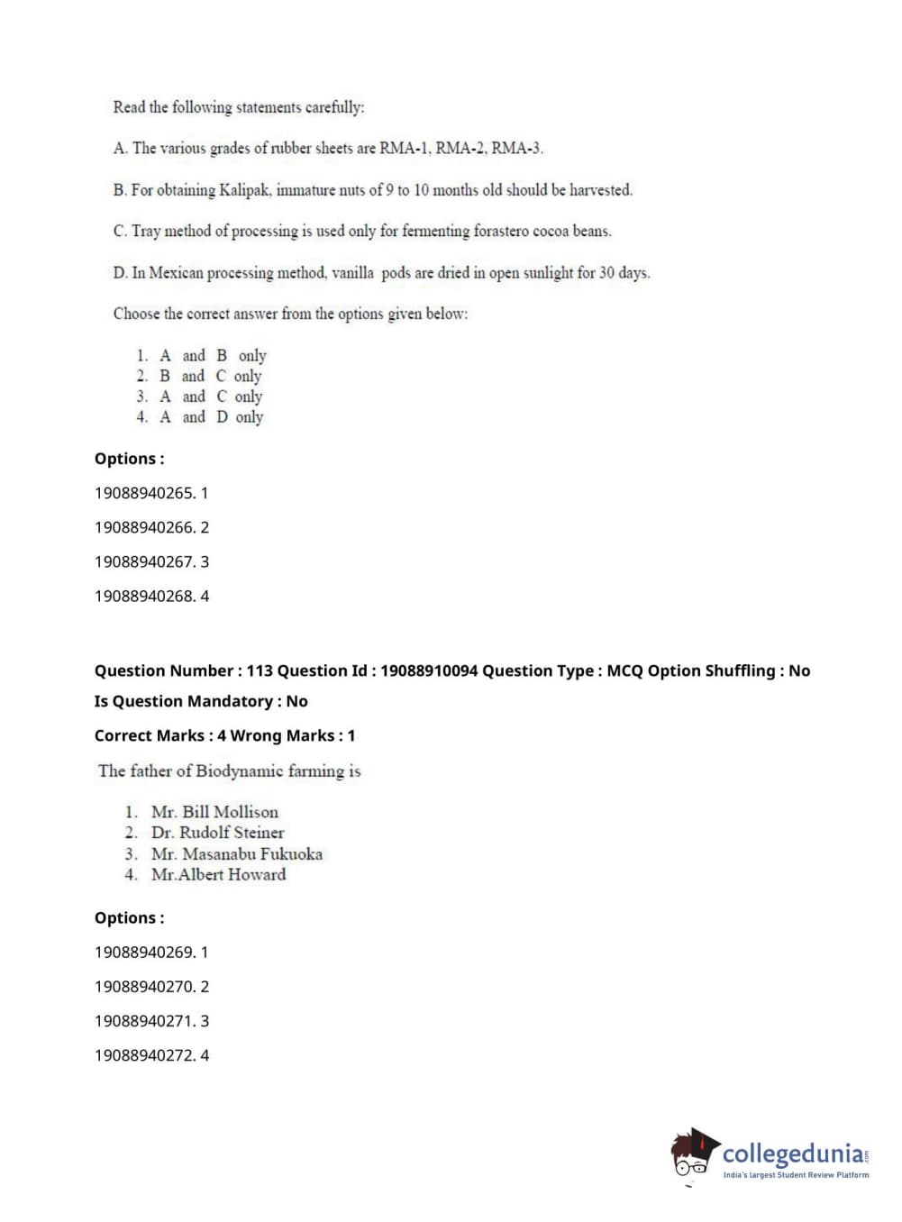 ICAR AIEEA 2021 JRF - SPICES PLANTATION MEDICINAL AND AROMATIC PLANTS Question Paper with Answer Key PDFs Afternoon Session