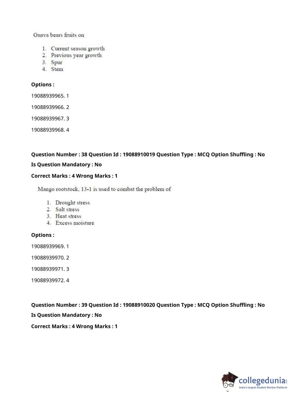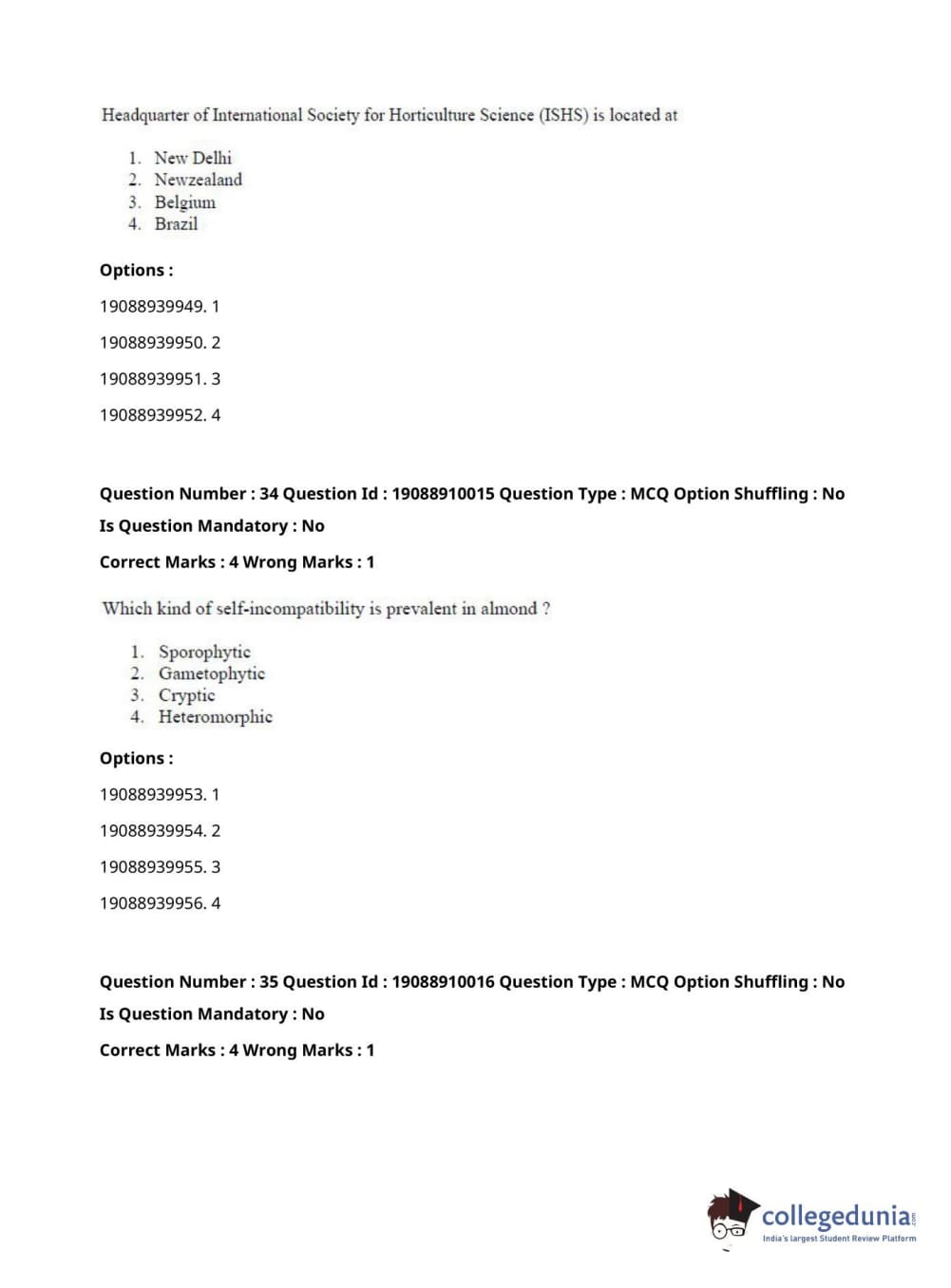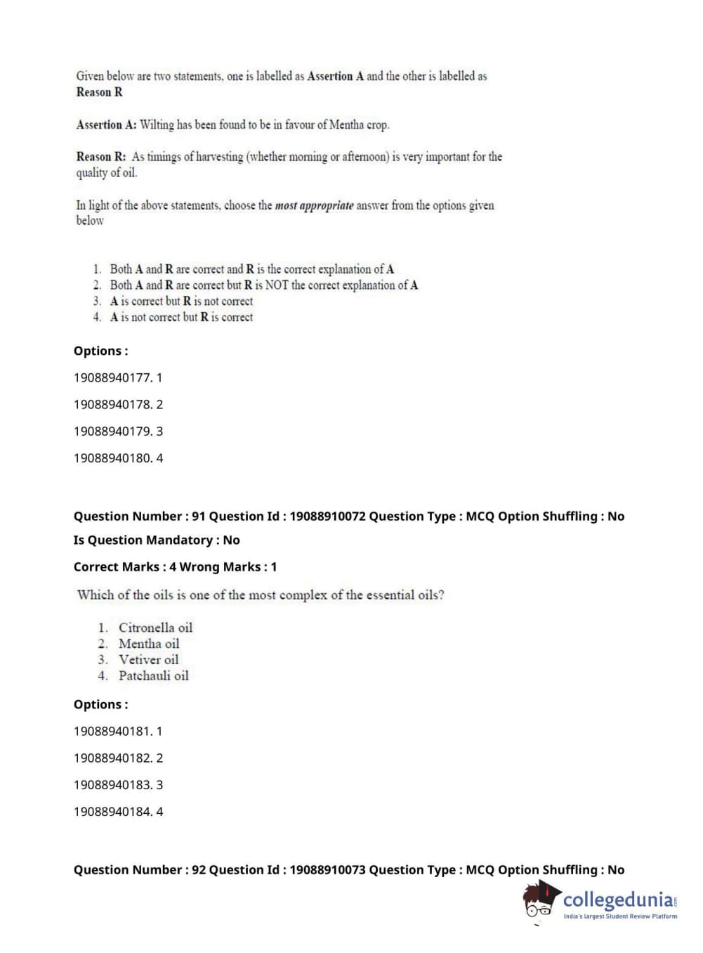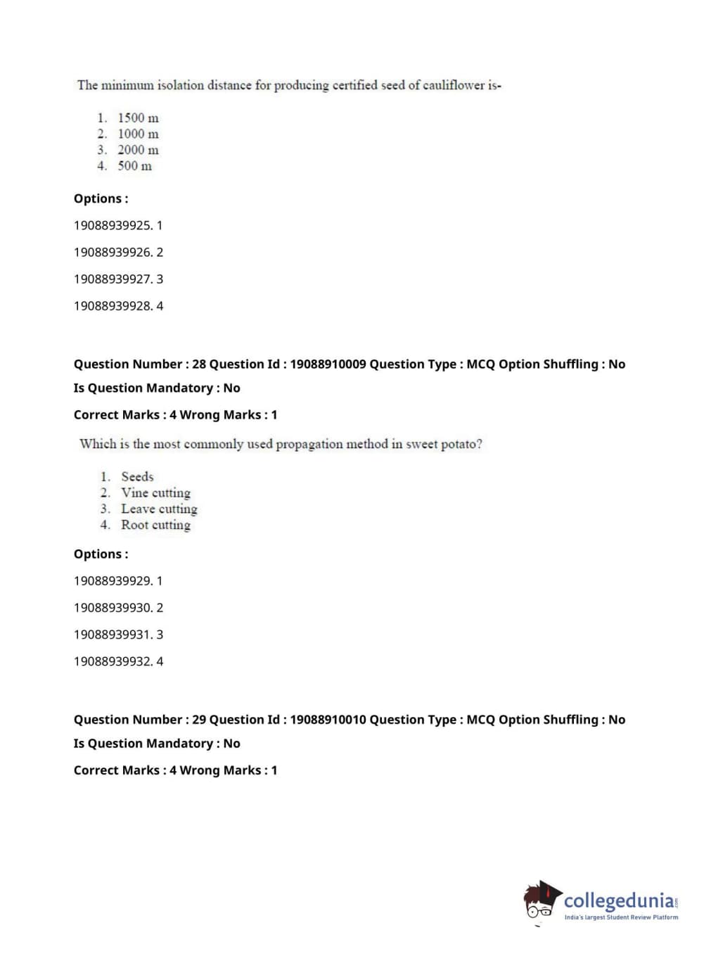ICAR AIEEA 2021 JRF - SPICES PLANTATION MEDICINAL AND AROMATIC PLANTS Question Paper with Answer Key PDFs Afternoon Session
