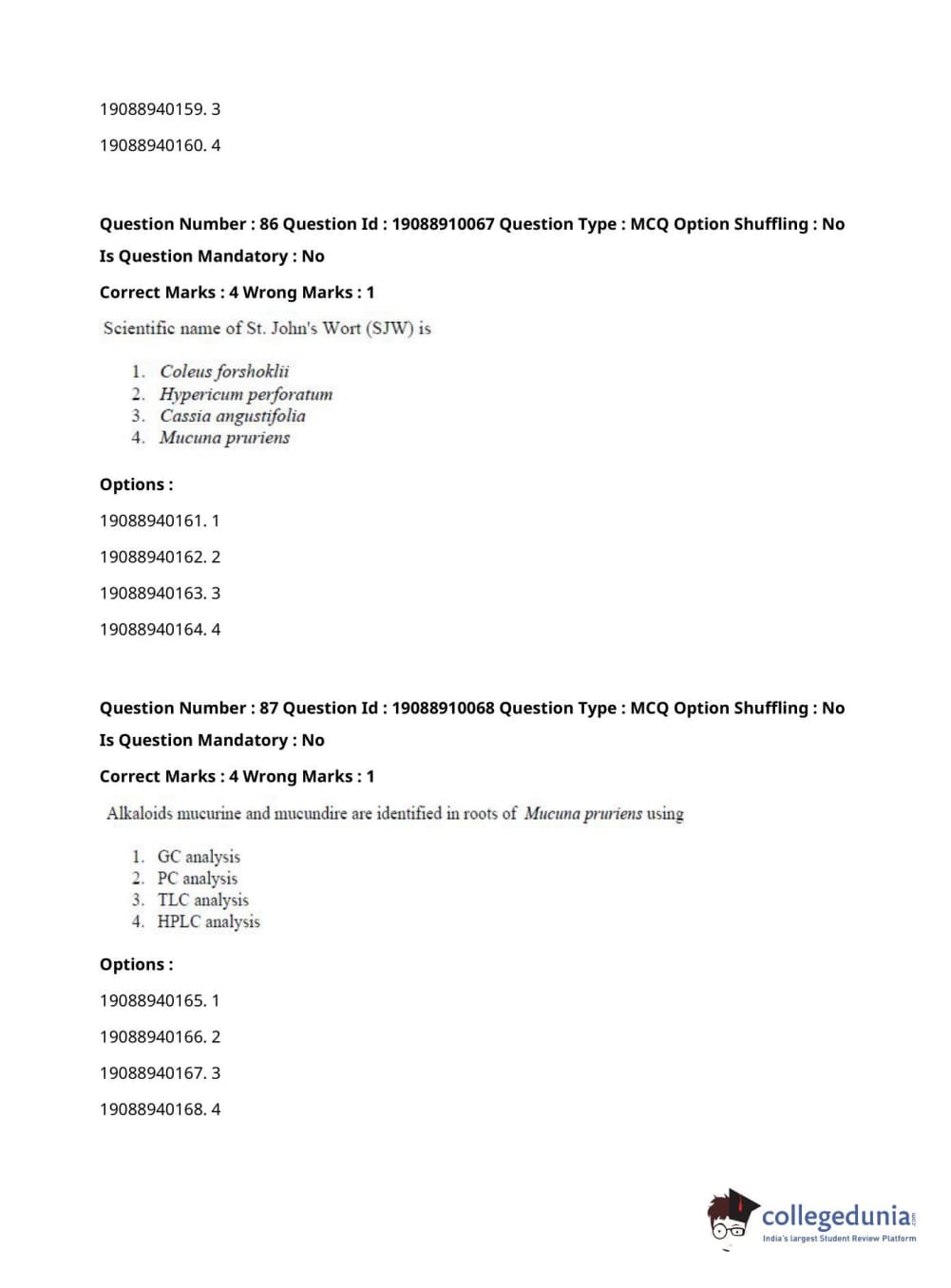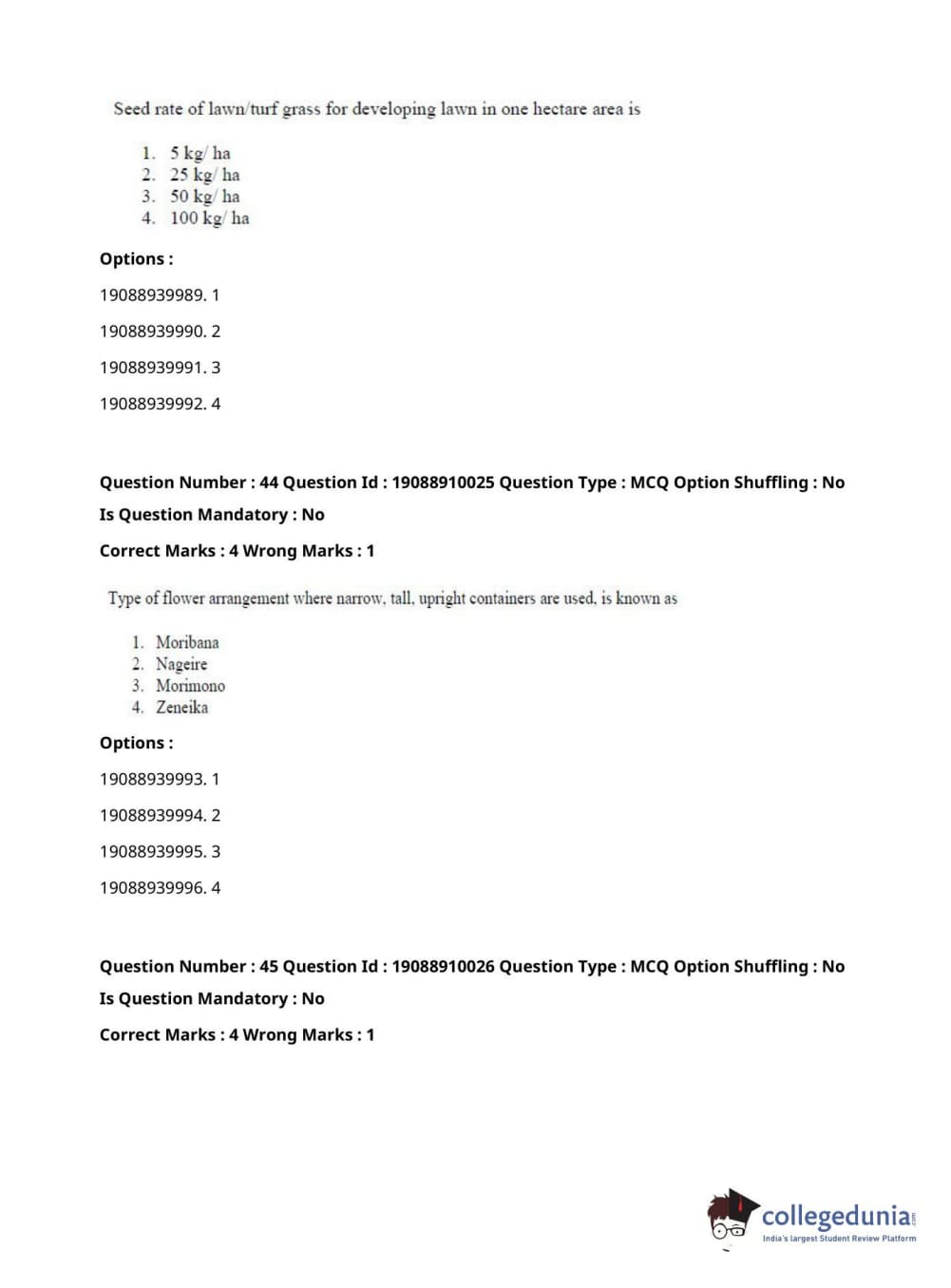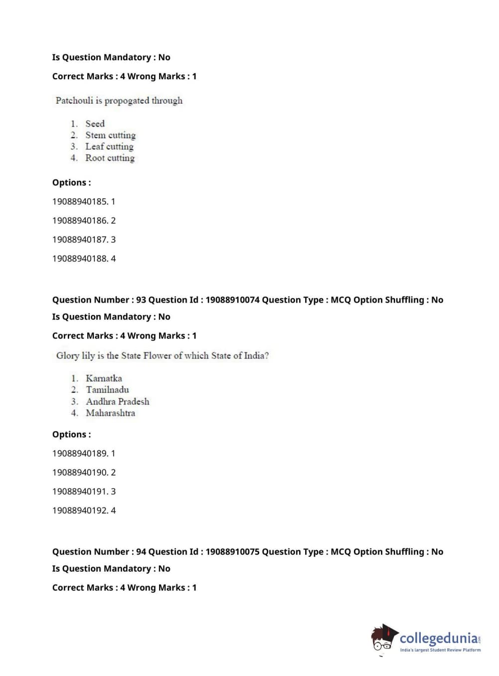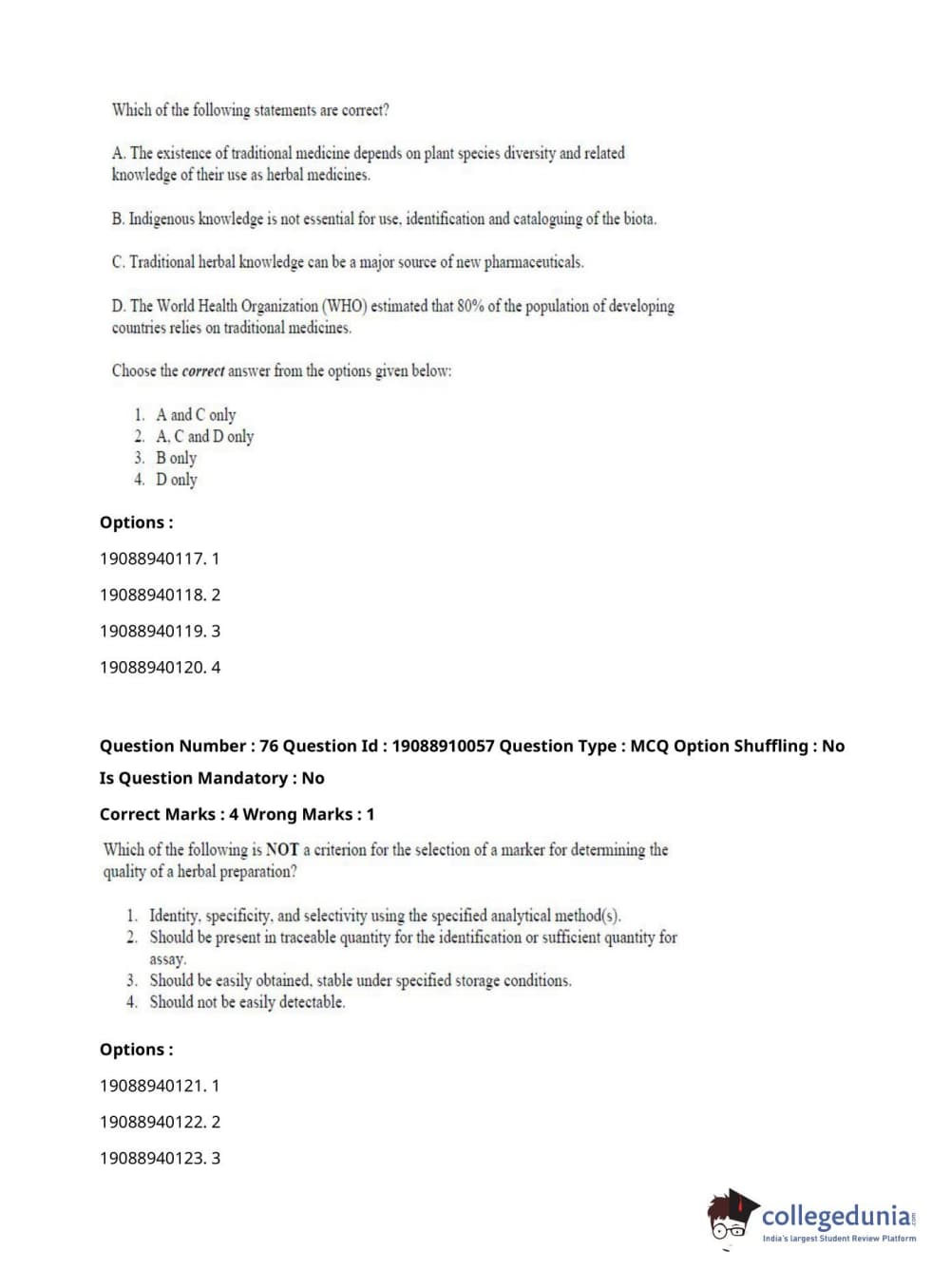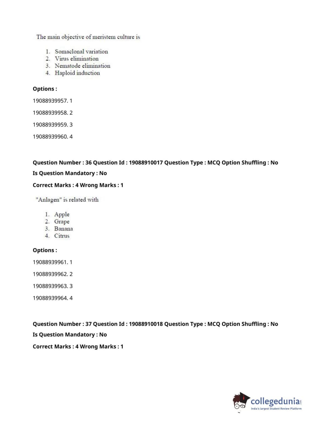 ICAR AIEEA 2021 JRF - SPICES PLANTATION MEDICINAL AND AROMATIC PLANTS Question Paper with Answer Key PDFs Afternoon Session