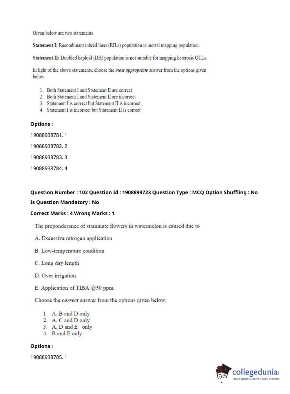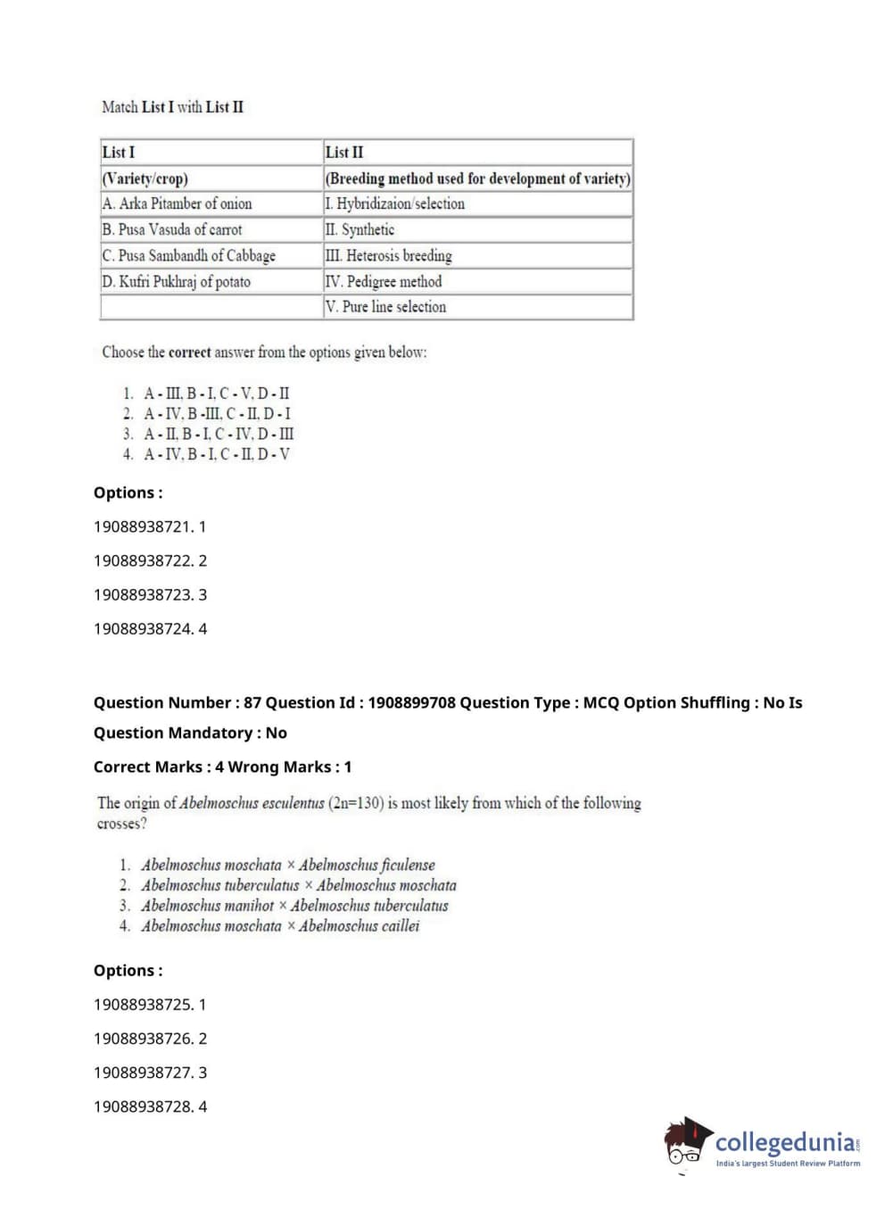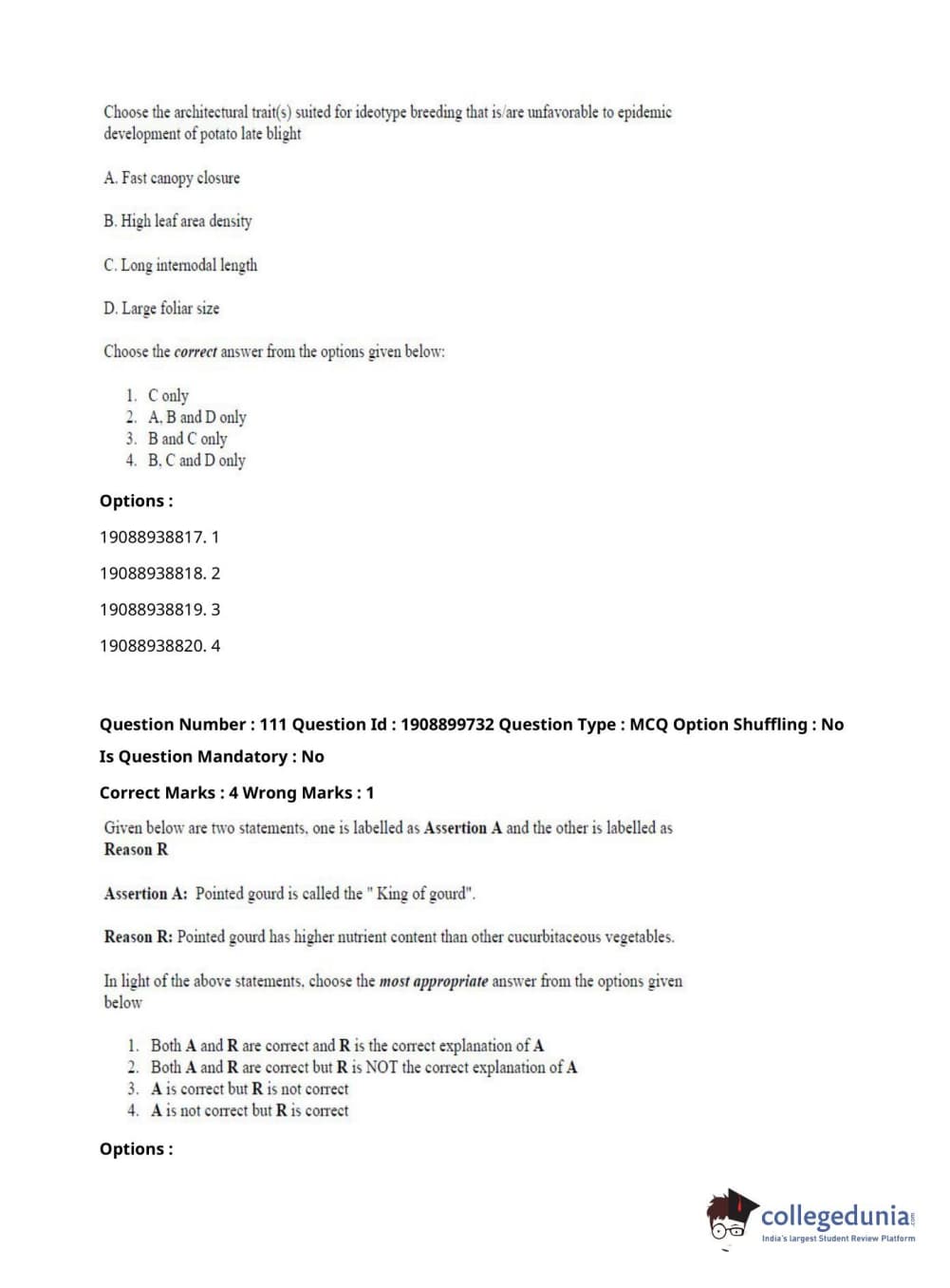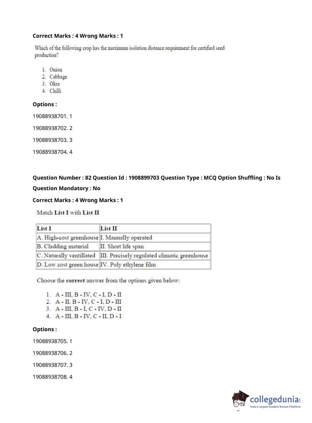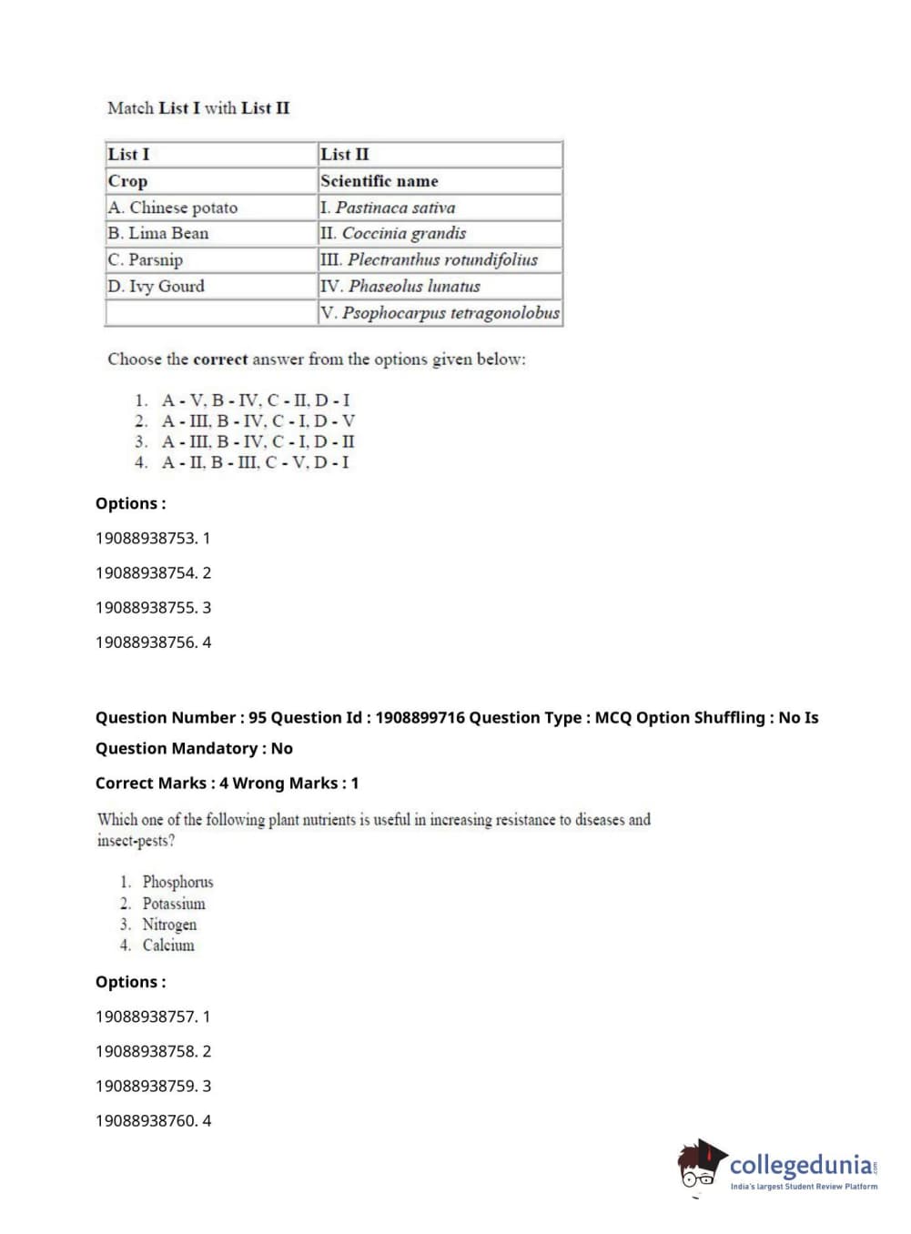 ICAR AIEEA 2021 JRF - VEGETABLE SCIENCE AND OLERICULTURE Question Paper with Answer Key PDFs Afternoon Session