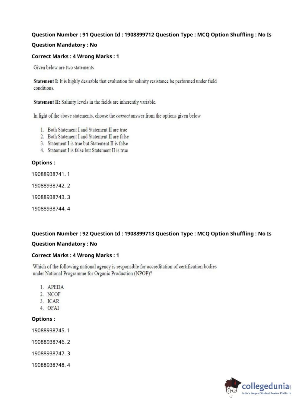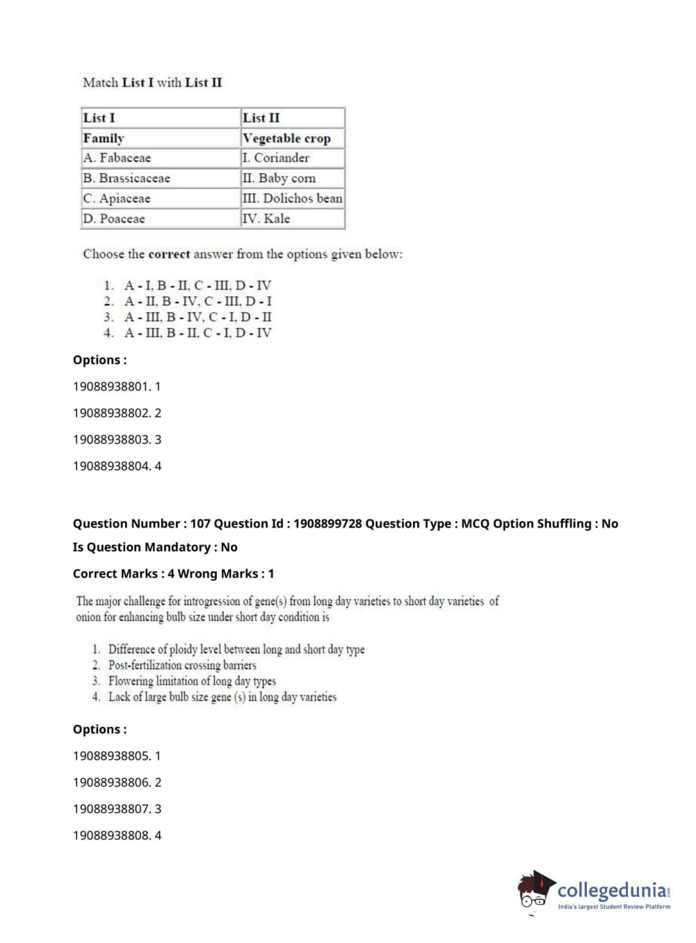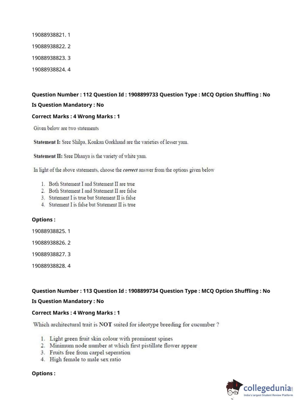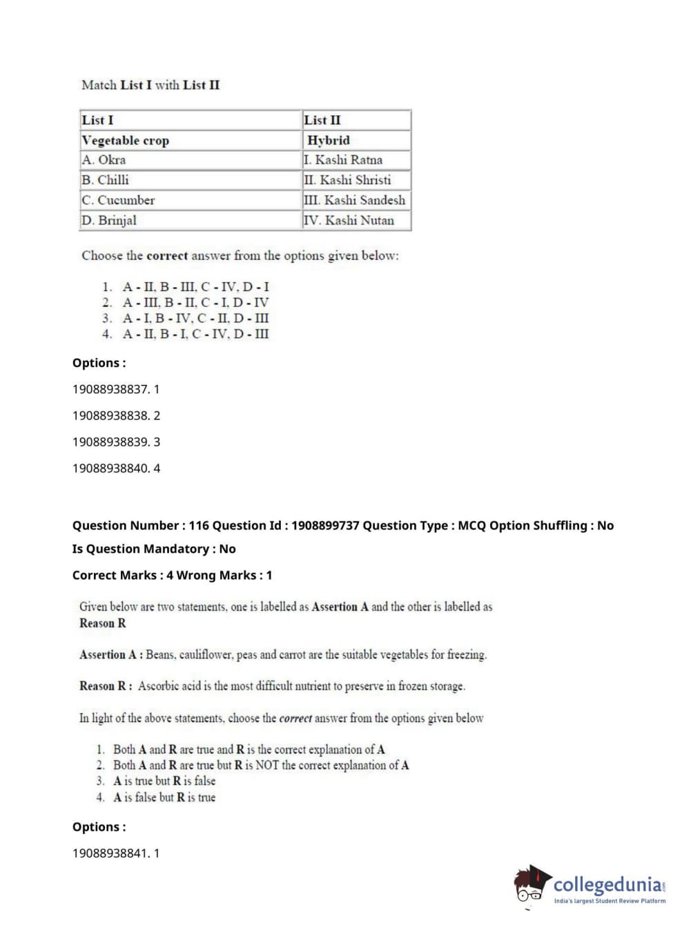 | ICAR AIEEA 2021 JRF - VEGETABLE SCIENCE AND OLERICULTURE Question Paper PDF | ICAR AIEEA 2021 JRF - VEGETABLE SCIENCE AND OLERICULTURE Answer Key PDF |