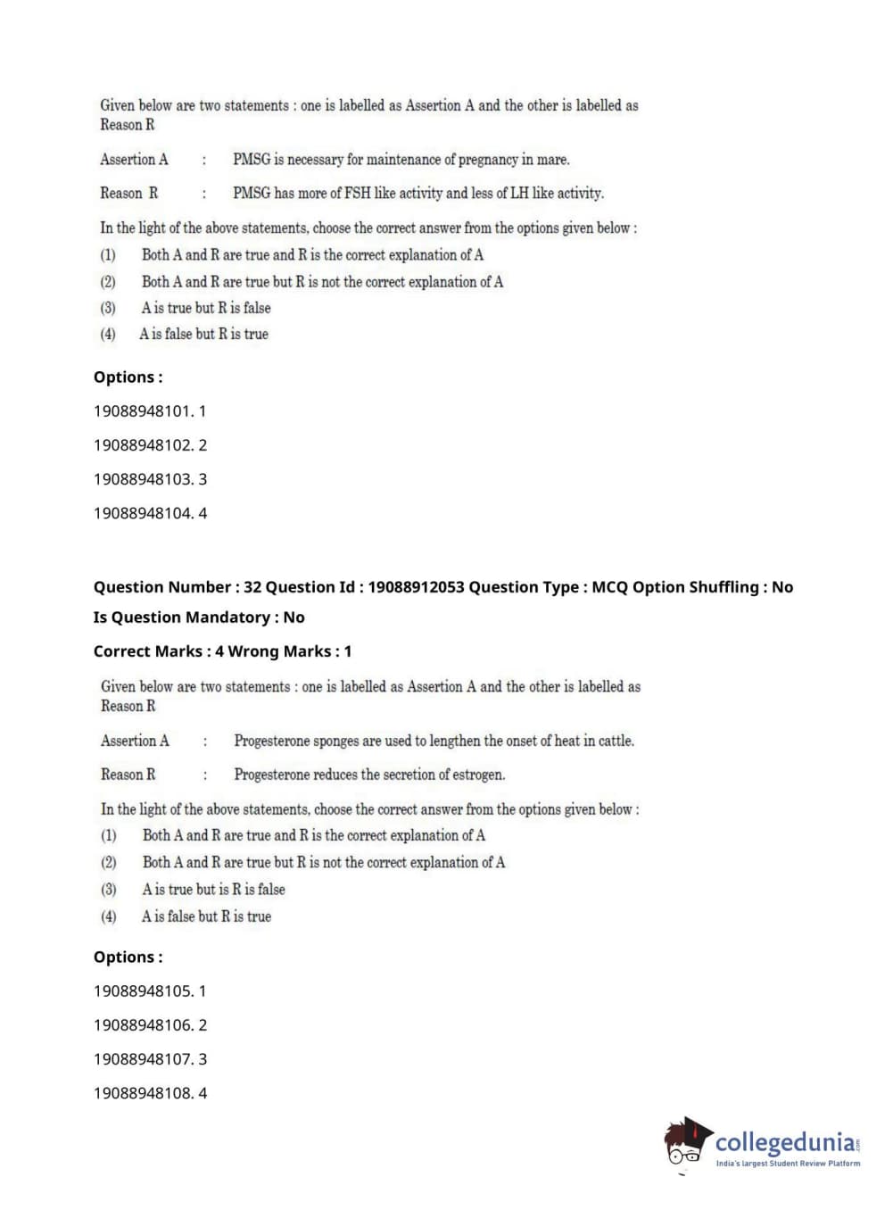 ICAR AIEEA 2021 JRF - VETERINARY BIOCHEMISTRY Question paper with answer key pdf conducted on September 17, 2021 in Afternoon Session is available for download. The exam was successfully organized by National Testing Agency (NTA). The question paper comprised a total of 120 questions.