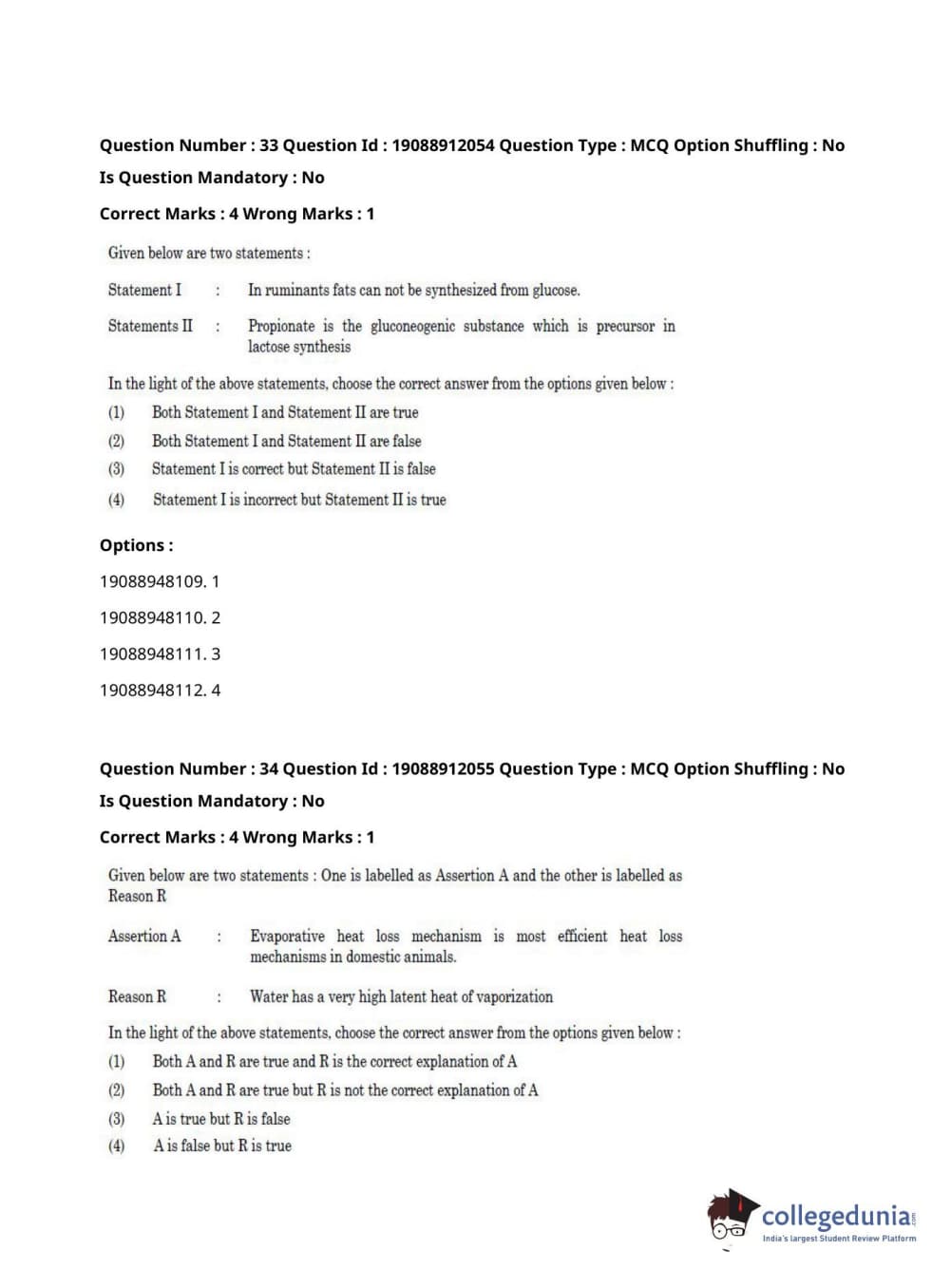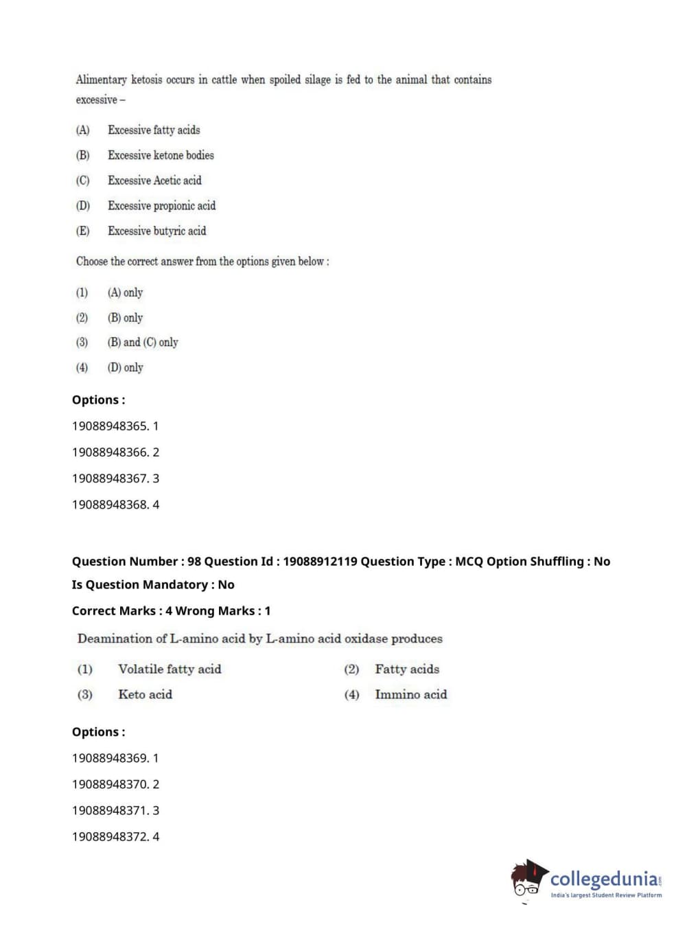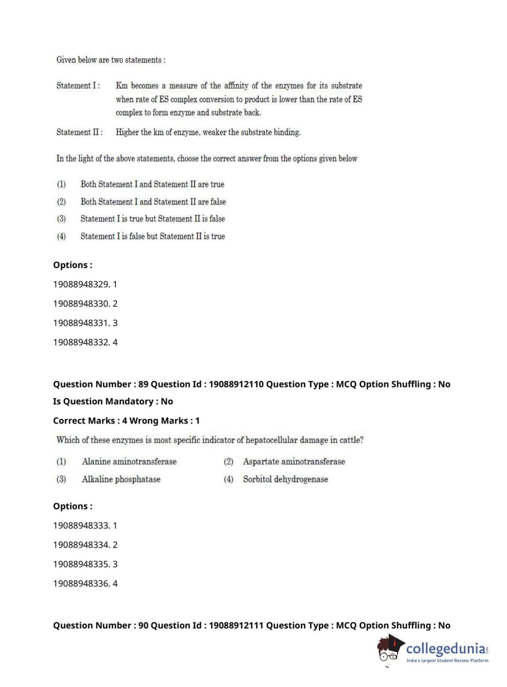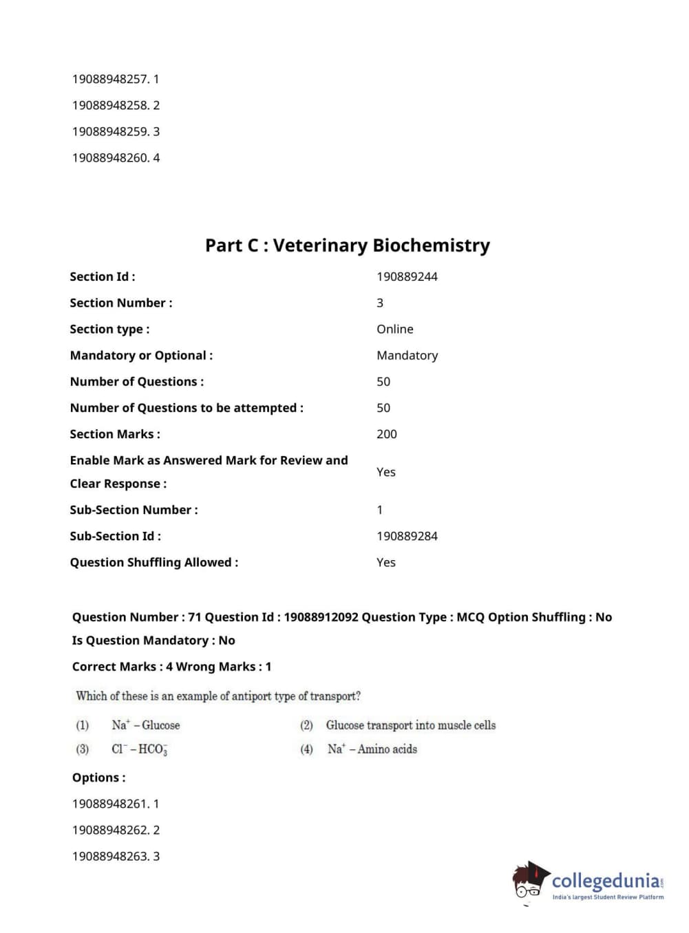 ICAR AIEEA 2021 JRF - VETERINARY BIOCHEMISTRY Question Paper with Answer Key PDFs Afternoon Session