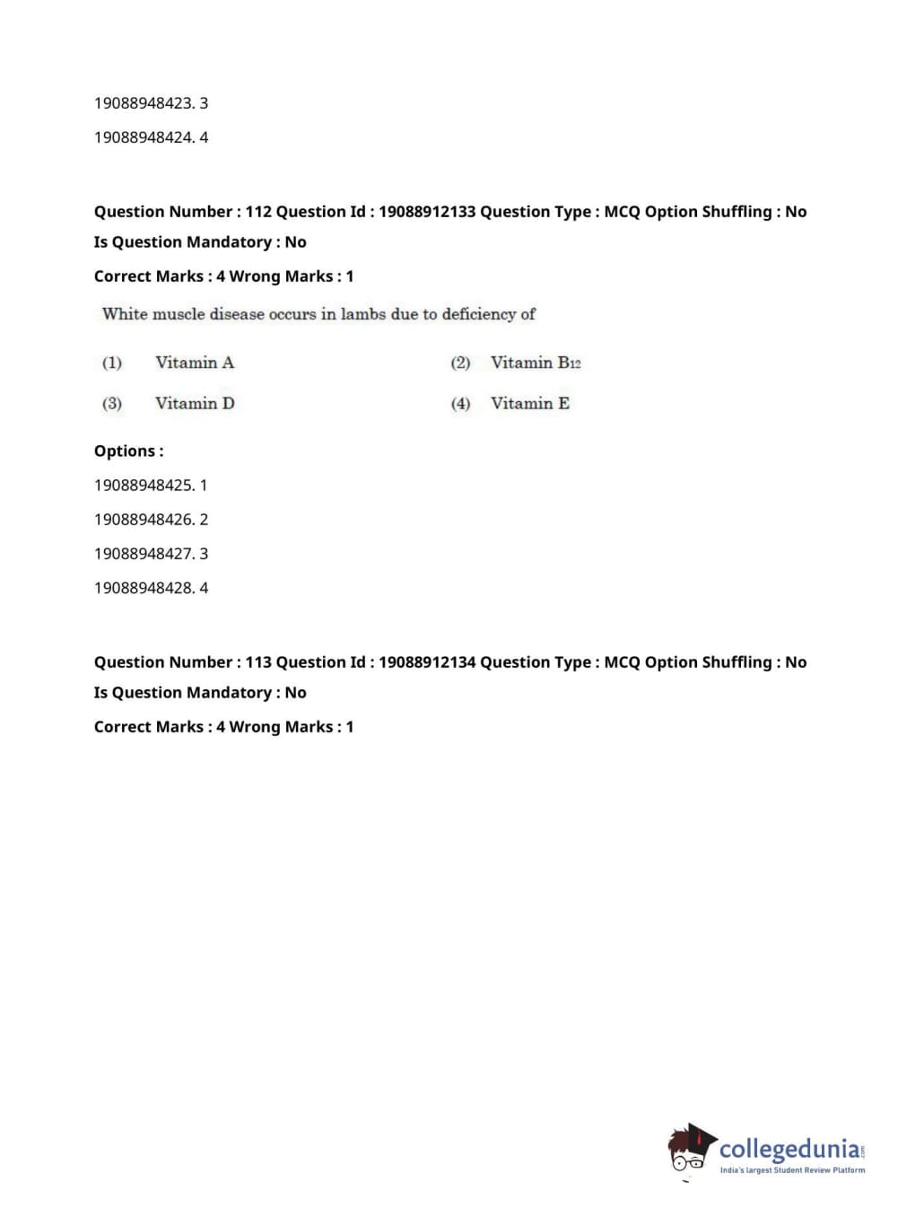| ICAR AIEEA 2021 JRF - VETERINARY BIOCHEMISTRY Question Paper PDF | ICAR AIEEA 2021 JRF - VETERINARY BIOCHEMISTRY Answer Key PDF |
