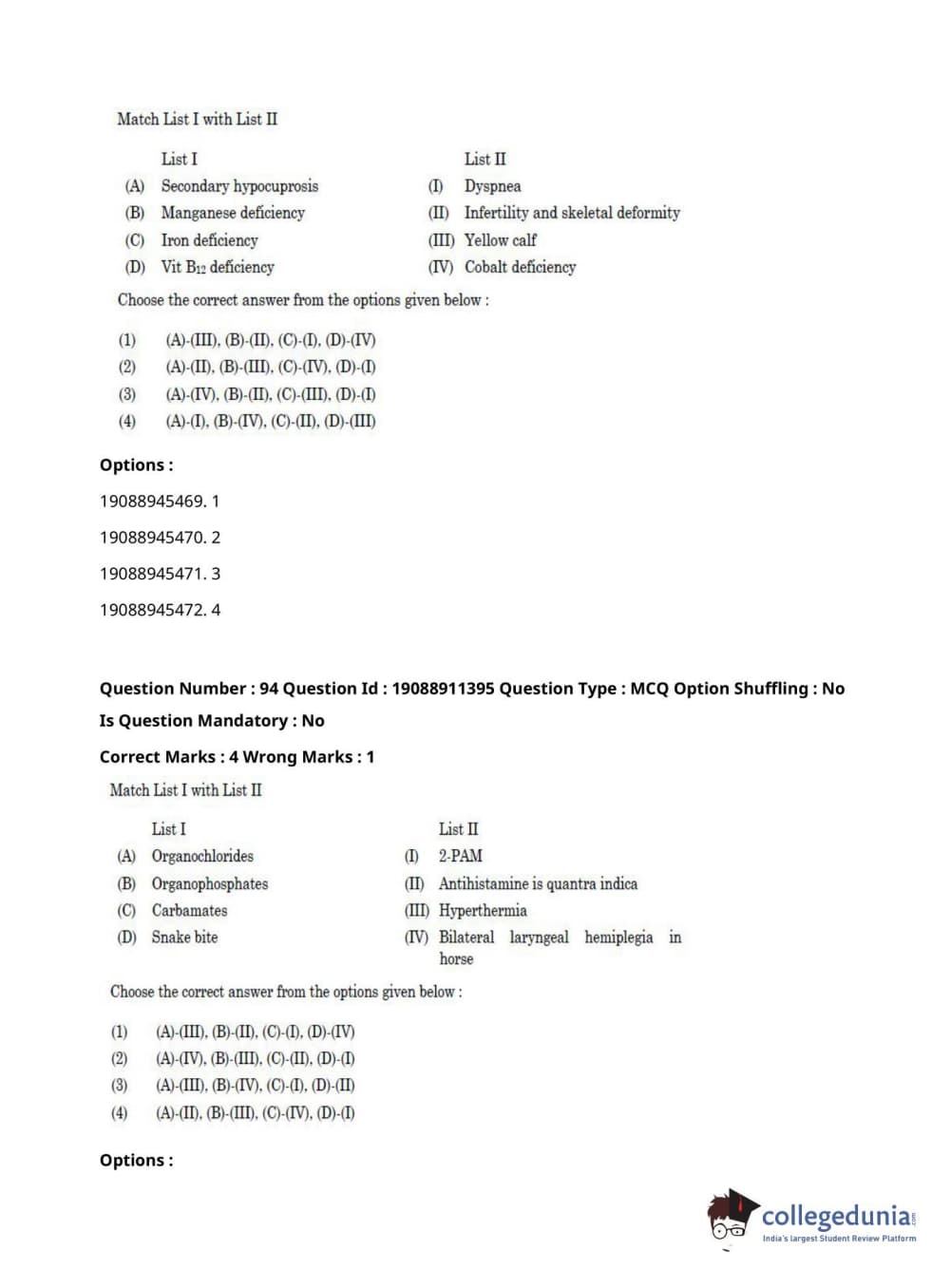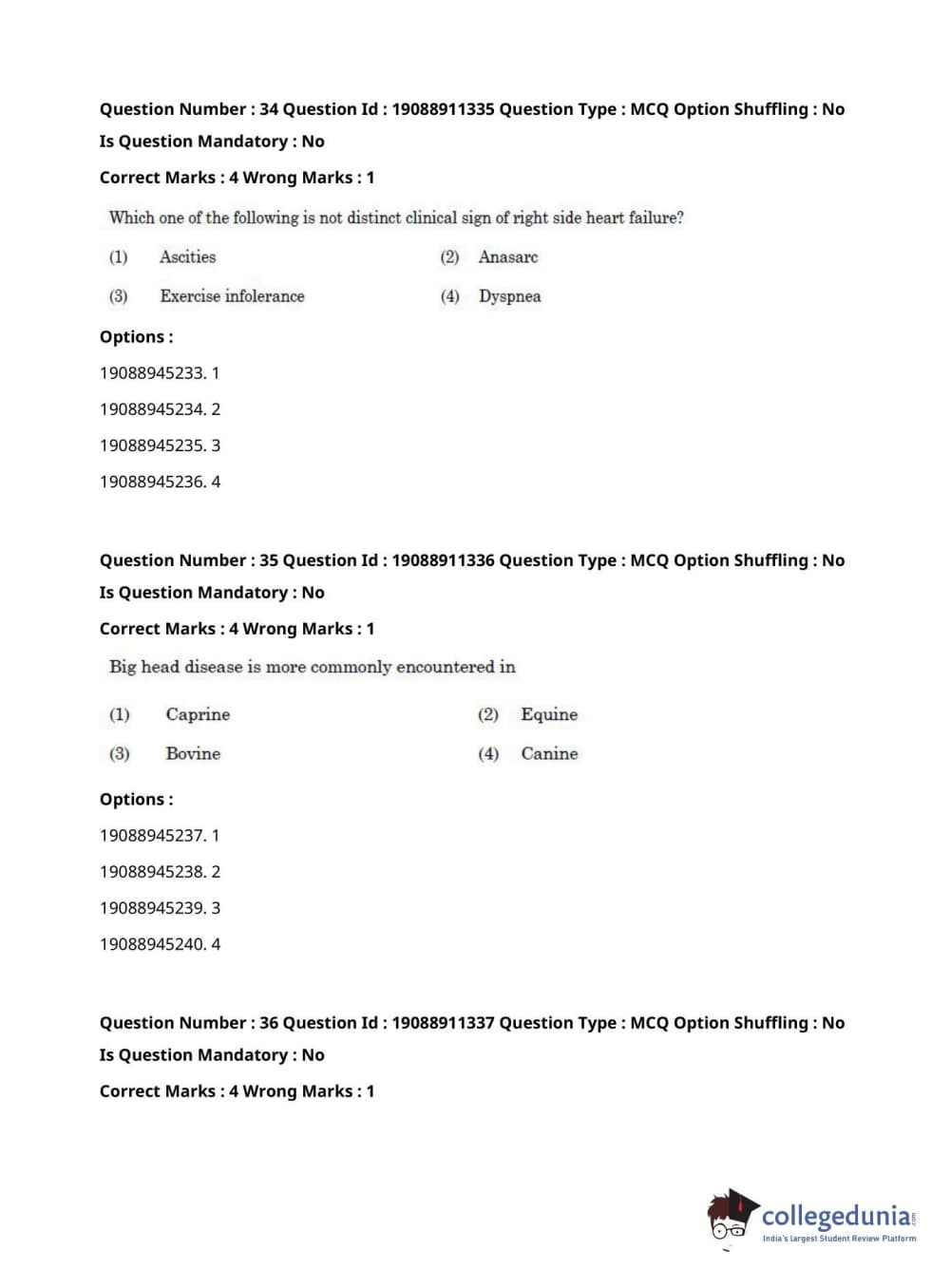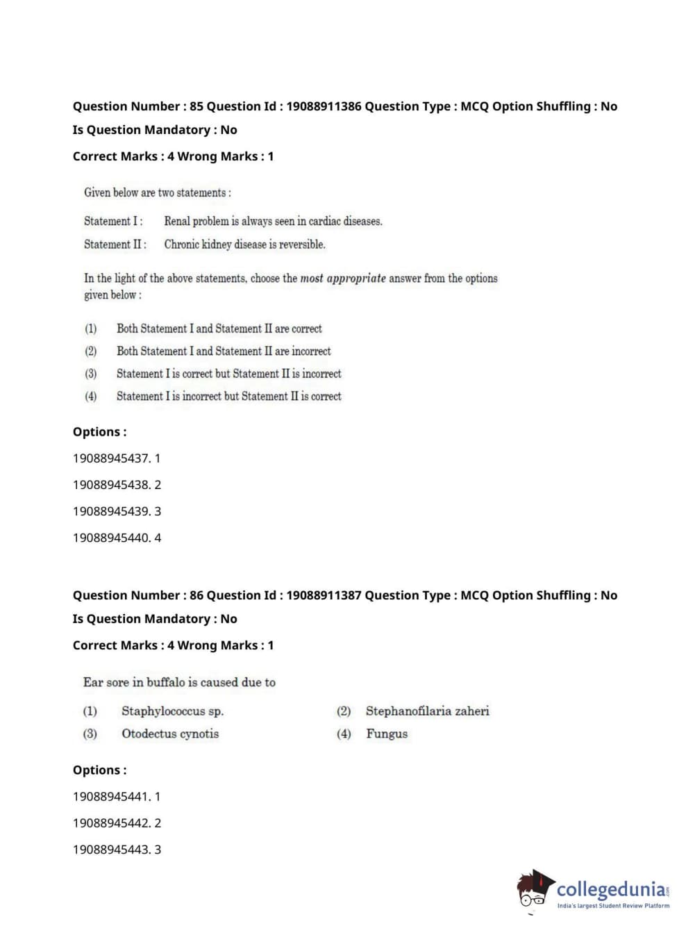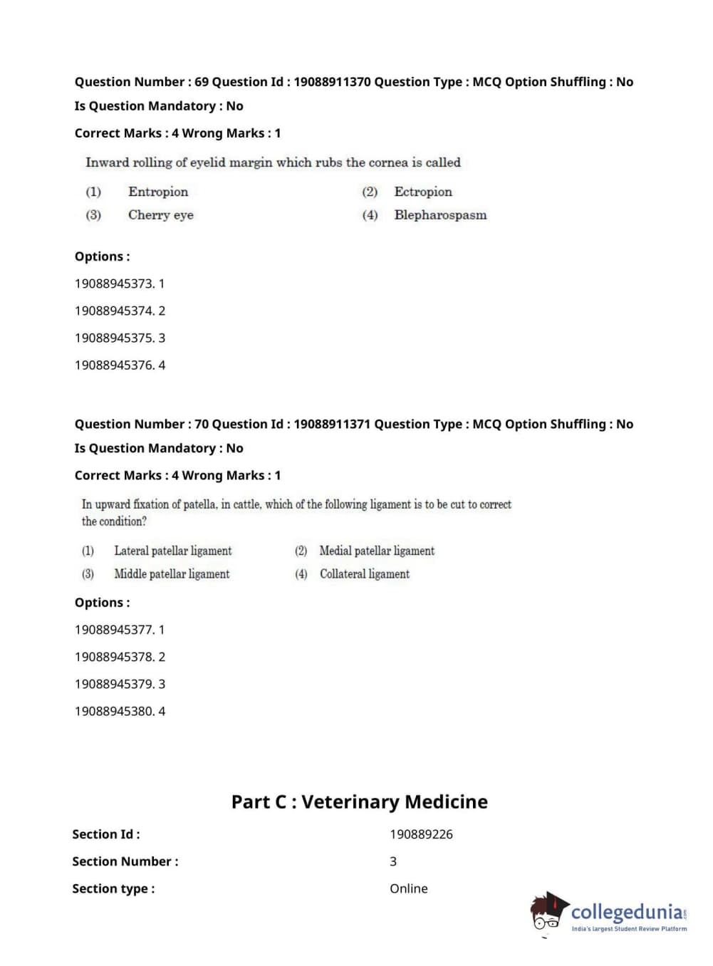 ICAR AIEEA 2021 JRF - VETERINARY MEDICINE Question Paper with Answer Key PDFs Afternoon Session