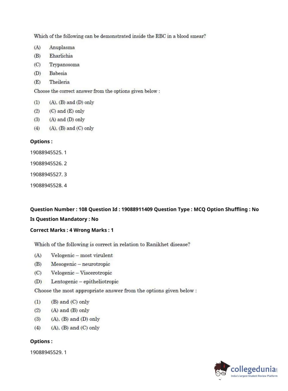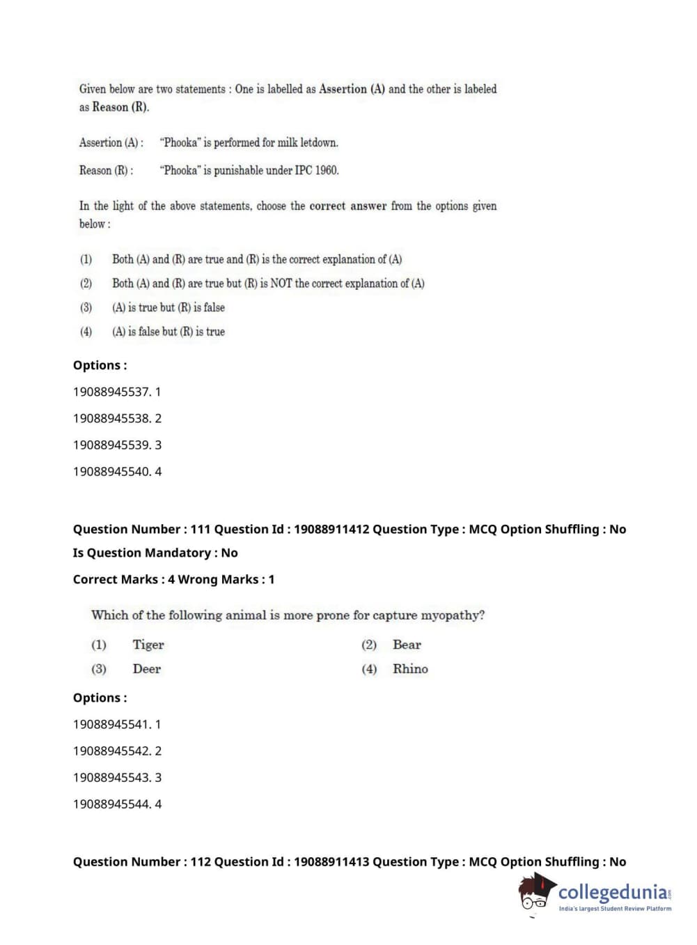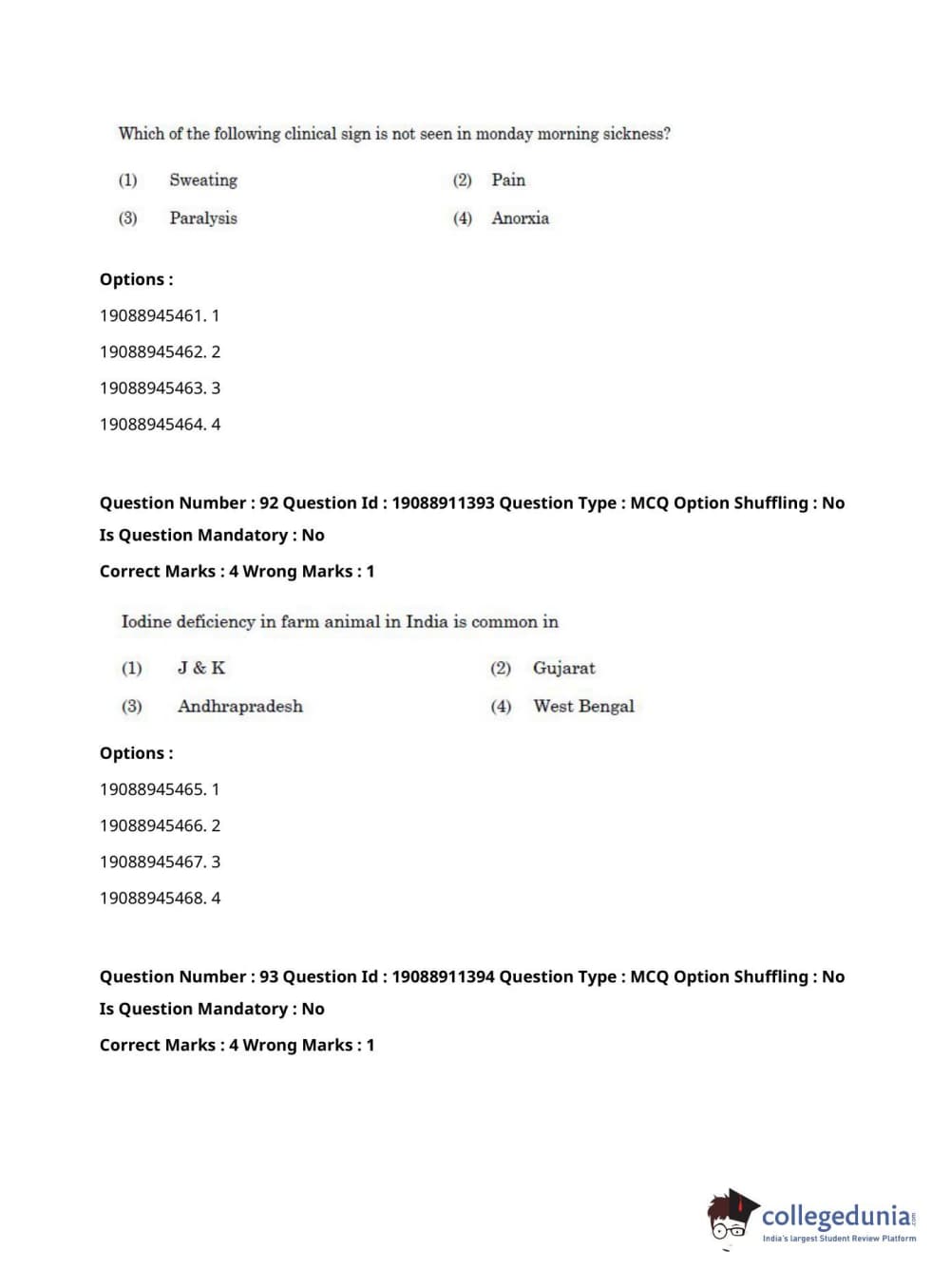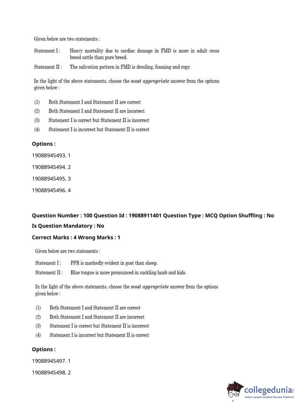 ICAR AIEEA 2021 JRF - VETERINARY MEDICINE Question Paper with Answer Key PDFs Afternoon Session