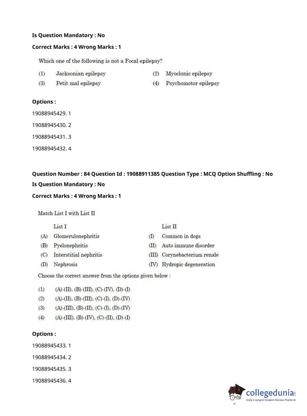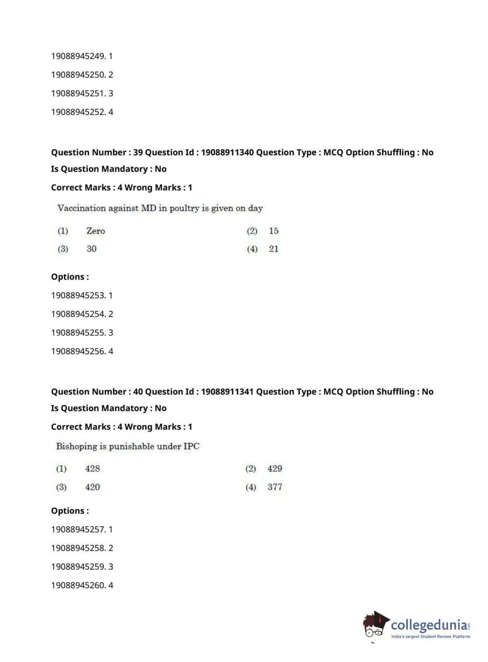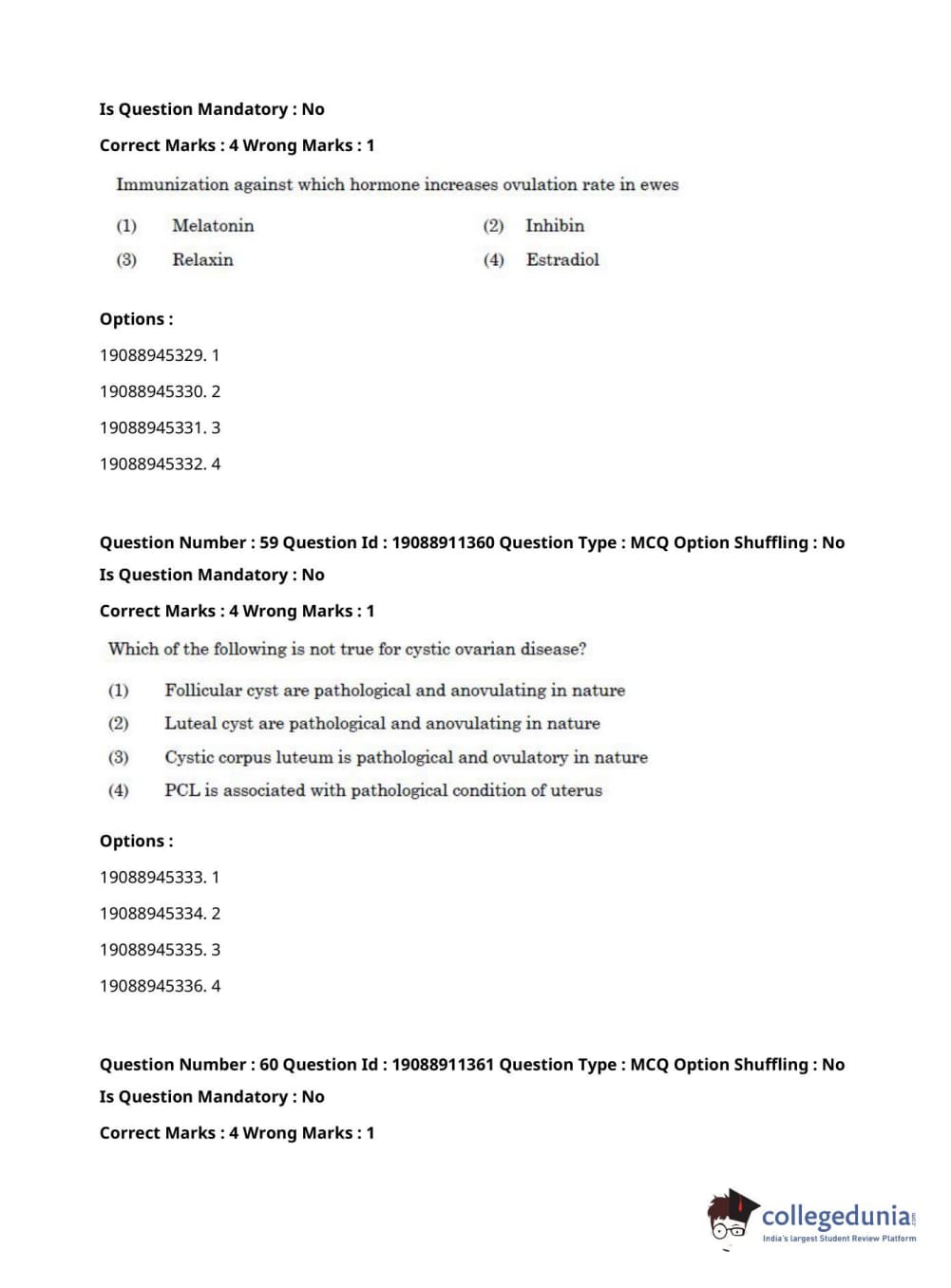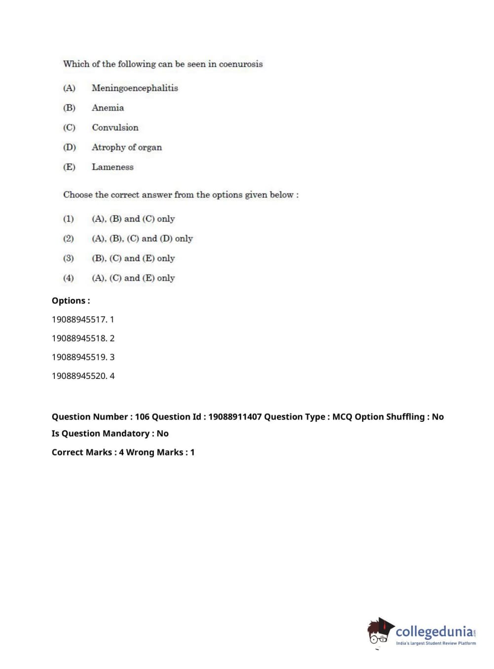 ICAR AIEEA 2021 JRF - VETERINARY MEDICINE Question Paper with Answer Key PDFs Afternoon Session