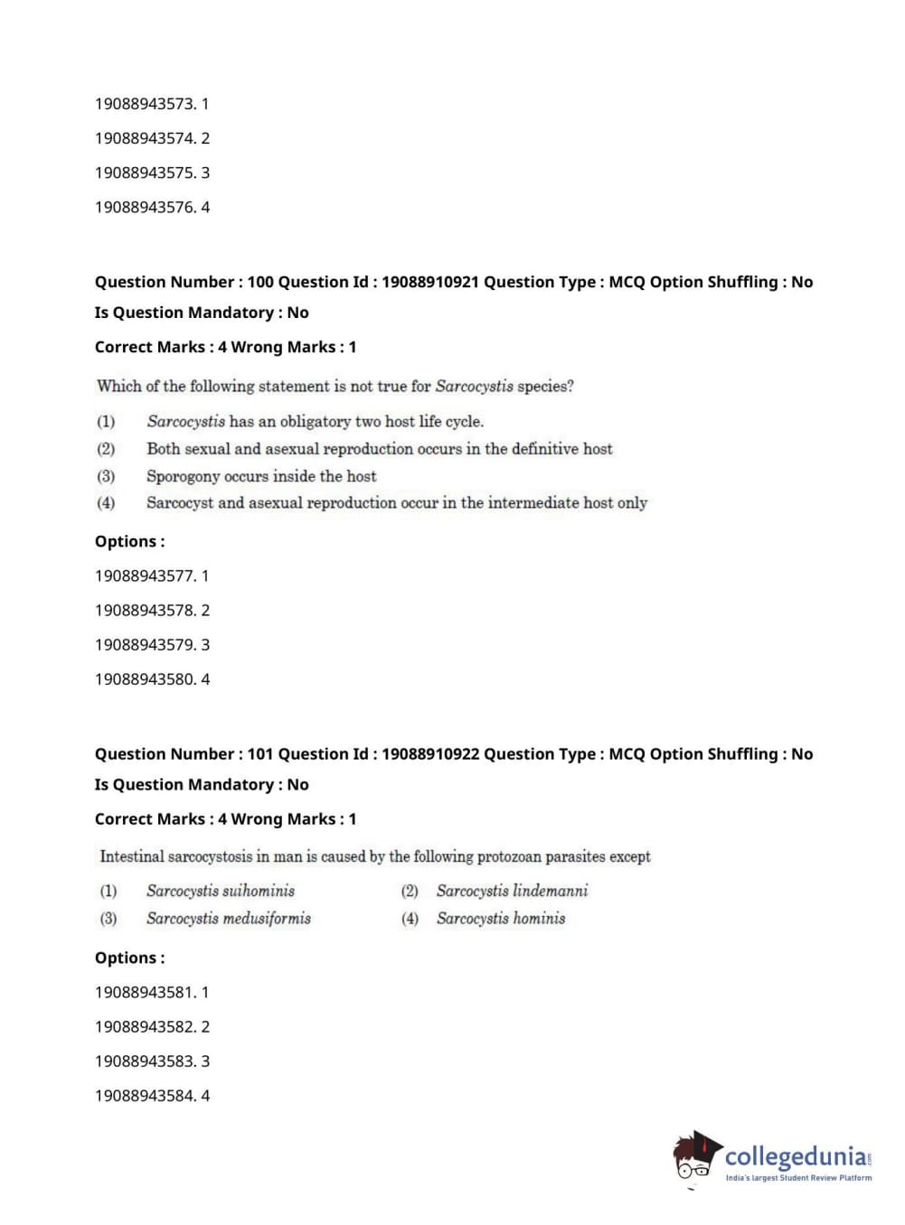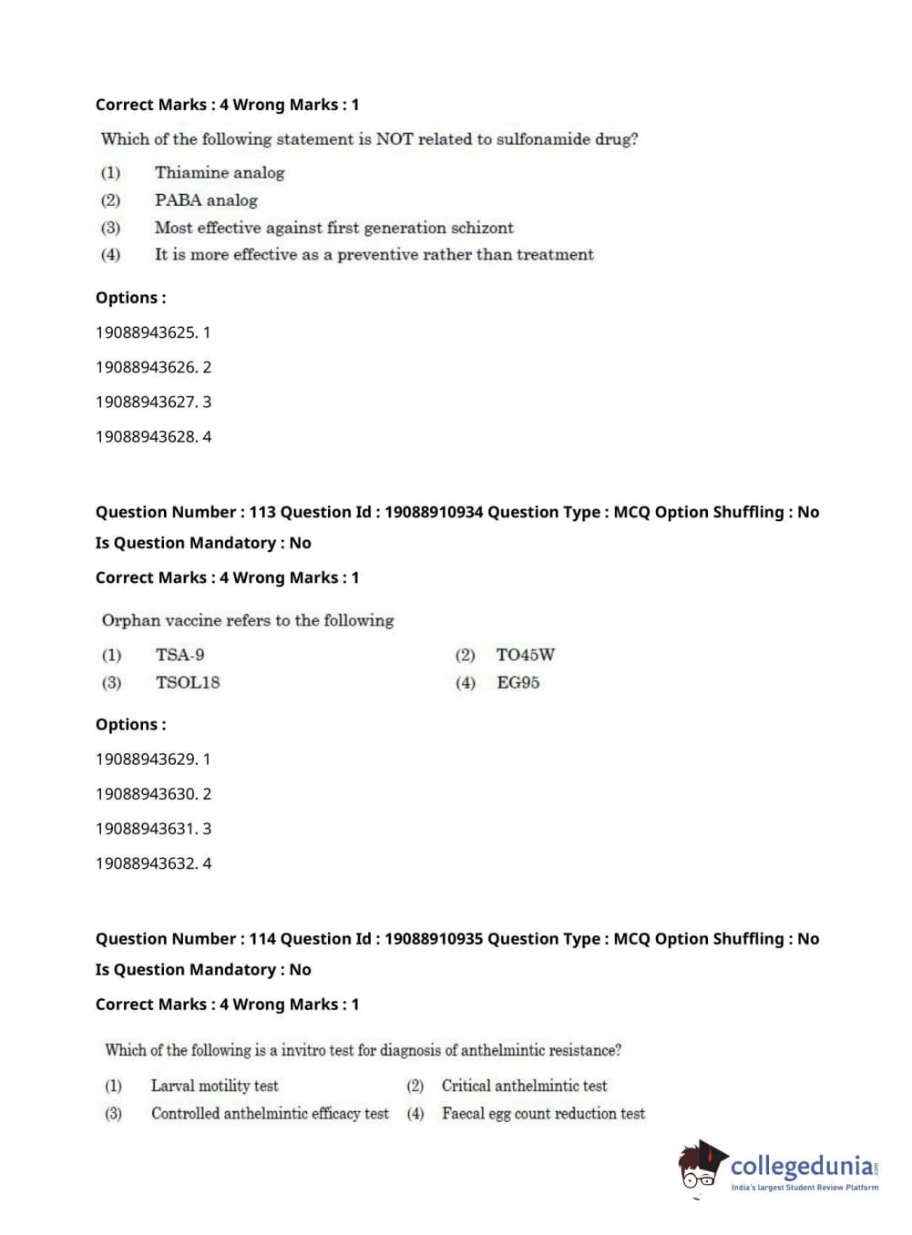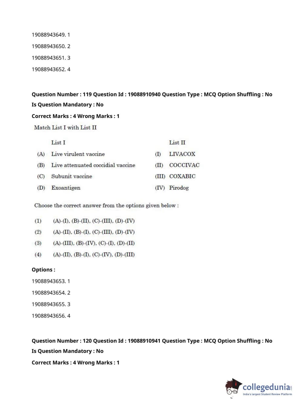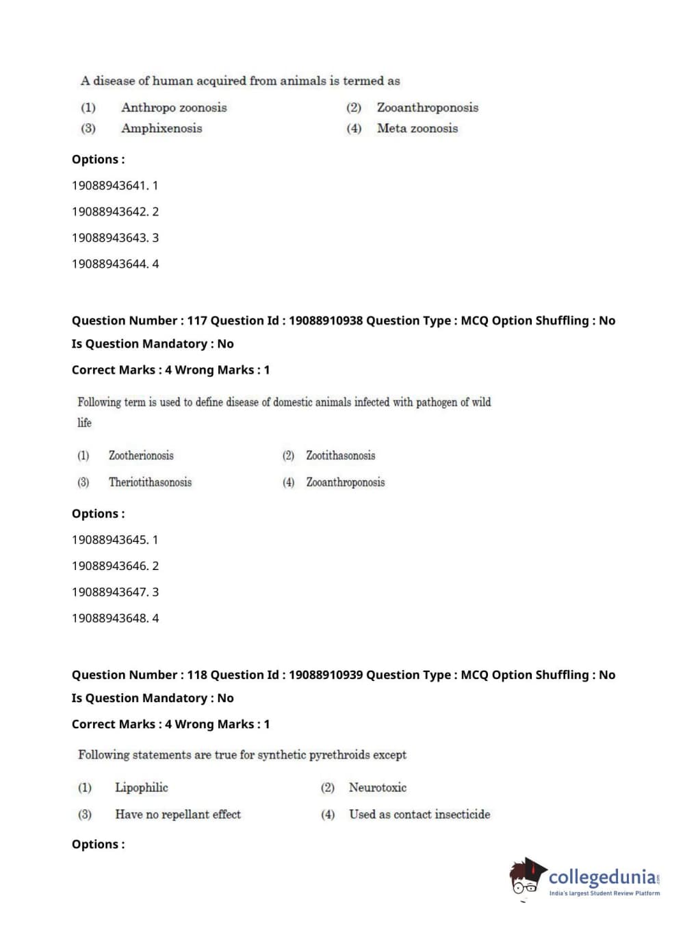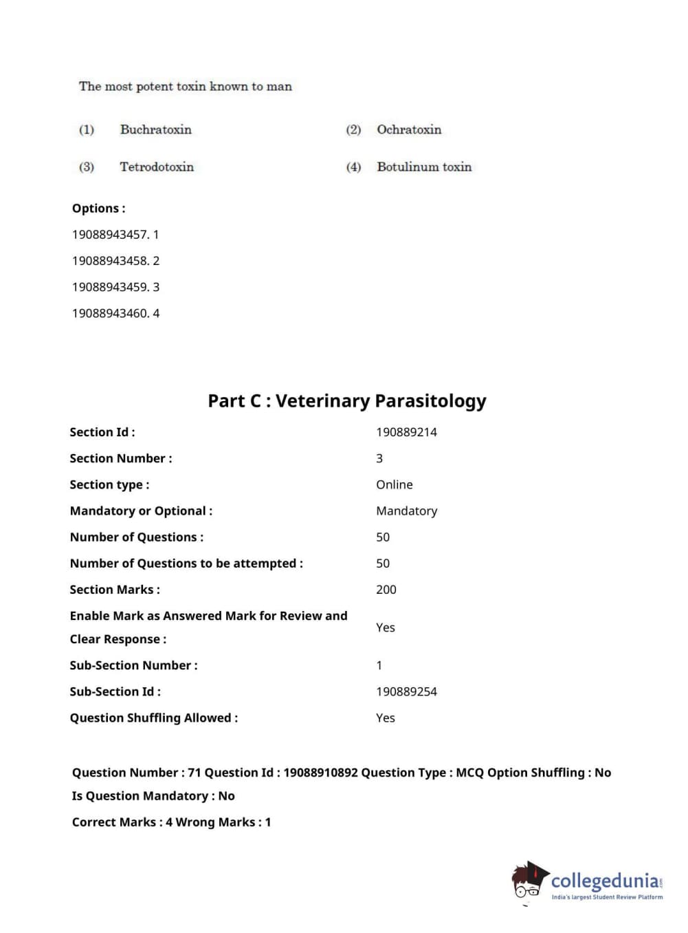ICAR AIEEA 2021 JRF - VETERINARY PARASITOLOGY Question paper with answer key pdf conducted on September 17, 2021 in Afternoon Session is available for download. The exam was successfully organized by National Testing Agency (NTA). The question paper comprised a total of 120 questions.