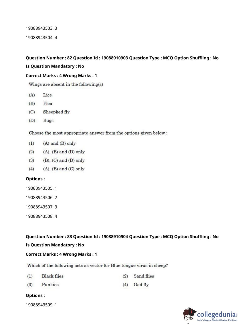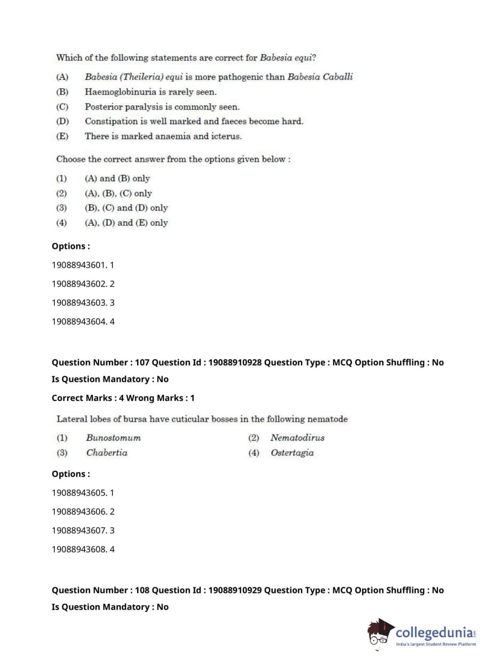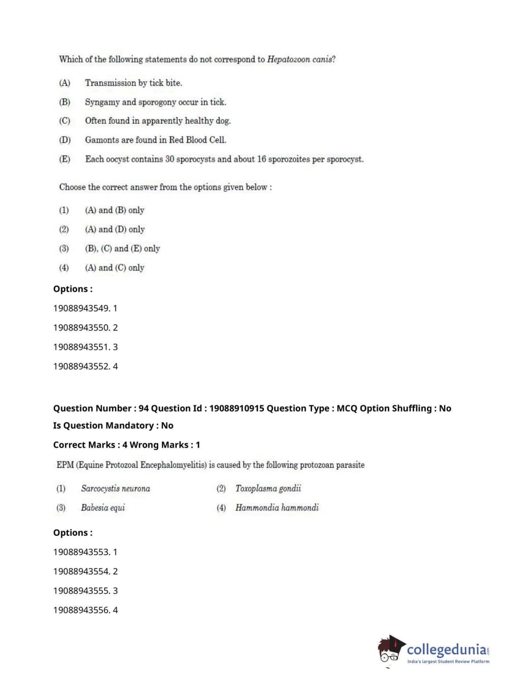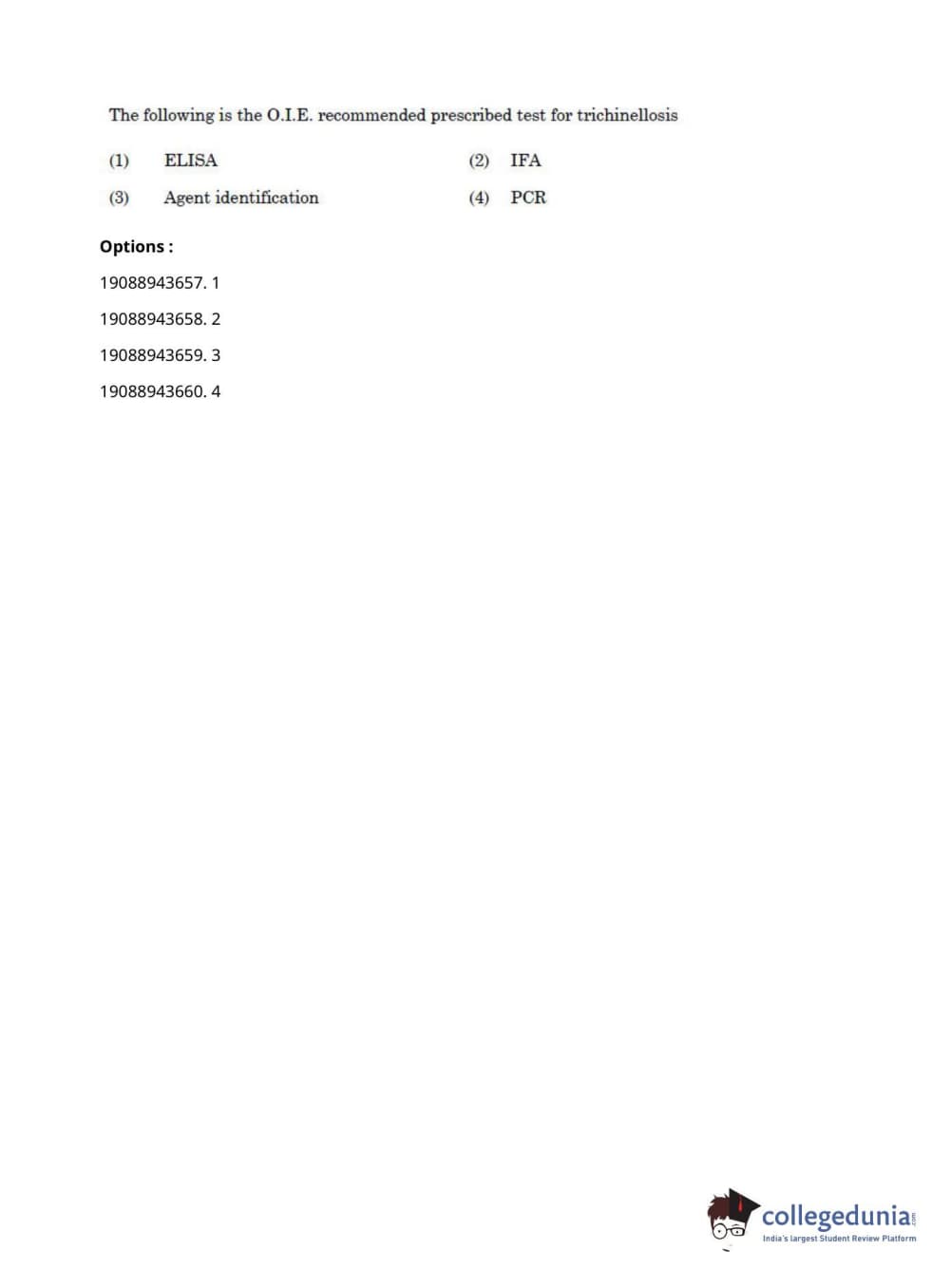 ICAR AIEEA 2021 JRF - VETERINARY PARASITOLOGY Question Paper with Answer Key PDFs Afternoon Session