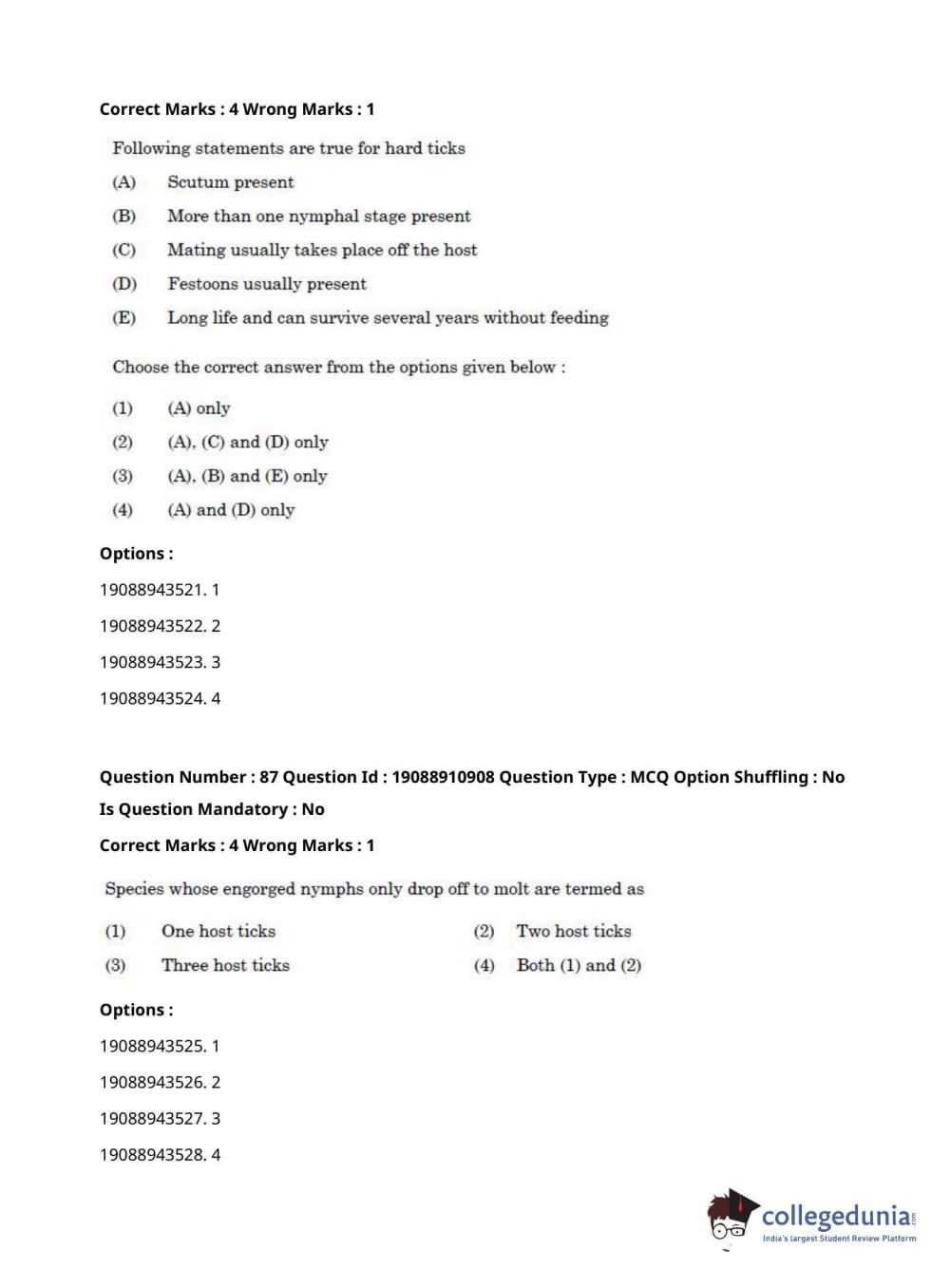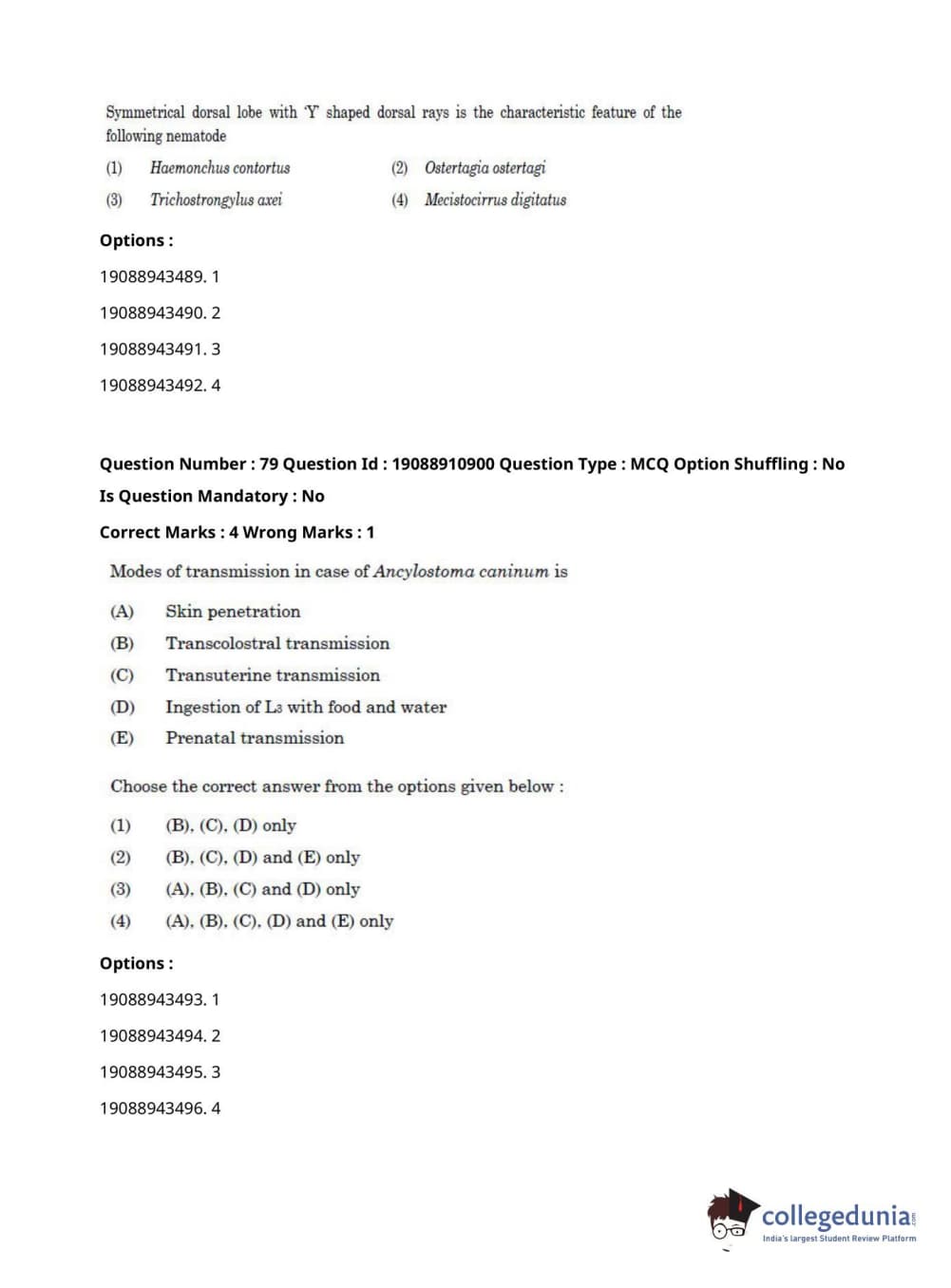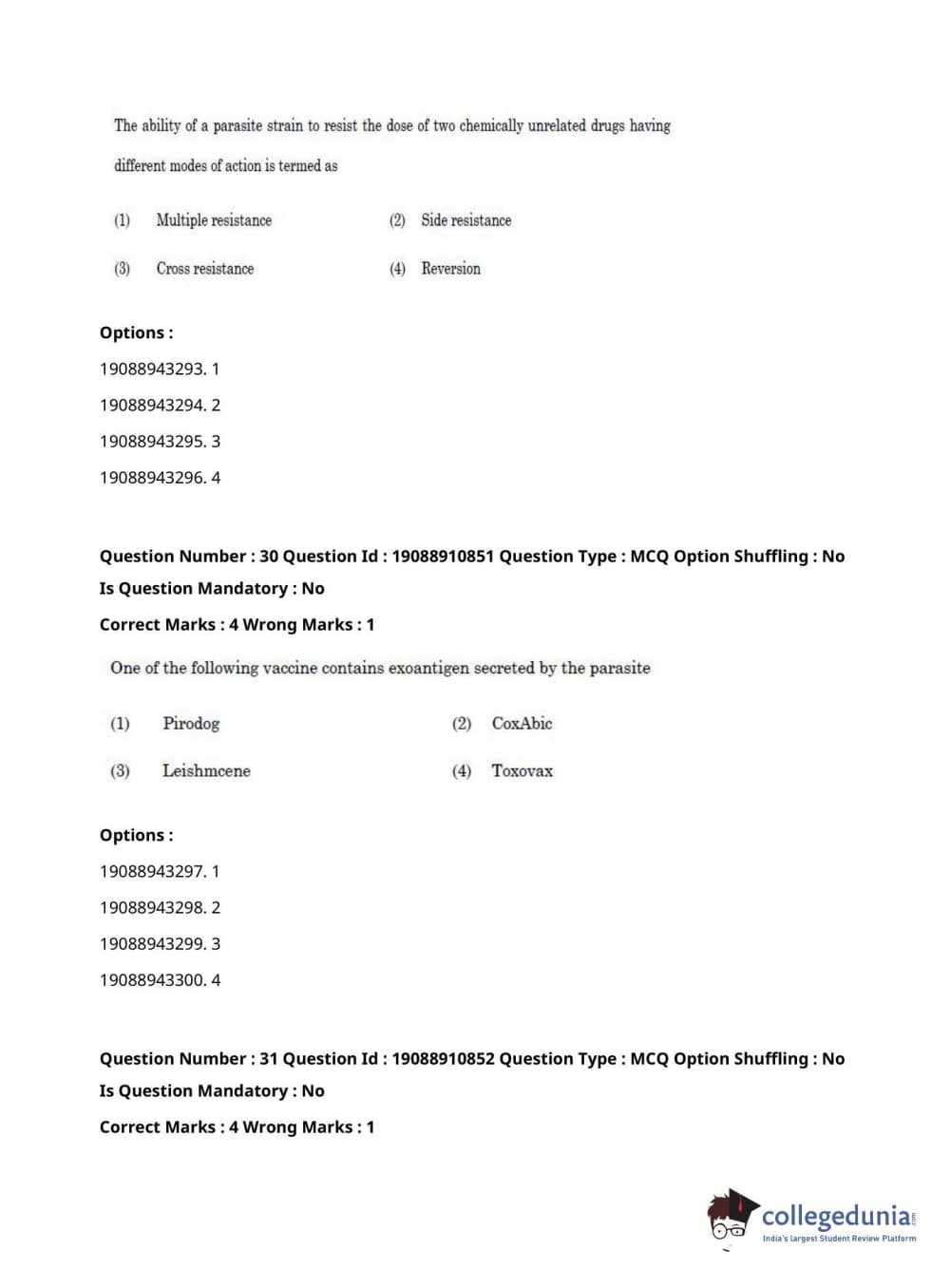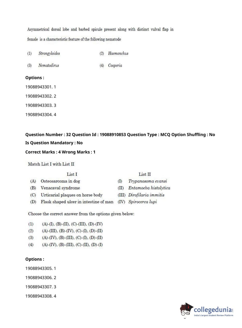 ICAR AIEEA 2021 JRF - VETERINARY PARASITOLOGY Question Paper with Answer Key PDFs Afternoon Session
