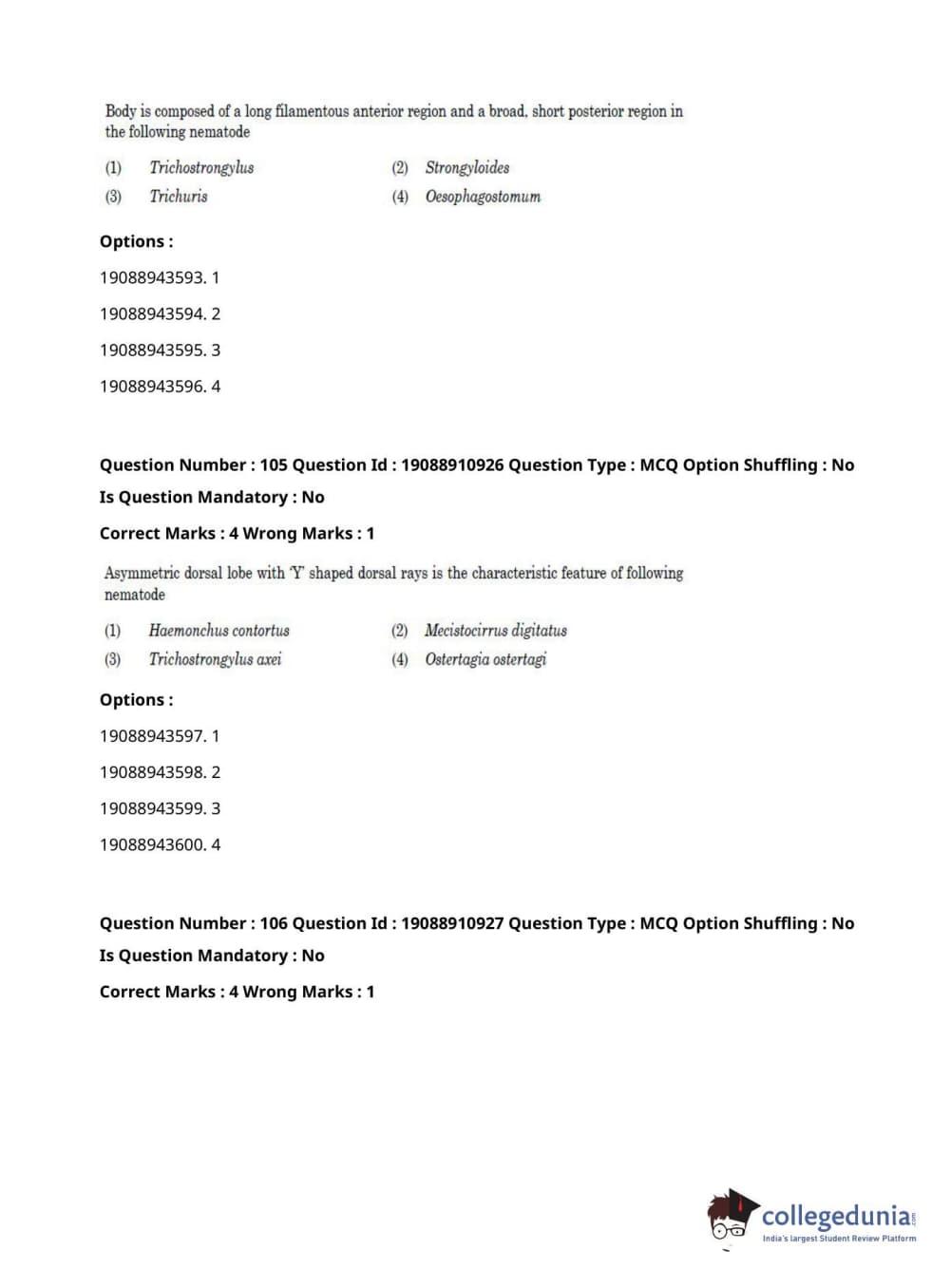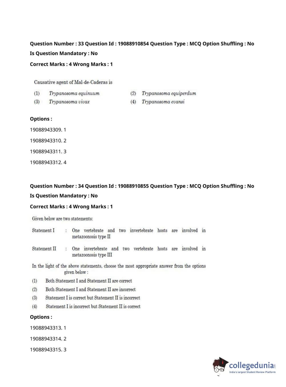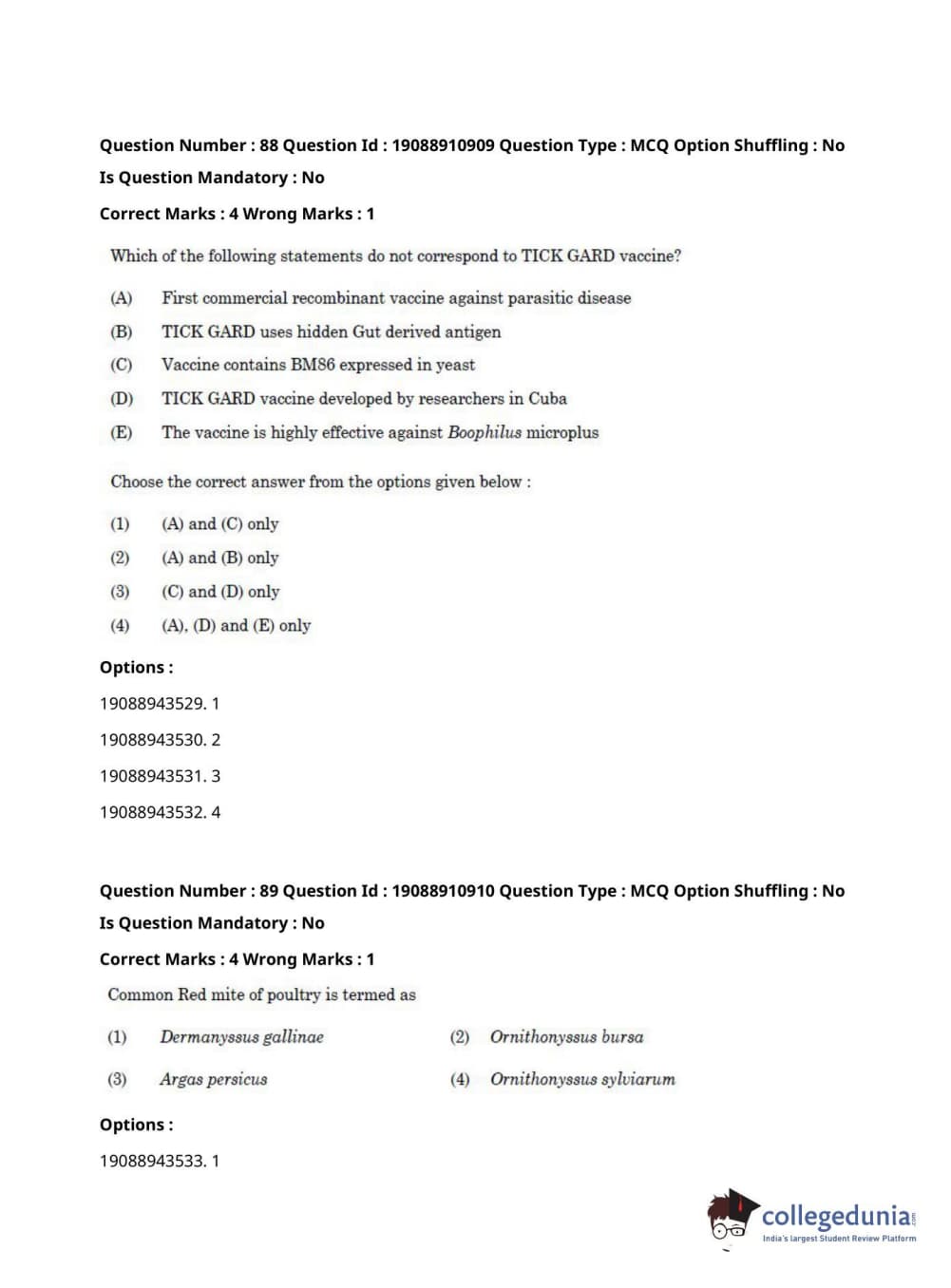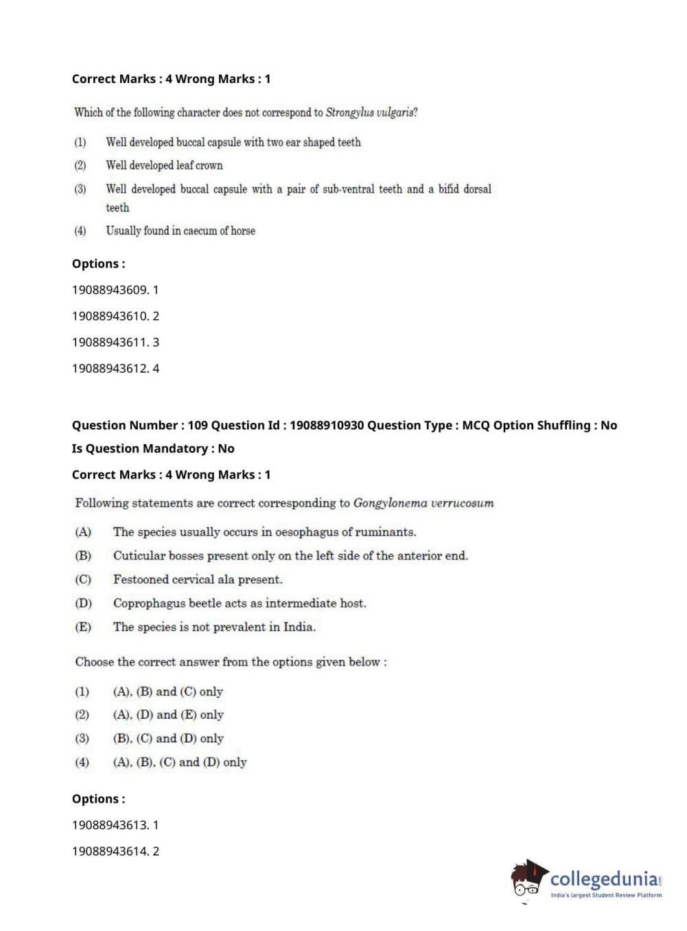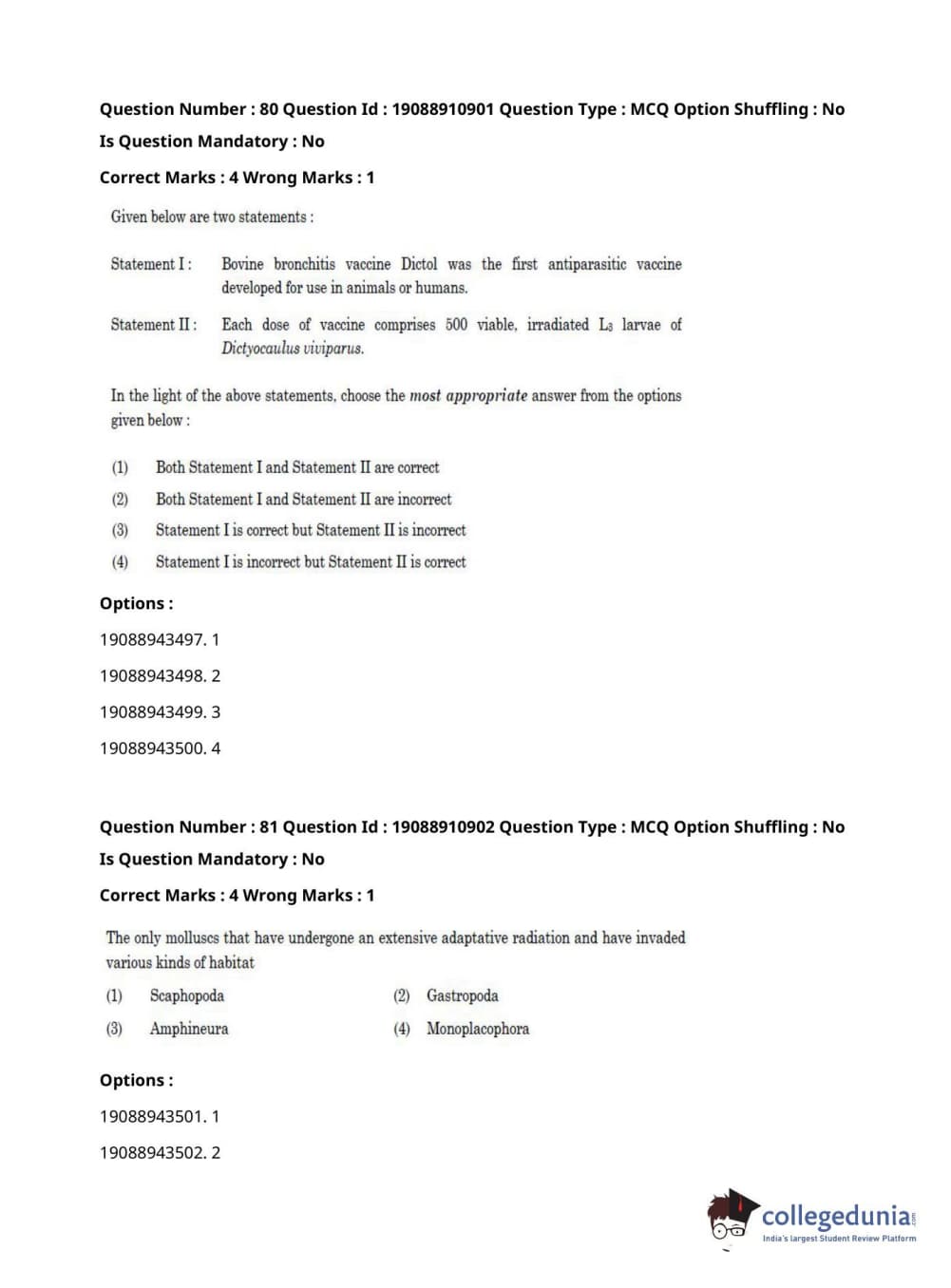 ICAR AIEEA 2021 JRF - VETERINARY PARASITOLOGY Question Paper with Answer Key PDFs Afternoon Session