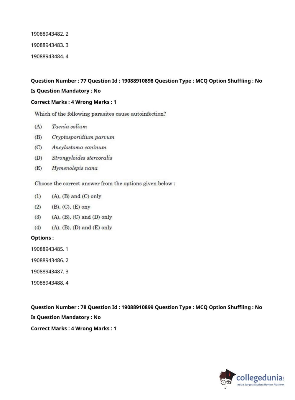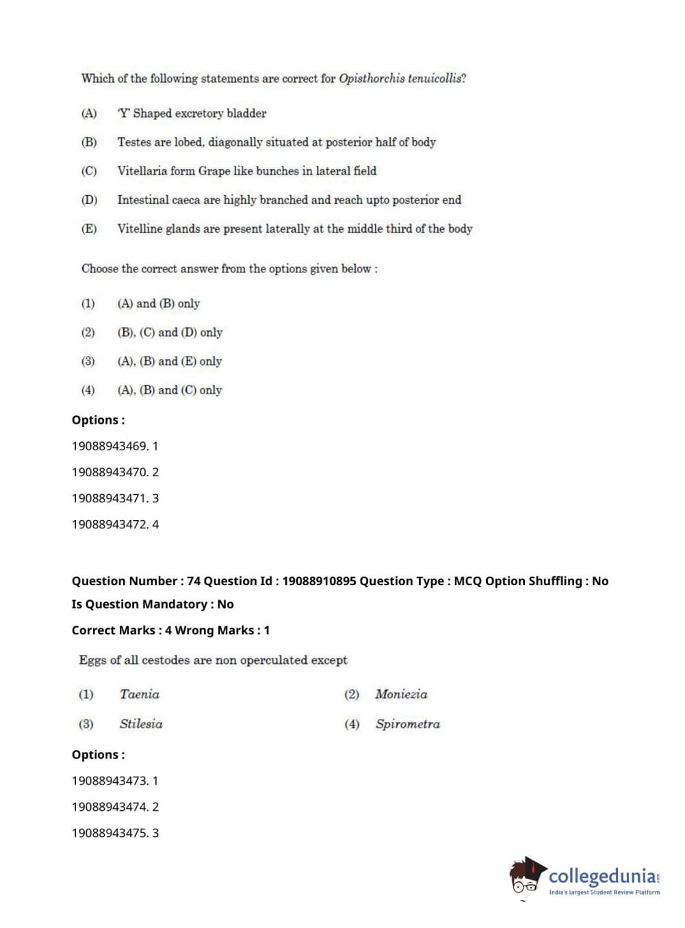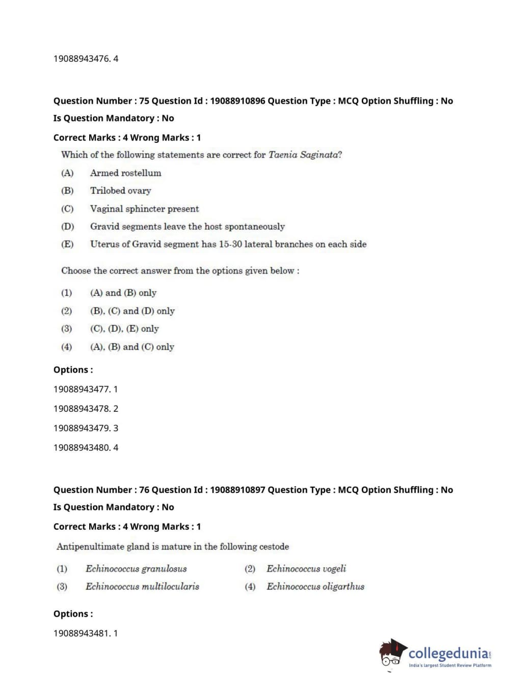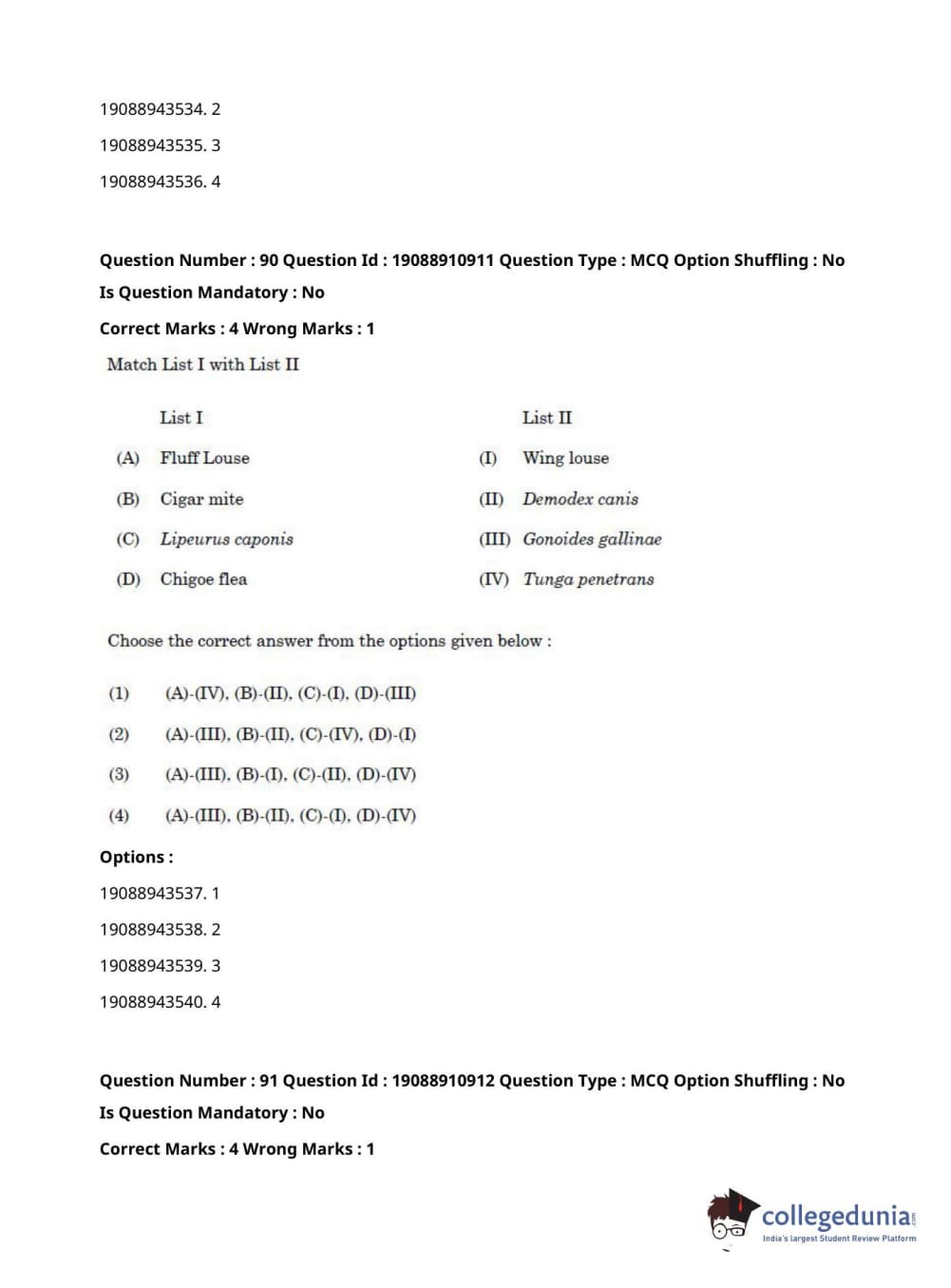 ICAR AIEEA 2021 JRF - VETERINARY PARASITOLOGY Question Paper with Answer Key PDFs Afternoon Session