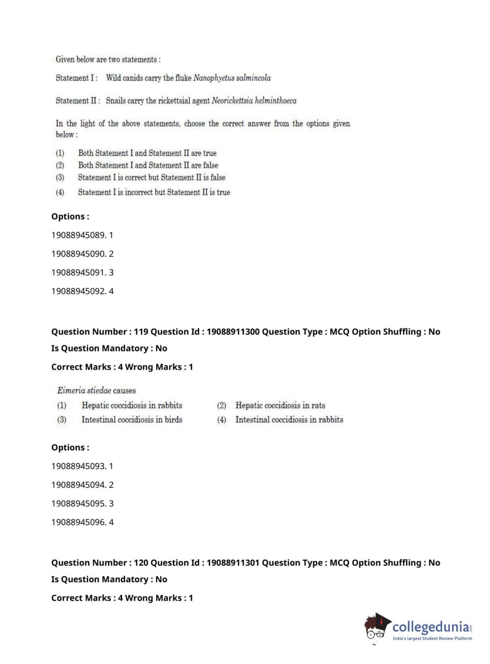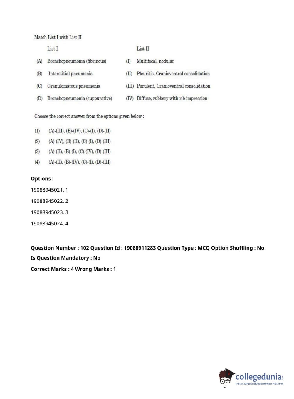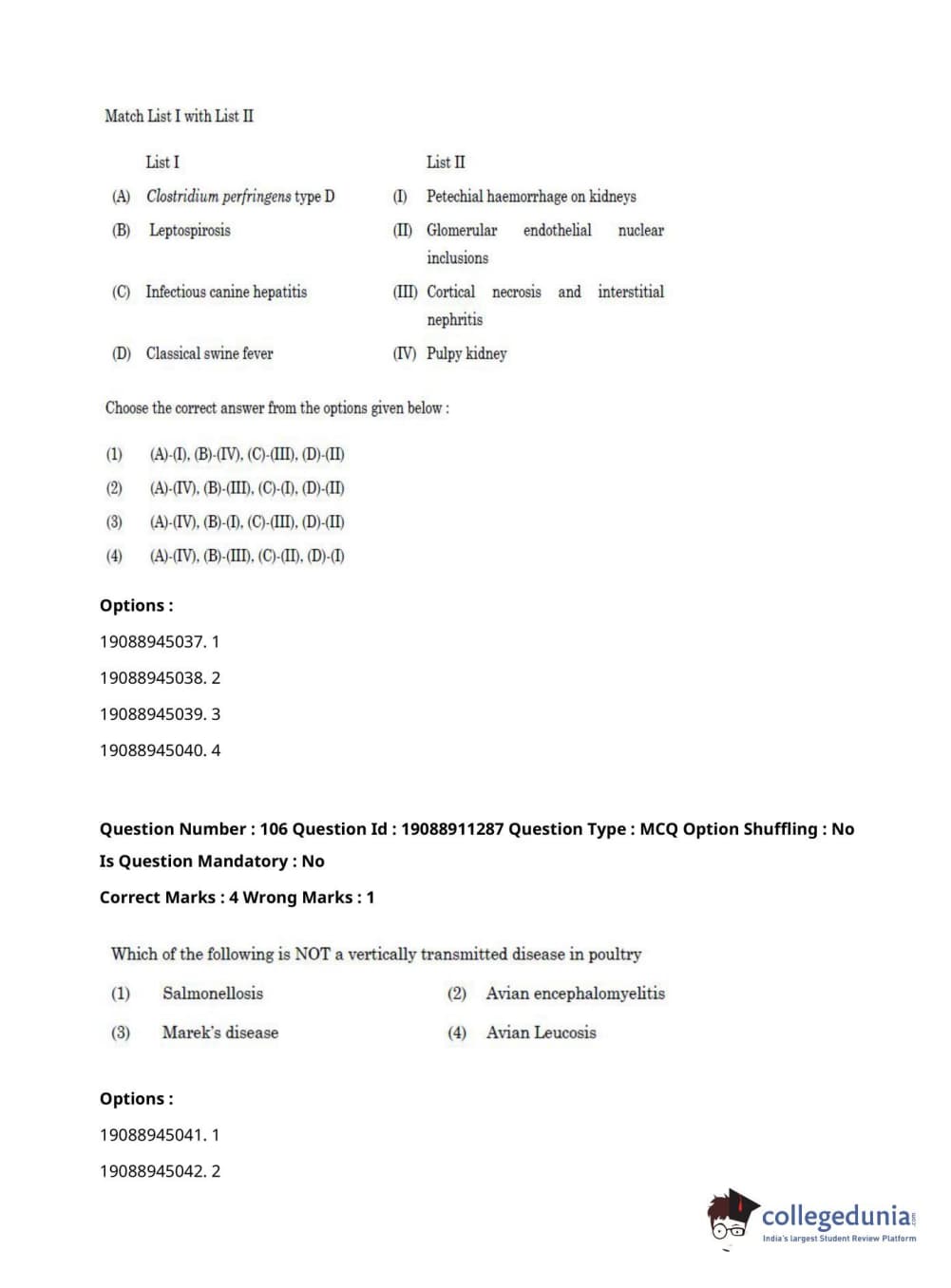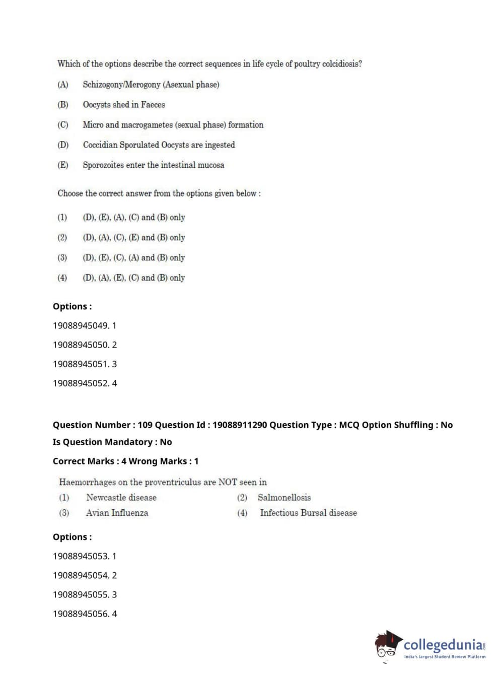 ICAR AIEEA 2021 JRF - VETERINARY PATHOLOGY Question Paper with Answer Key PDFs Afternoon Session