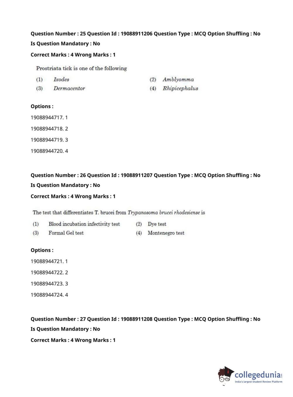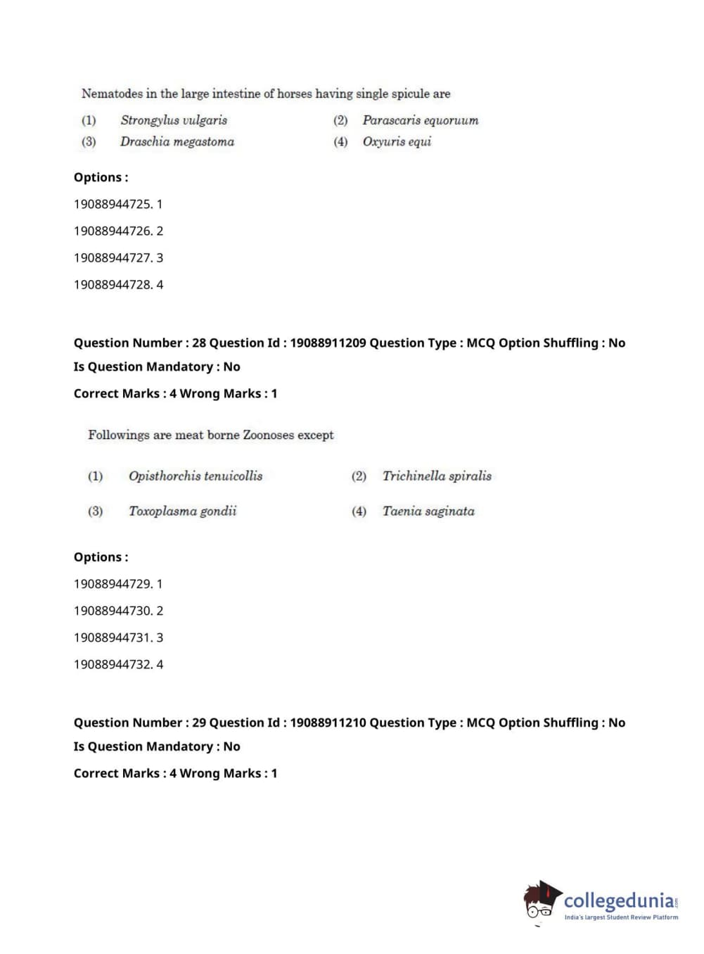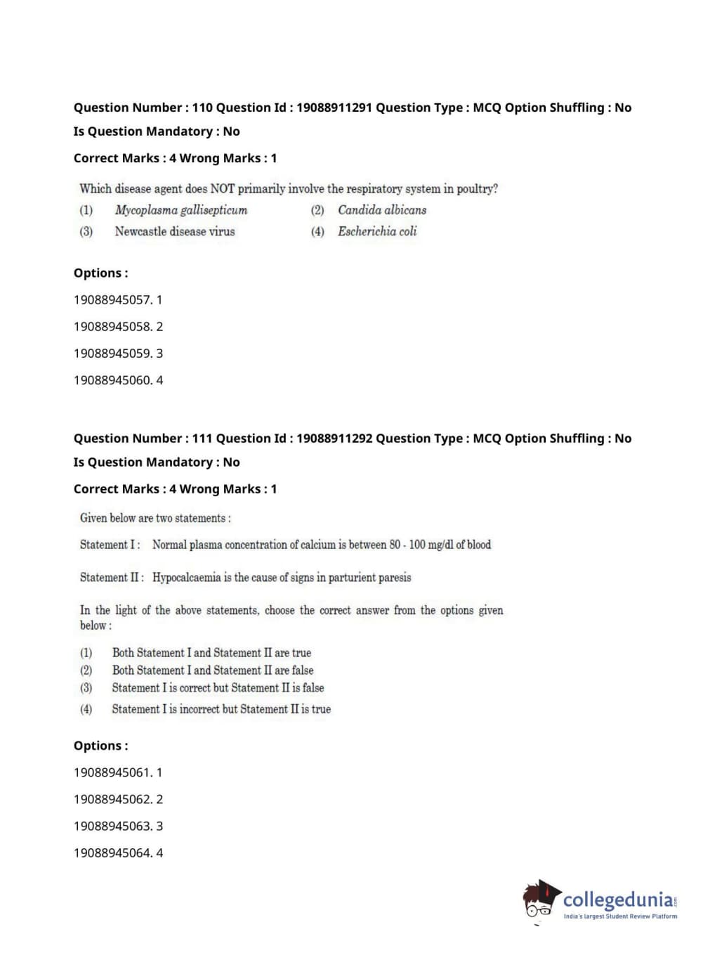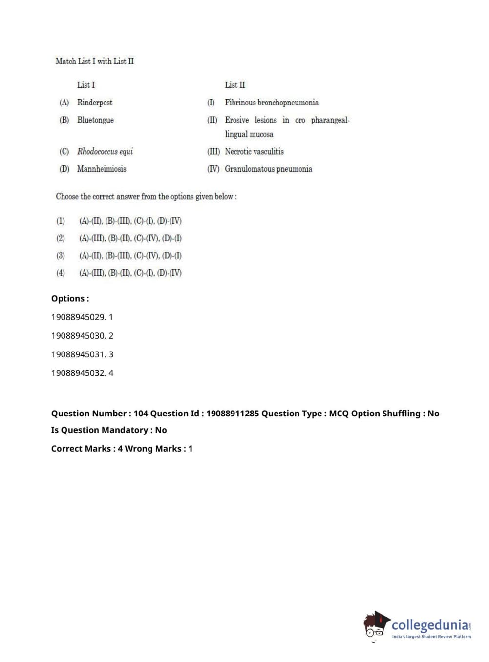 ICAR AIEEA 2021 JRF - VETERINARY PATHOLOGY Question Paper with Answer Key PDFs Afternoon Session