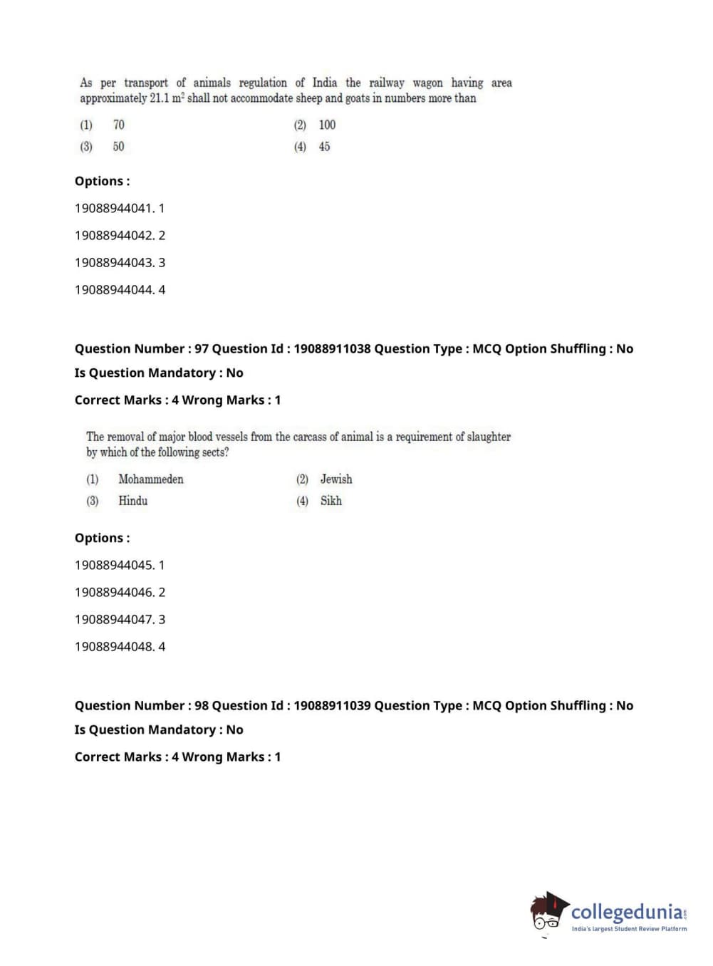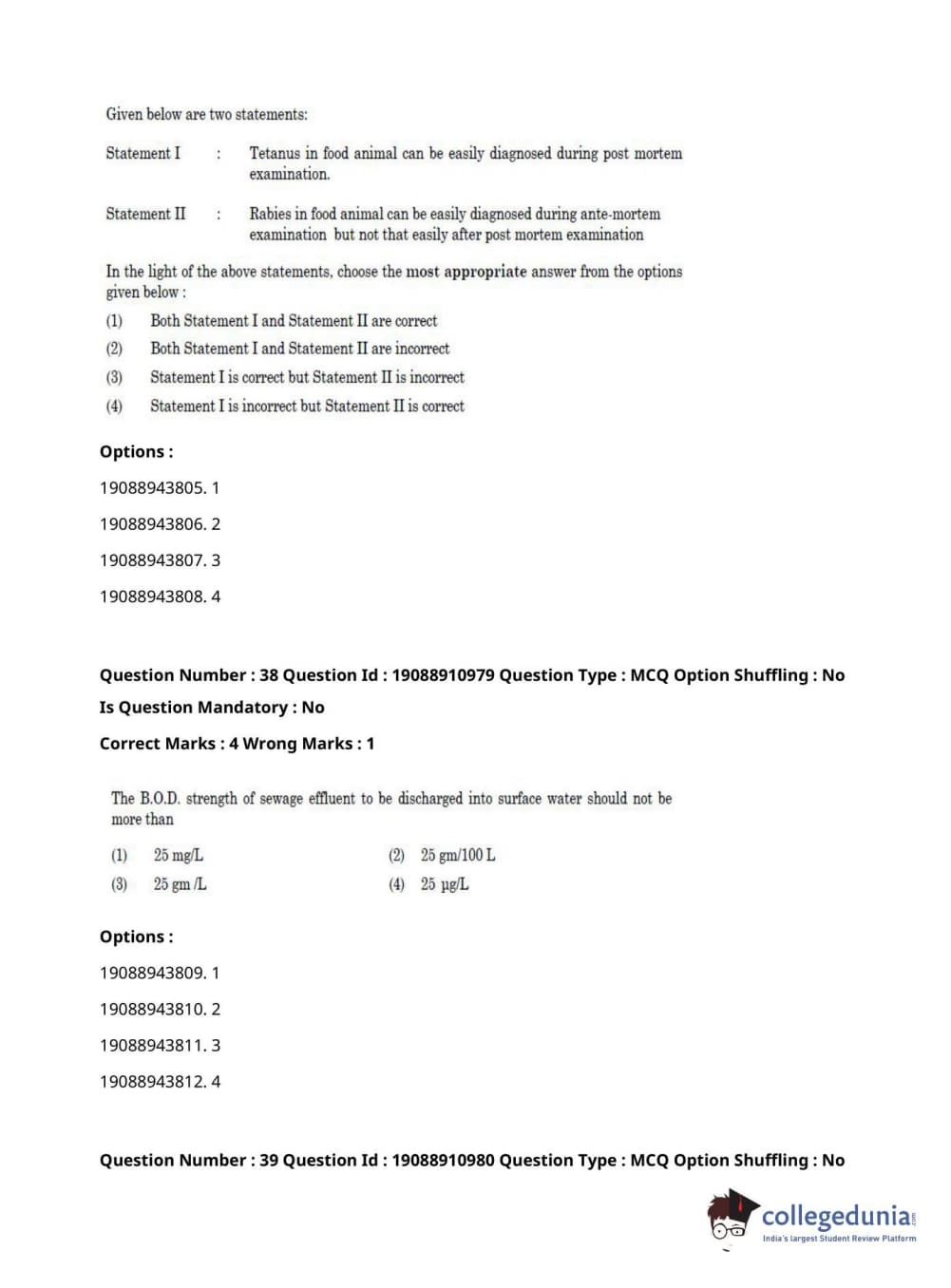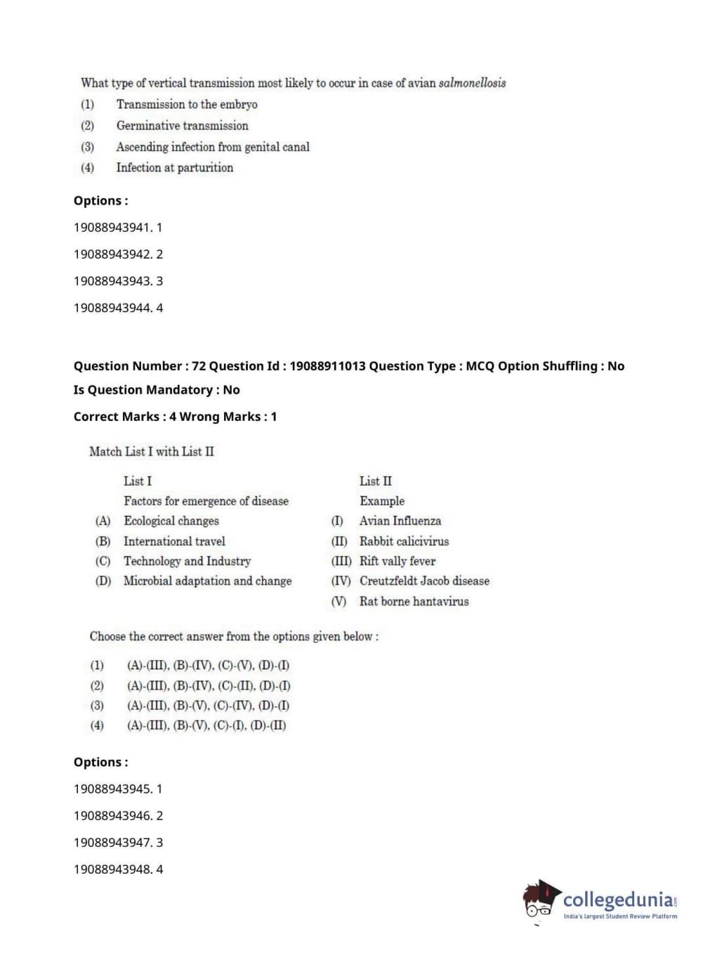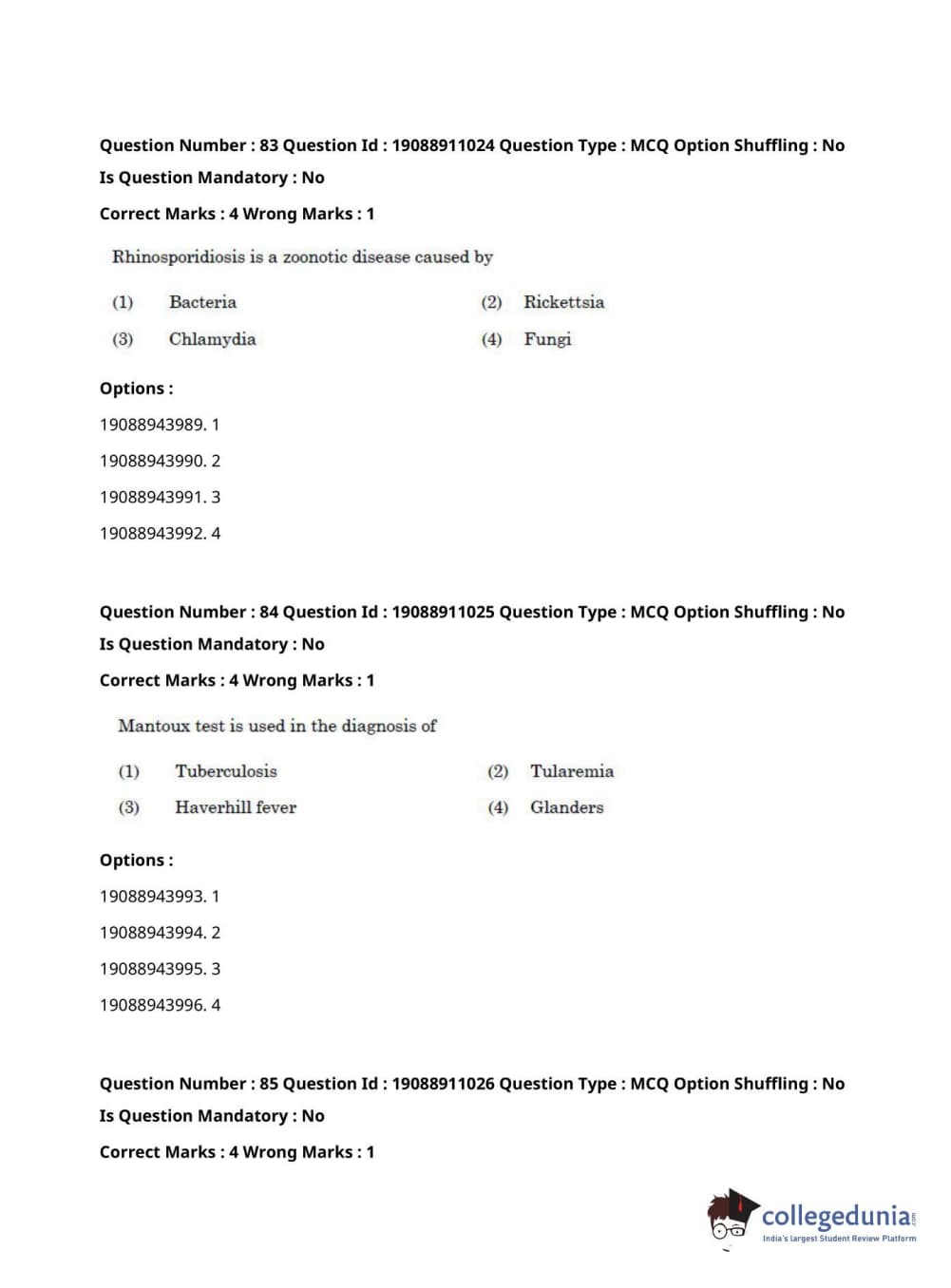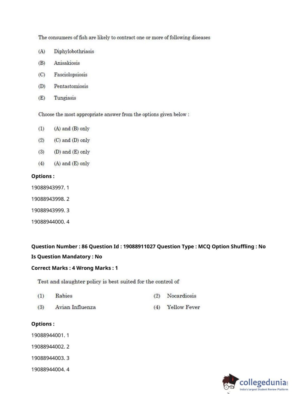 ICAR AIEEA 2021 JRF - VETERINARY PUBLIC HEALTH AND EPIDEMIOLOGY Question Paper with Answer Key PDFs Afternoon Session