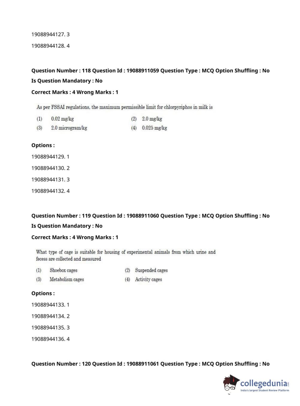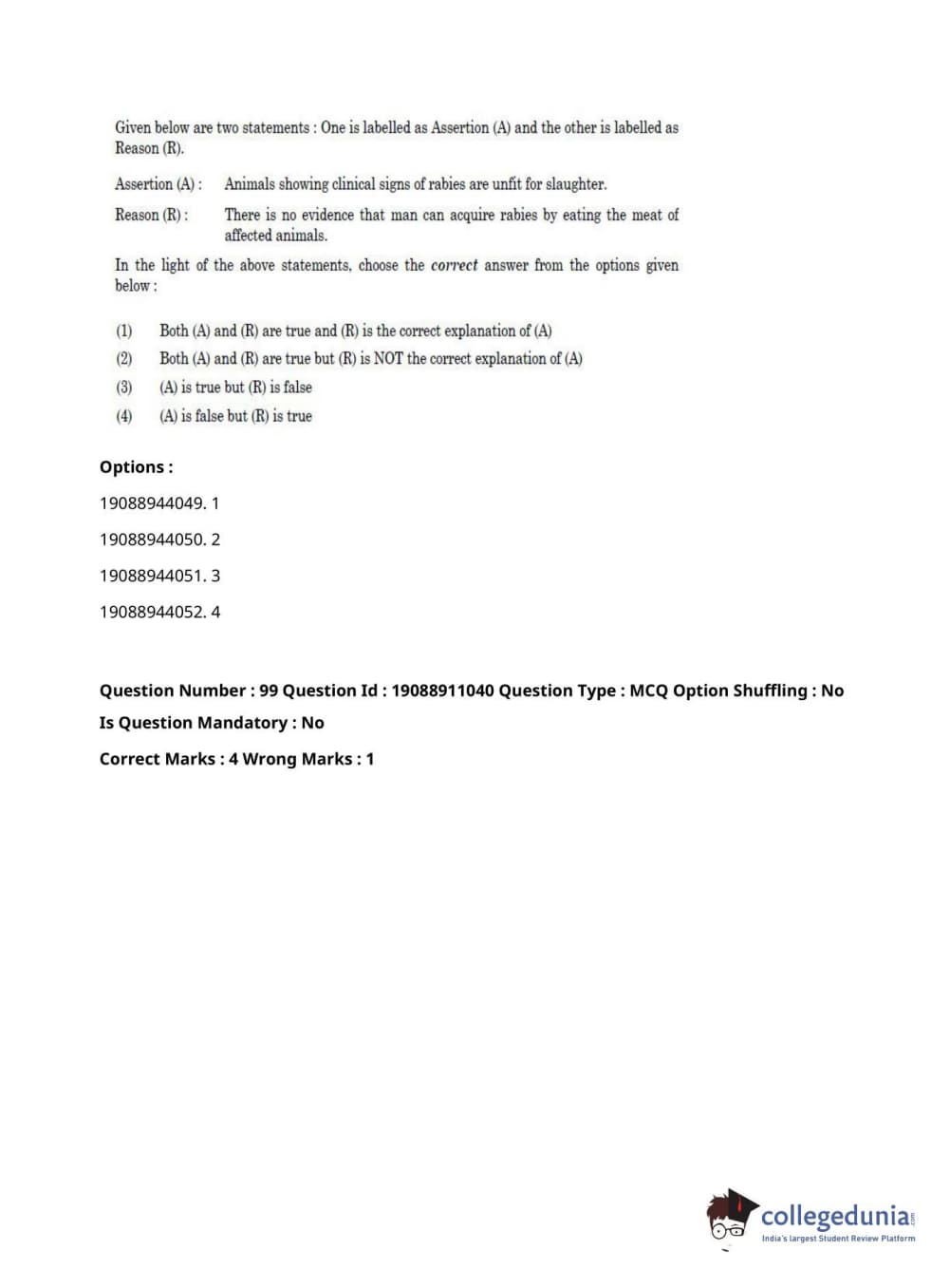 ICAR AIEEA 2021 JRF - VETERINARY PUBLIC HEALTH AND EPIDEMIOLOGY Question paper with answer key pdf conducted on September 17, 2021 in Afternoon Session is available for download. The exam was successfully organized by National Testing Agency (NTA). The question paper comprised a total of 120 questions.