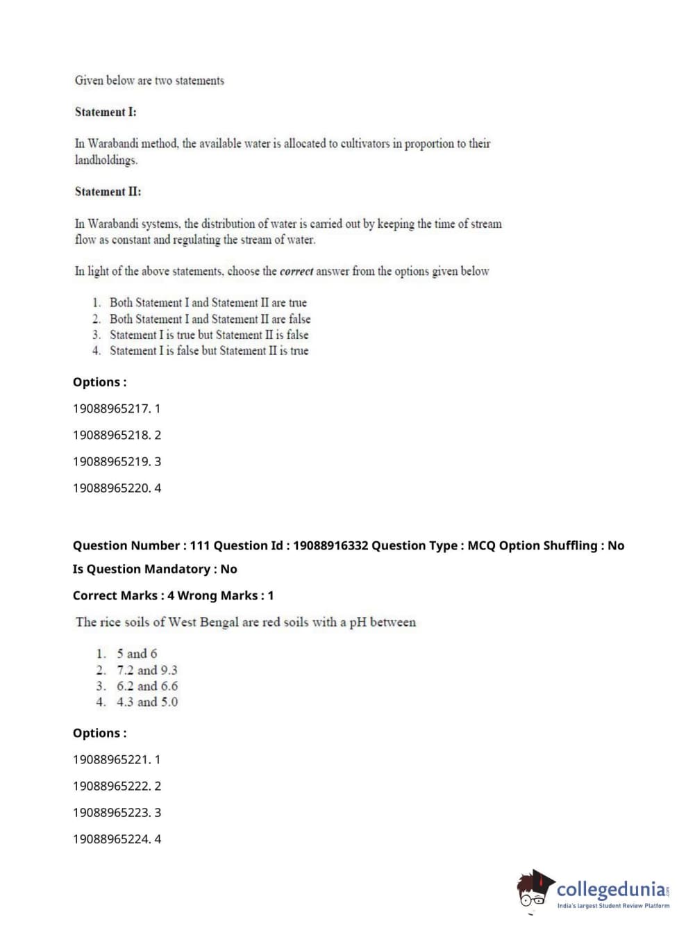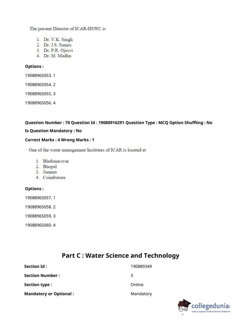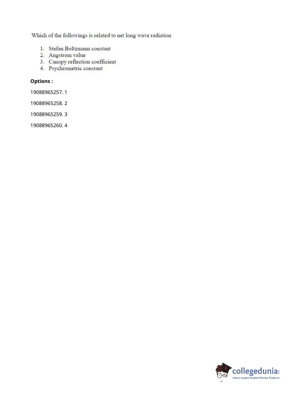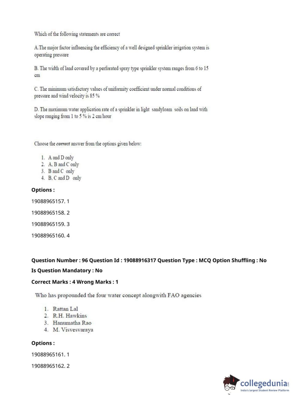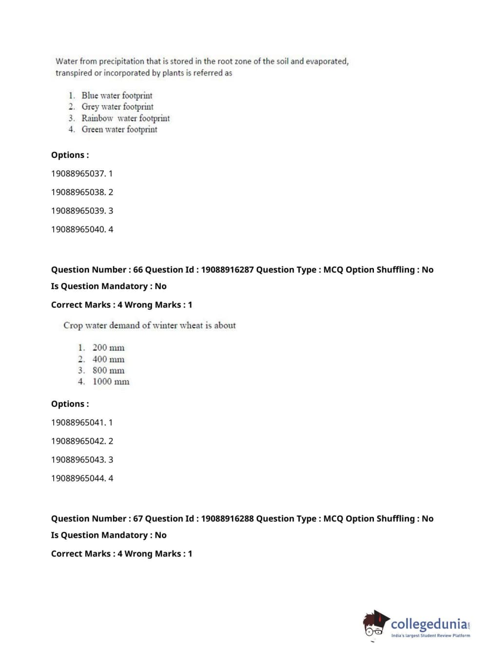 ICAR AIEEA 2021 JRF - WATER SCIENCE AND TECHNOLOGY Question Paper with Answer Key PDFs Afternoon Session
