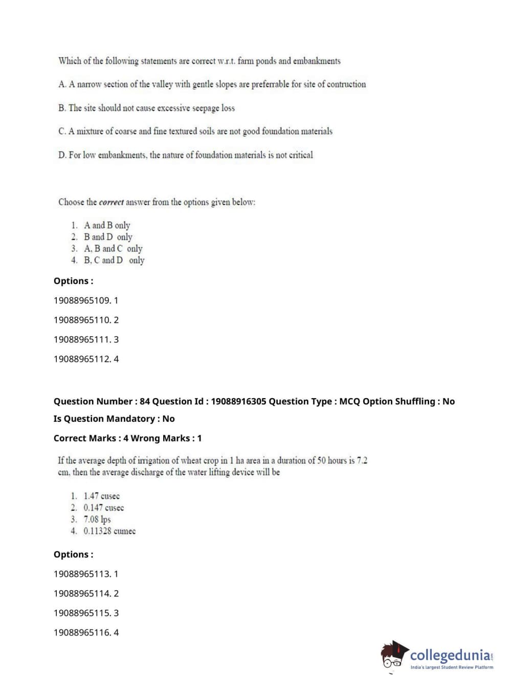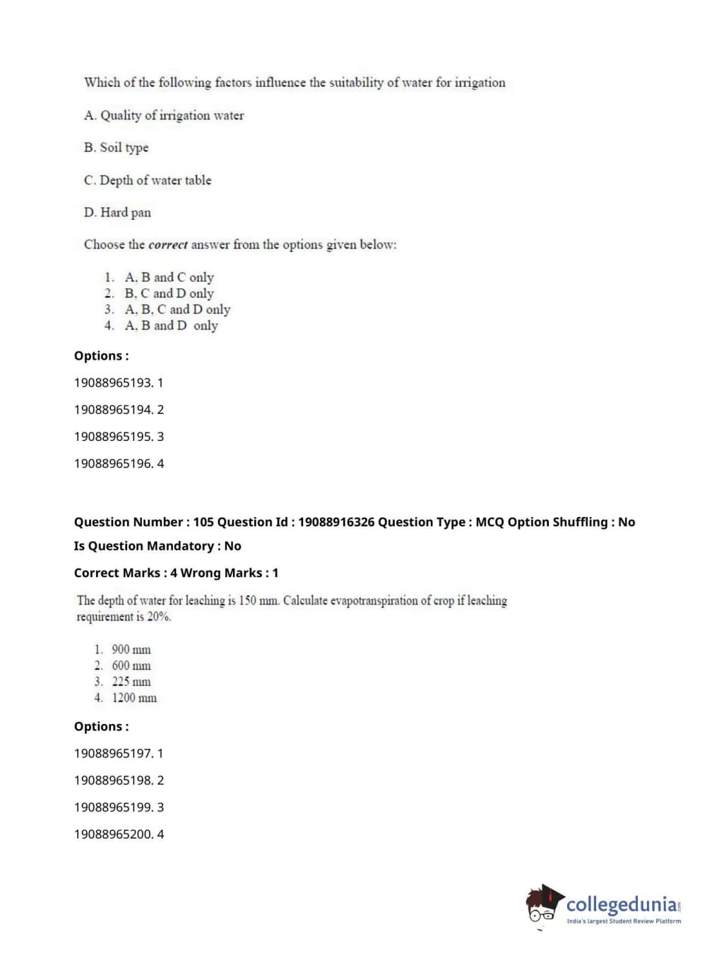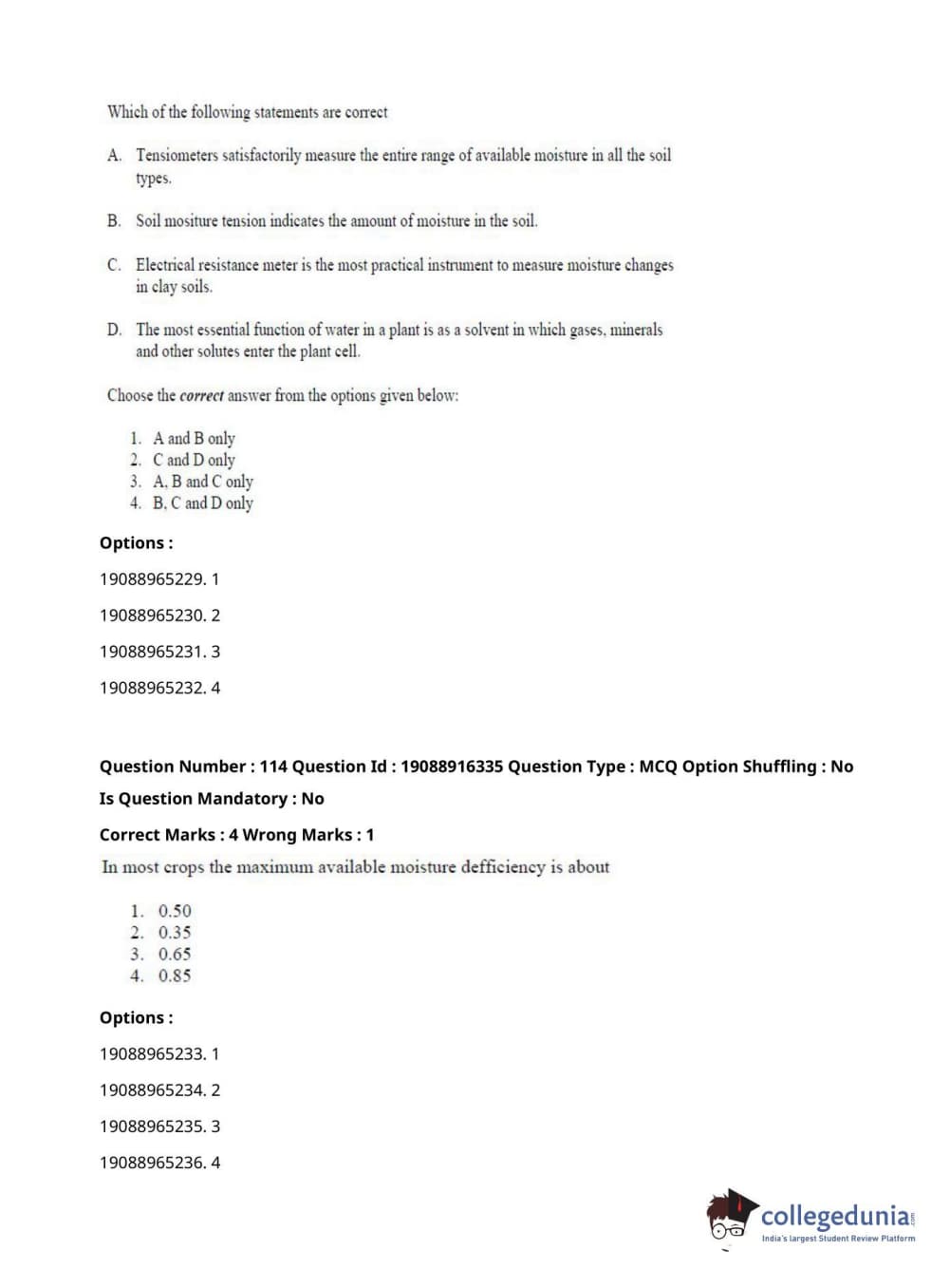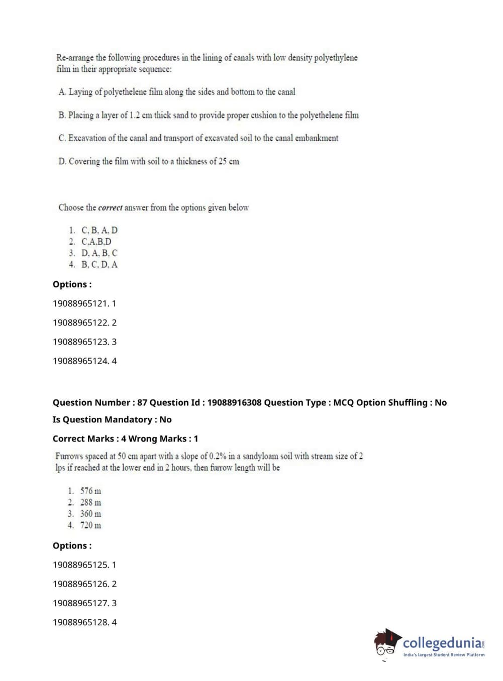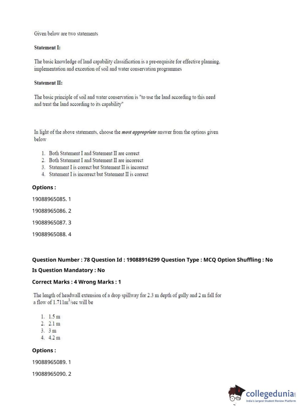 ICAR AIEEA 2021 JRF - WATER SCIENCE AND TECHNOLOGY Question Paper with Answer Key PDFs Afternoon Session