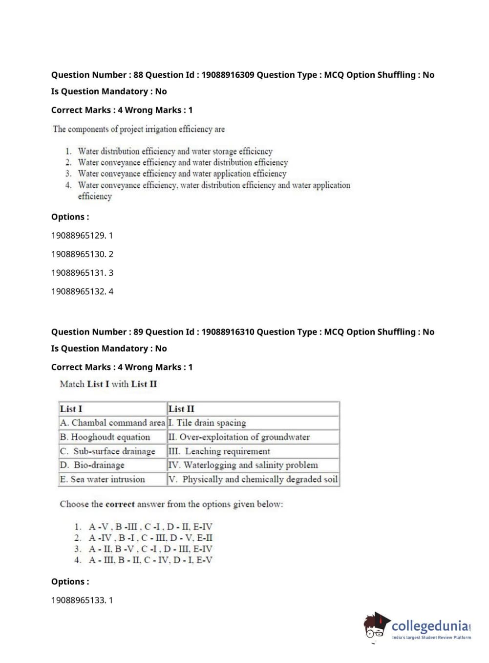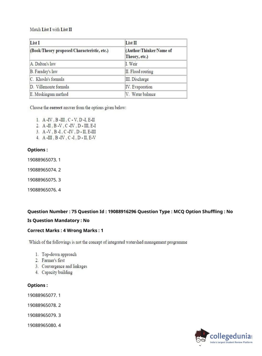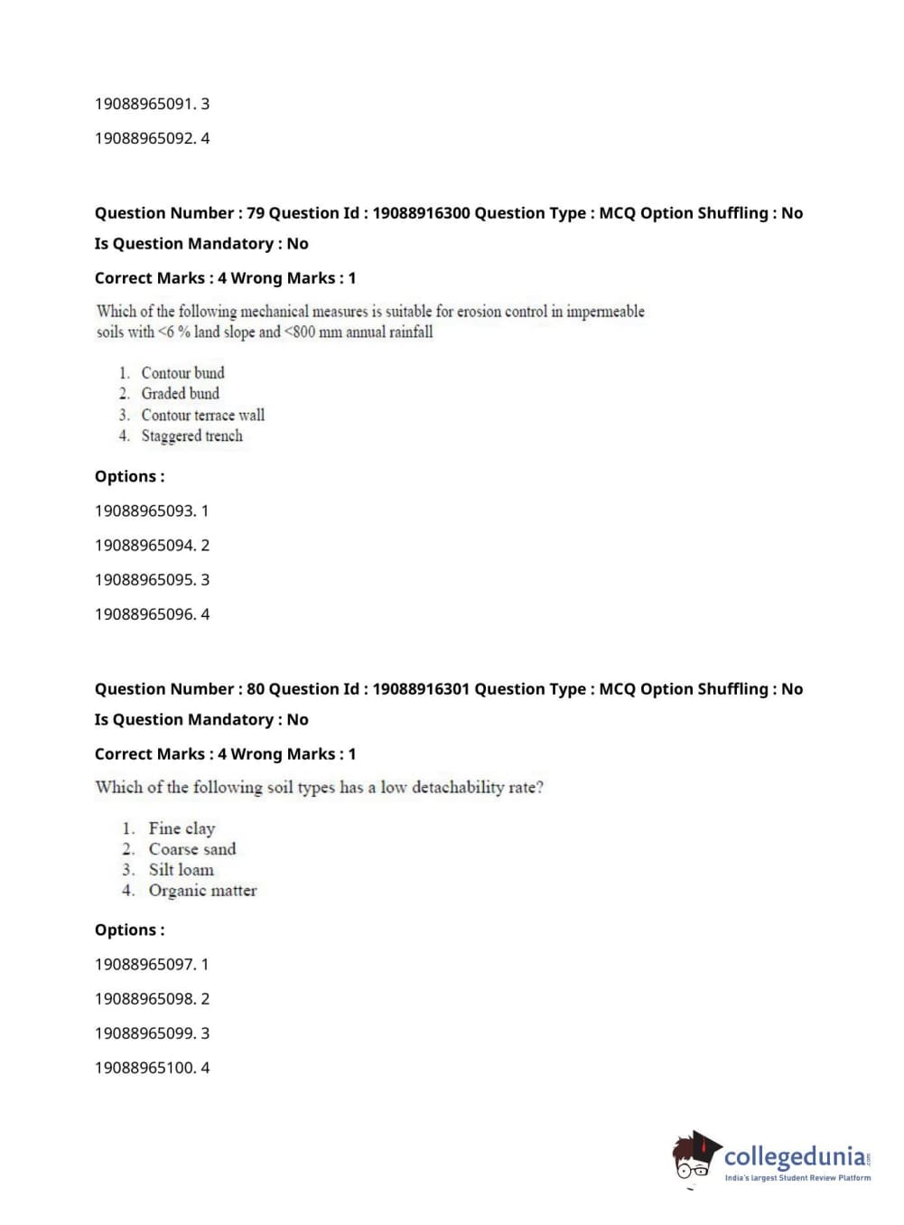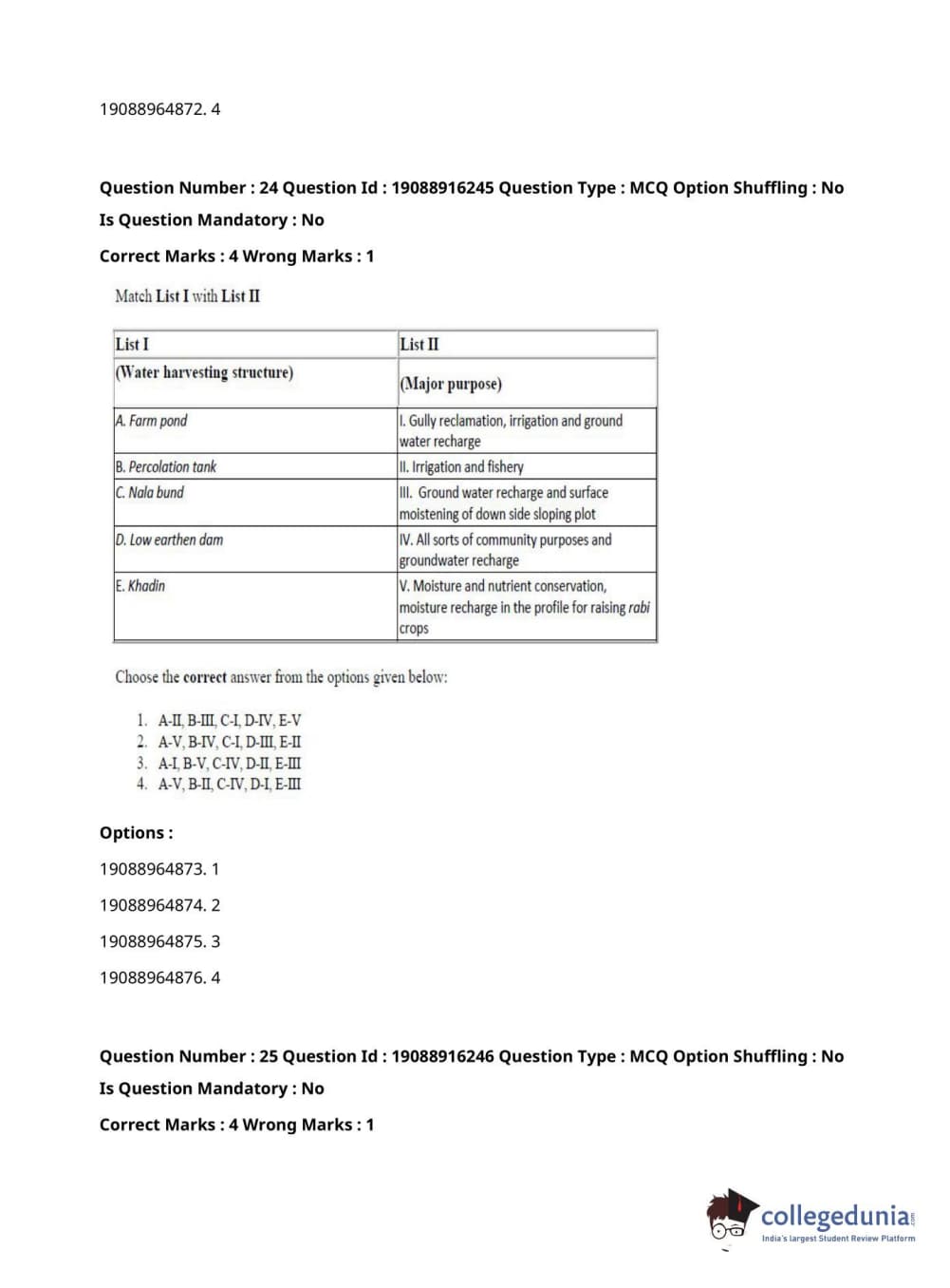 ICAR AIEEA 2021 JRF - WATER SCIENCE AND TECHNOLOGY Question Paper with Answer Key PDFs Afternoon Session