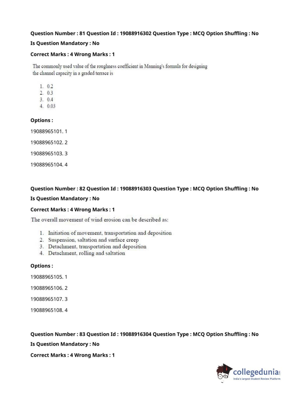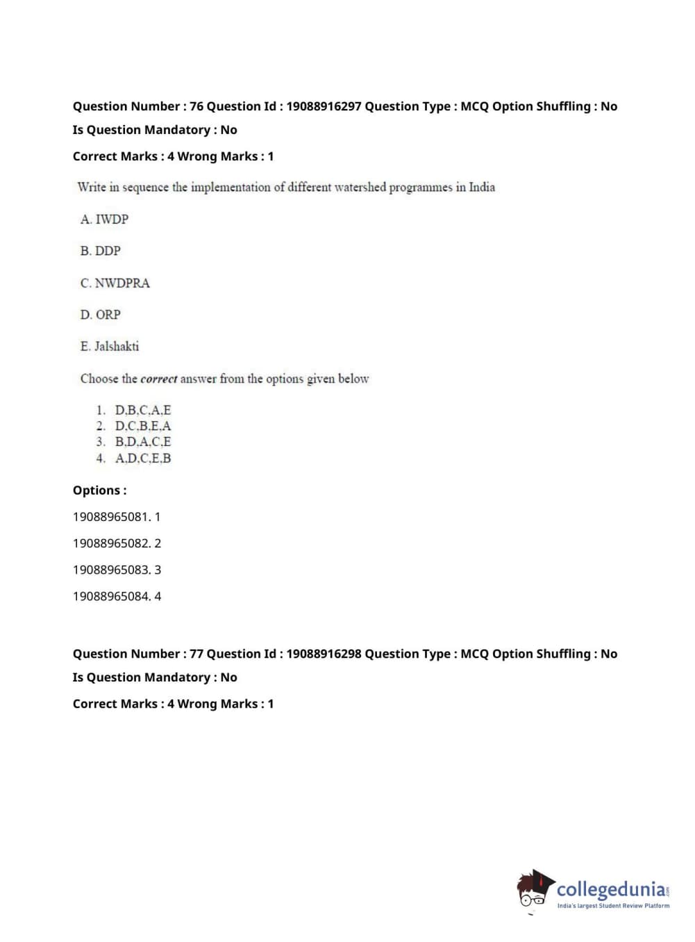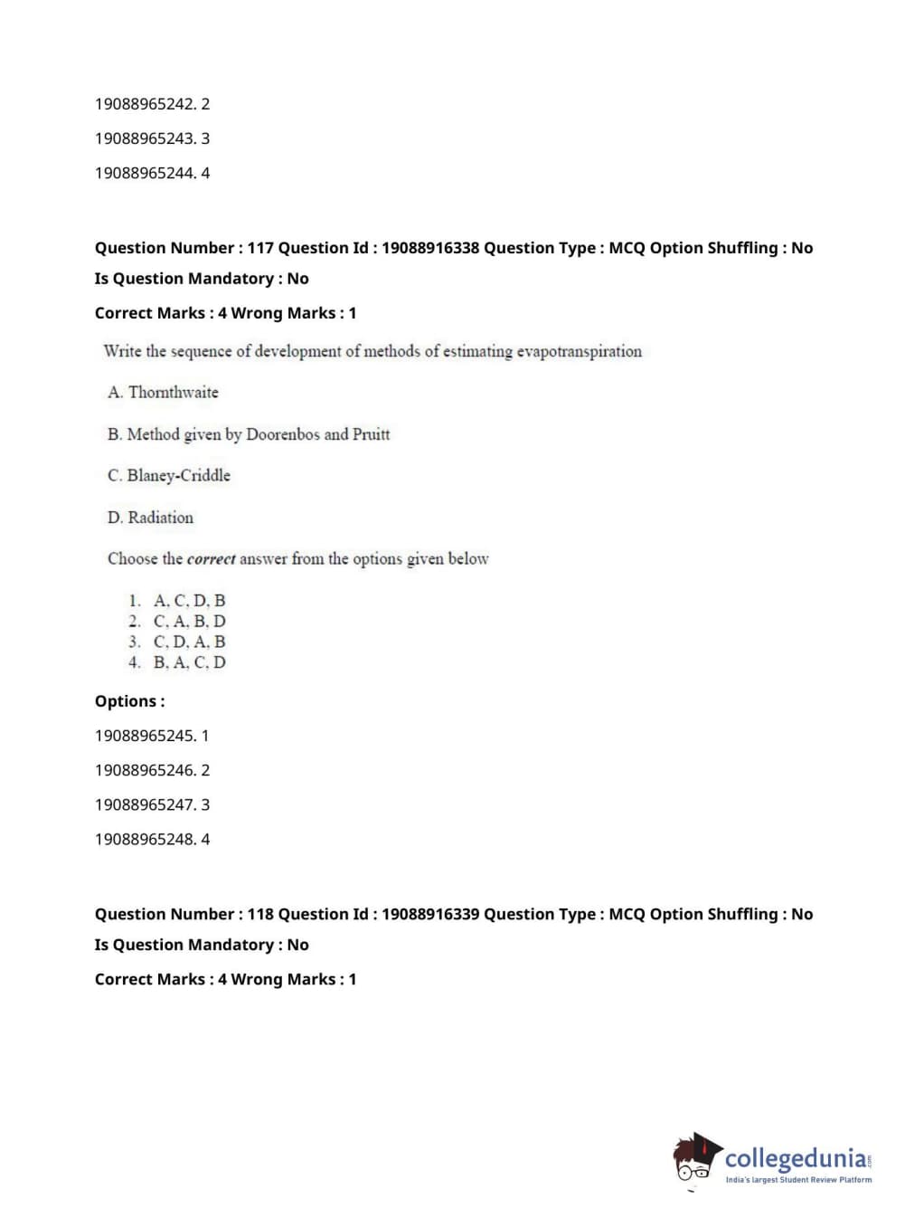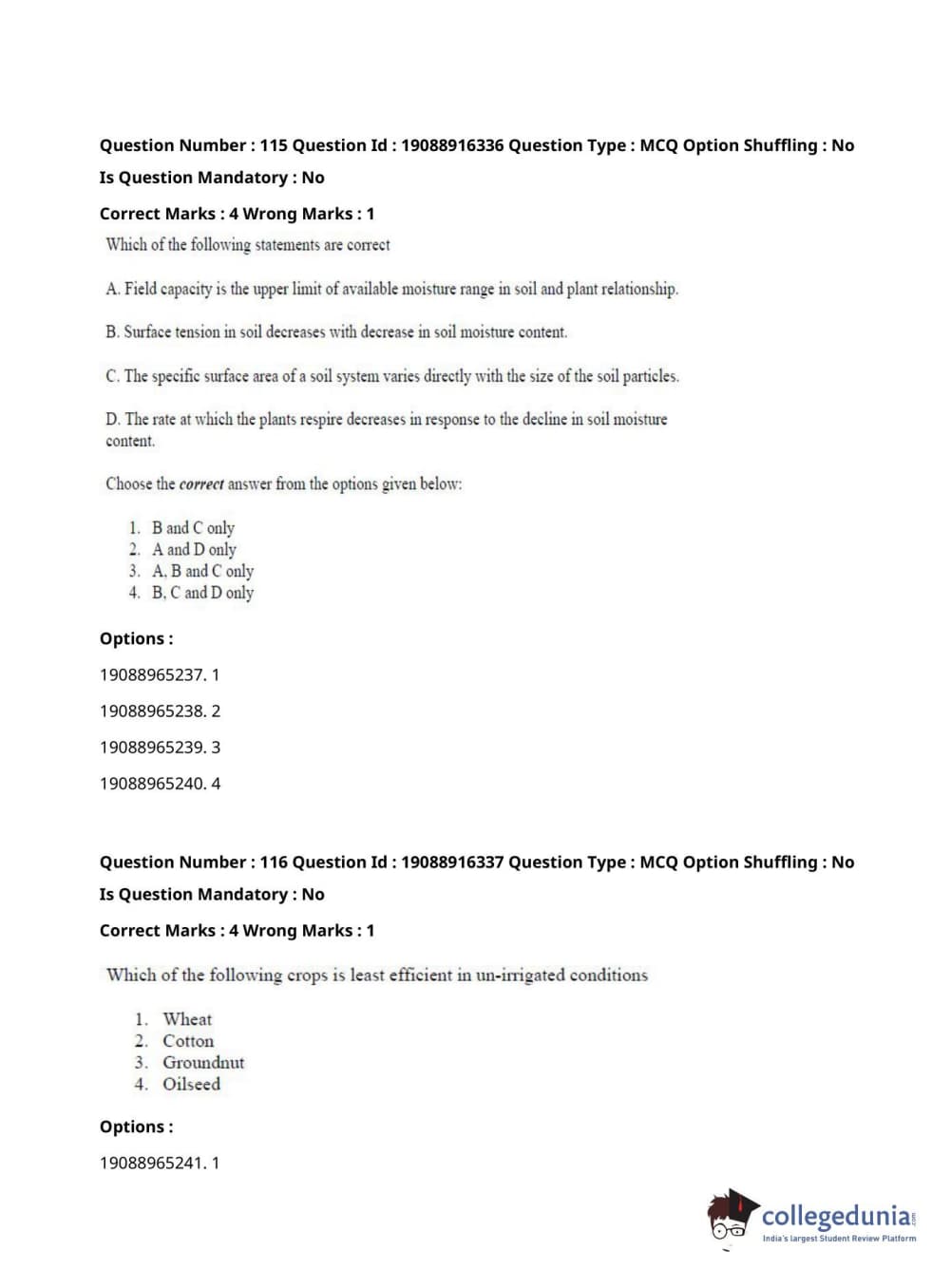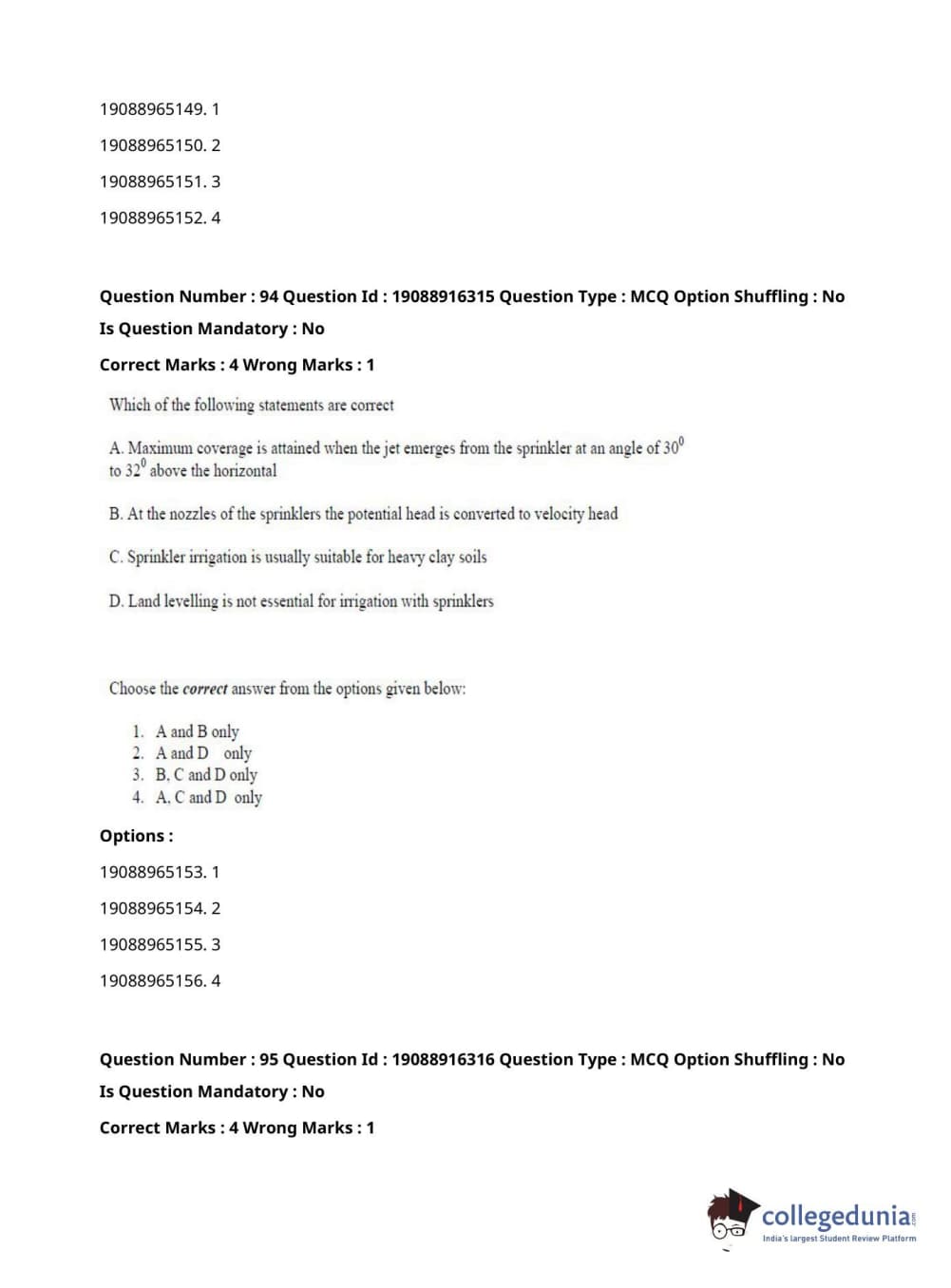 ICAR AIEEA 2021 JRF - WATER SCIENCE AND TECHNOLOGY Question Paper with Answer Key PDFs Afternoon Session