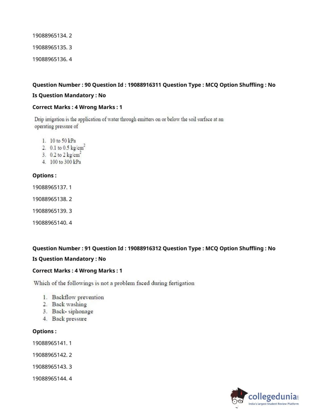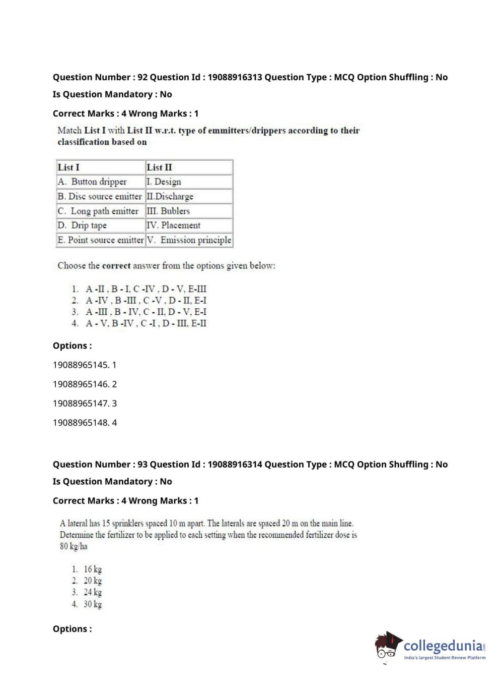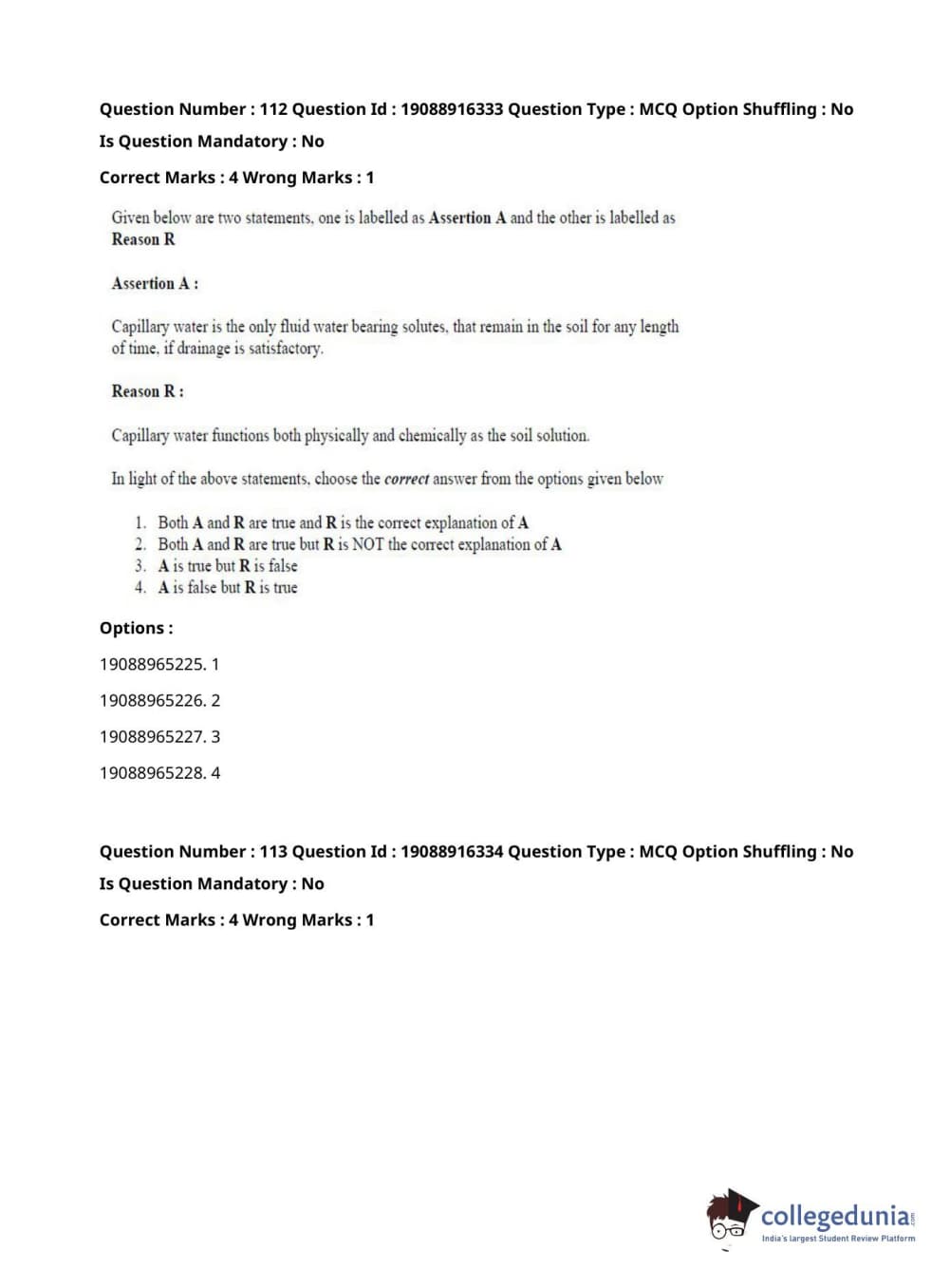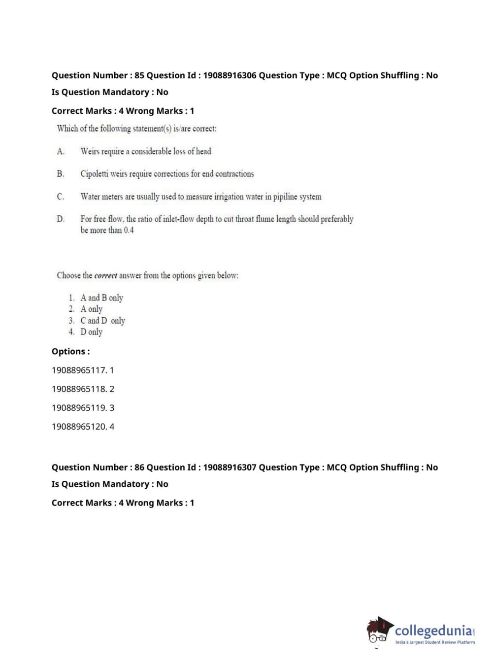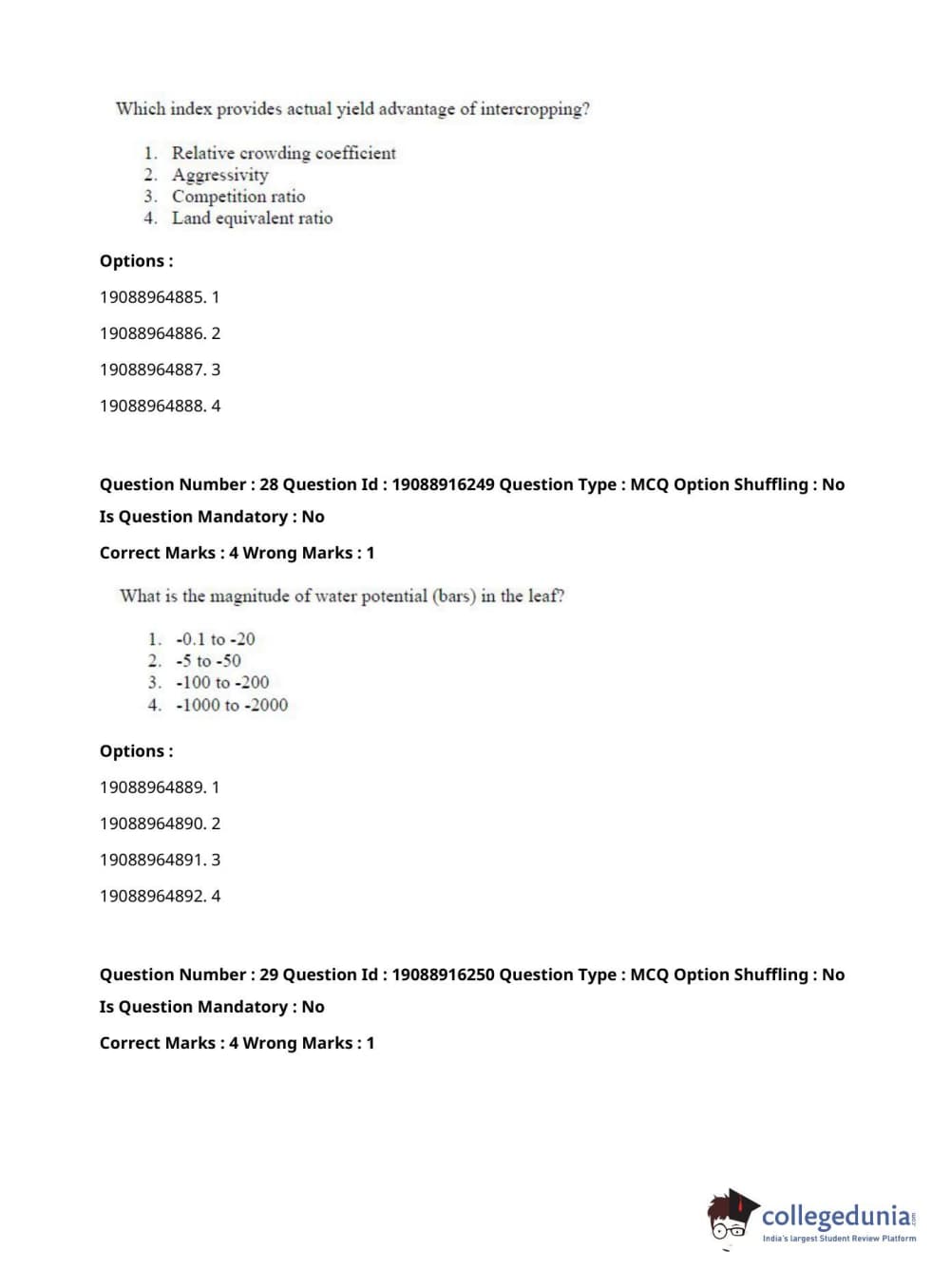 ICAR AIEEA 2021 JRF - WATER SCIENCE AND TECHNOLOGY Question Paper with Answer Key PDFs Afternoon Session