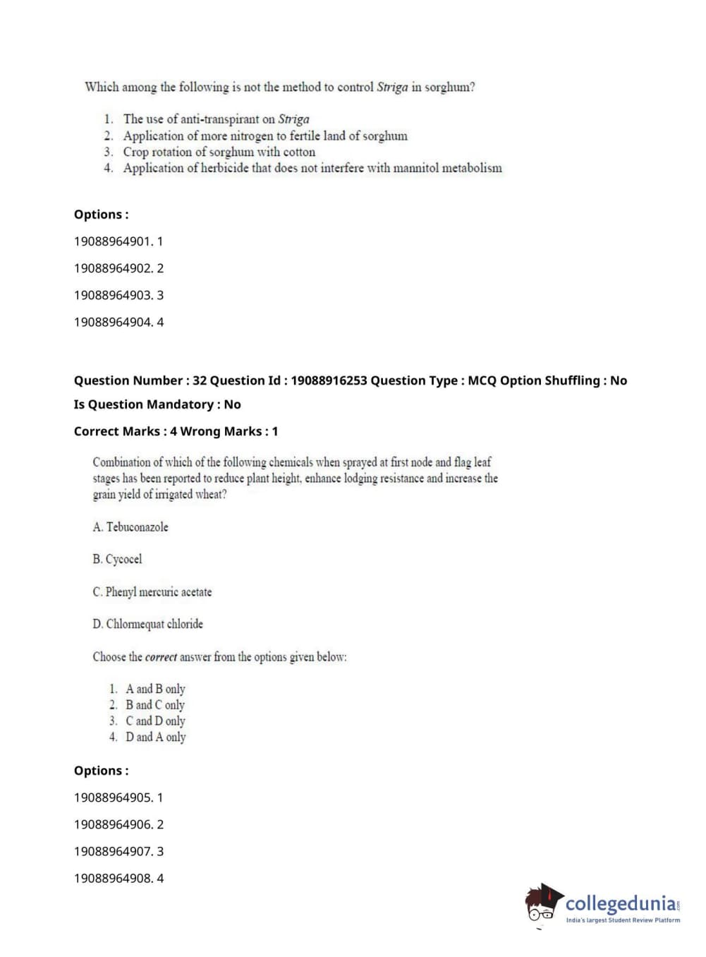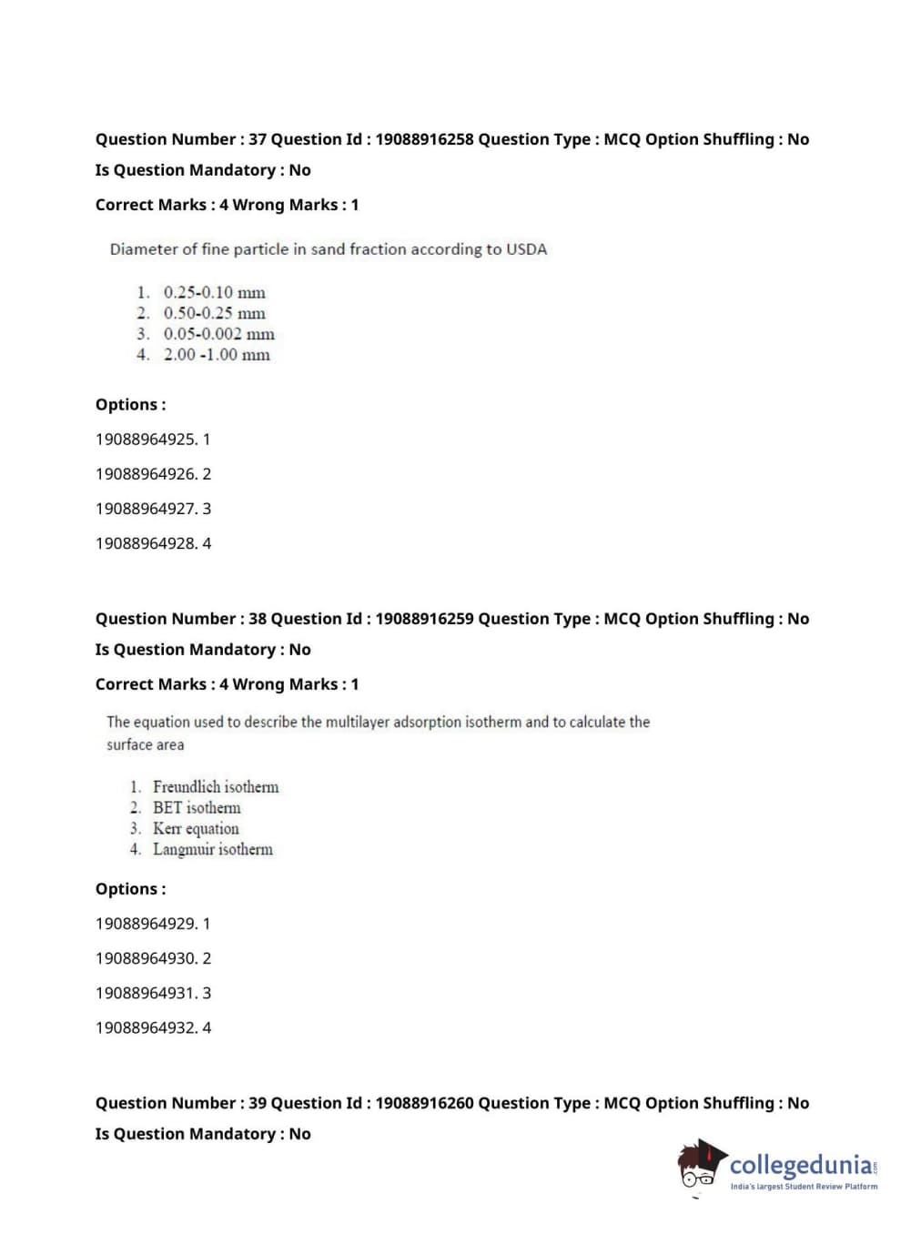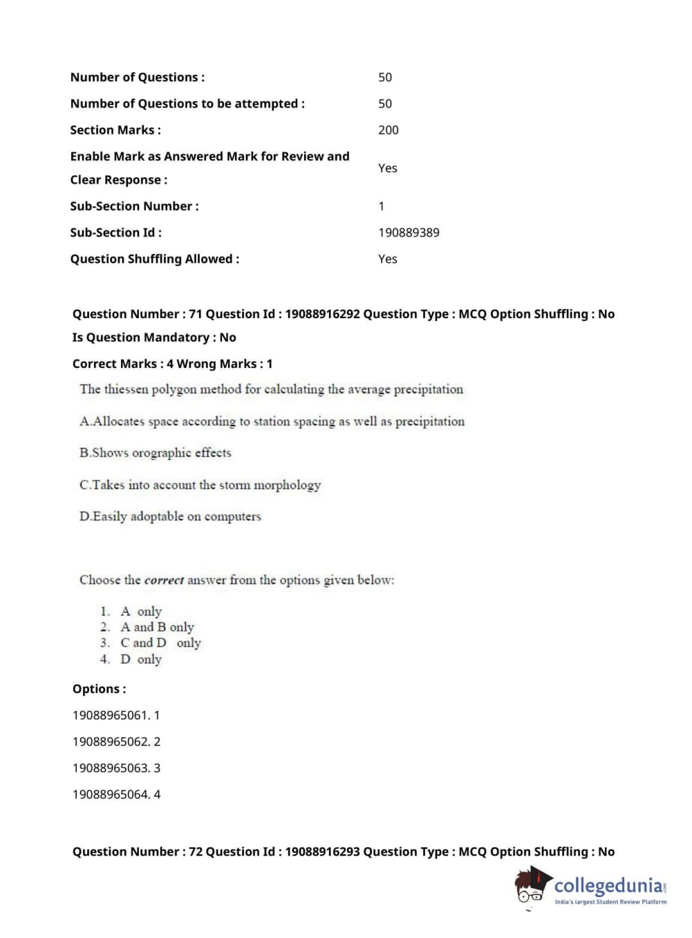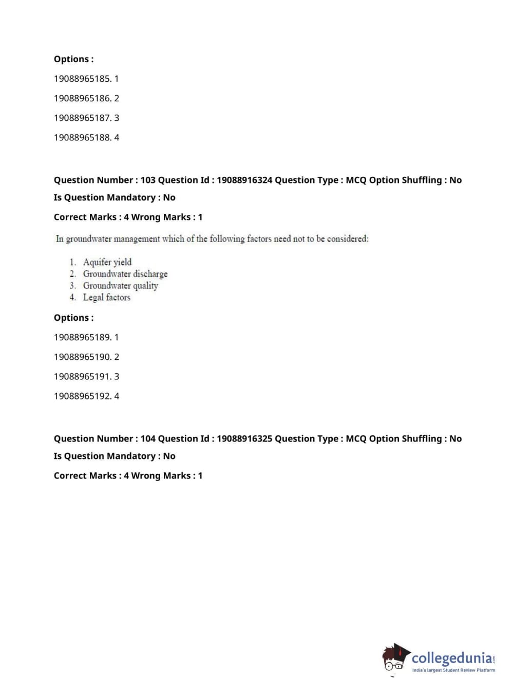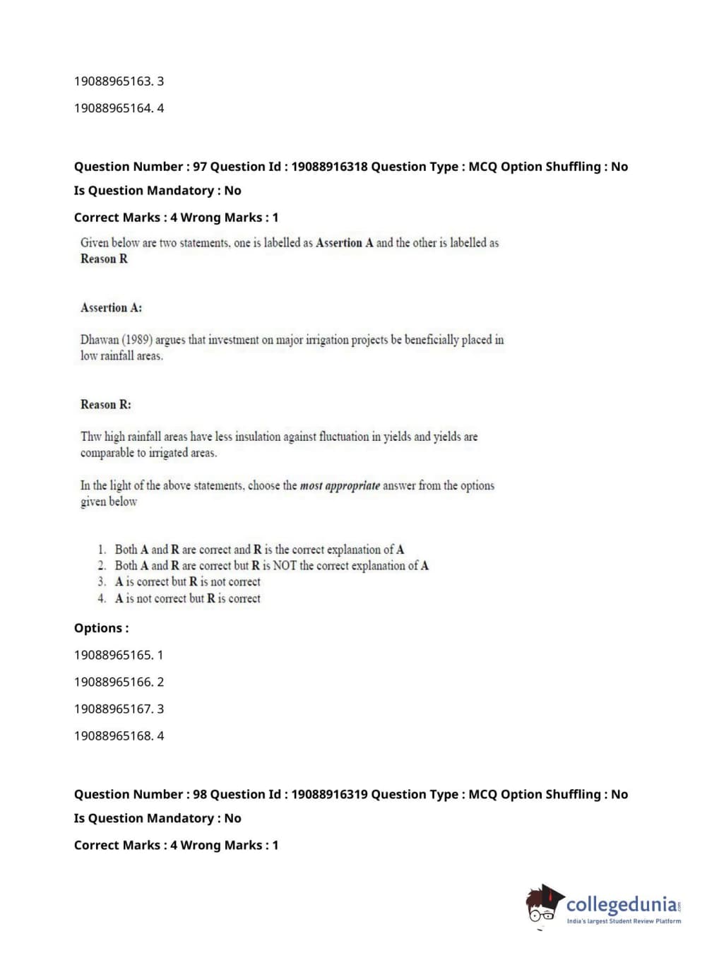 ICAR AIEEA 2021 JRF - WATER SCIENCE AND TECHNOLOGY Question Paper with Answer Key PDFs Afternoon Session