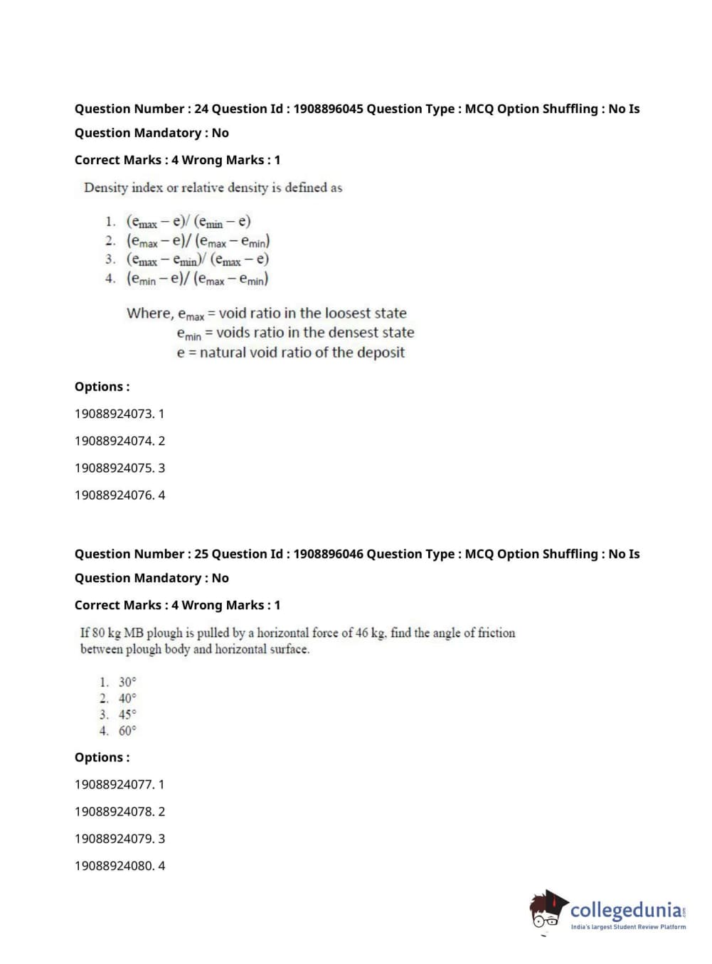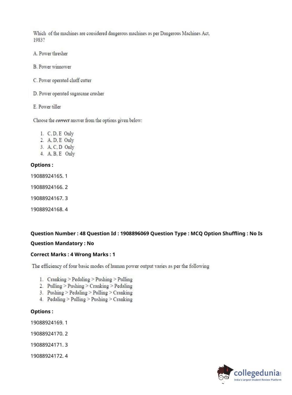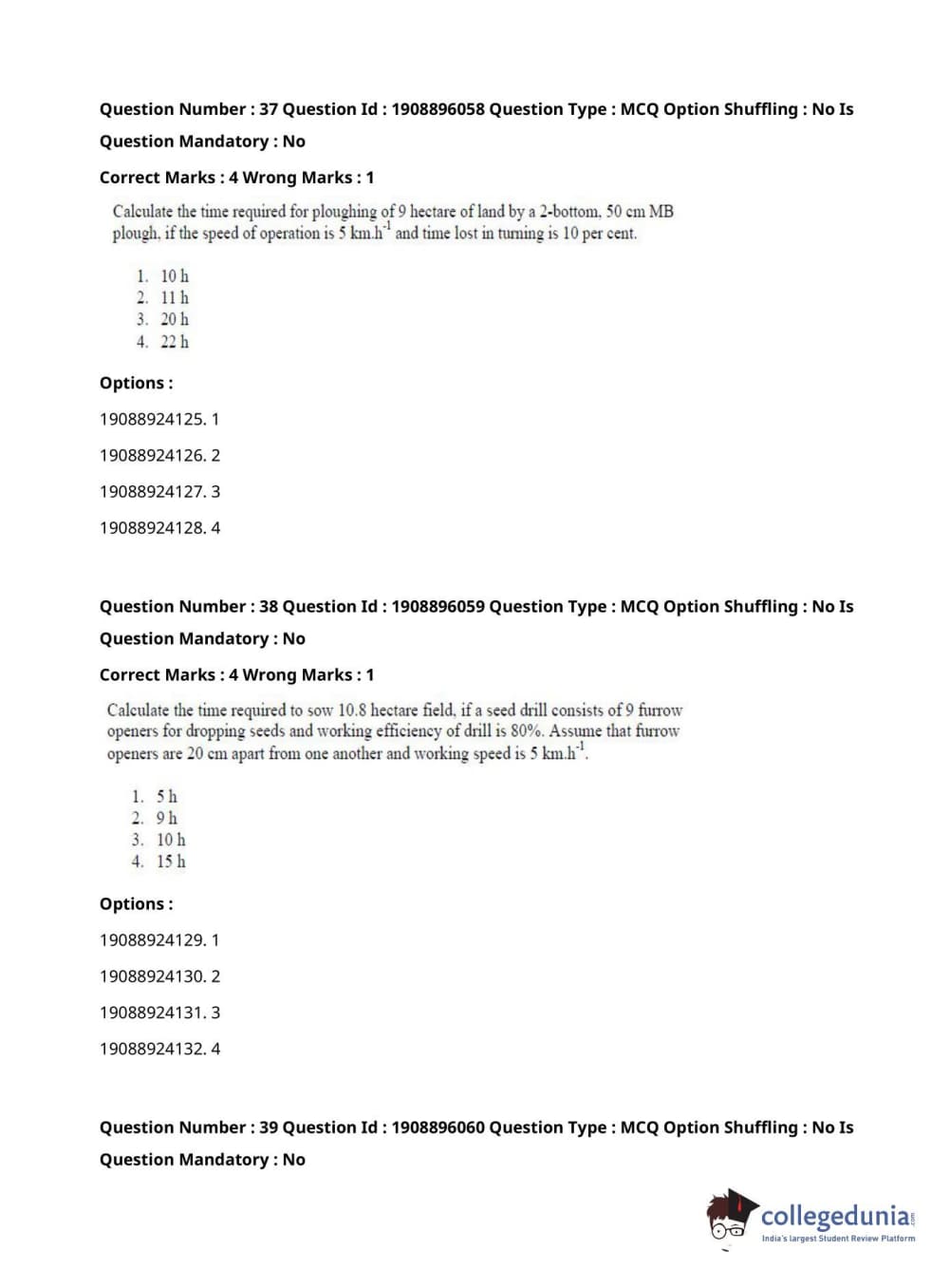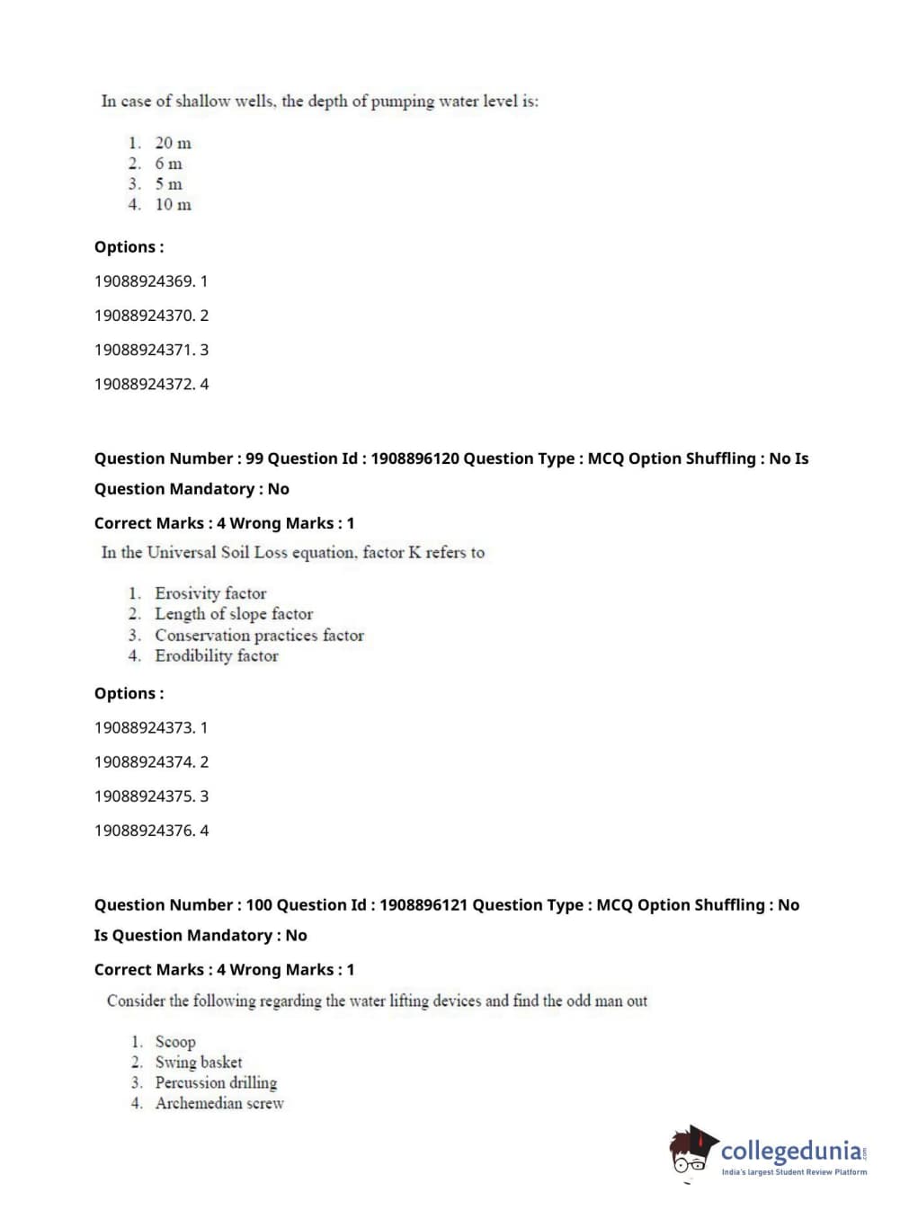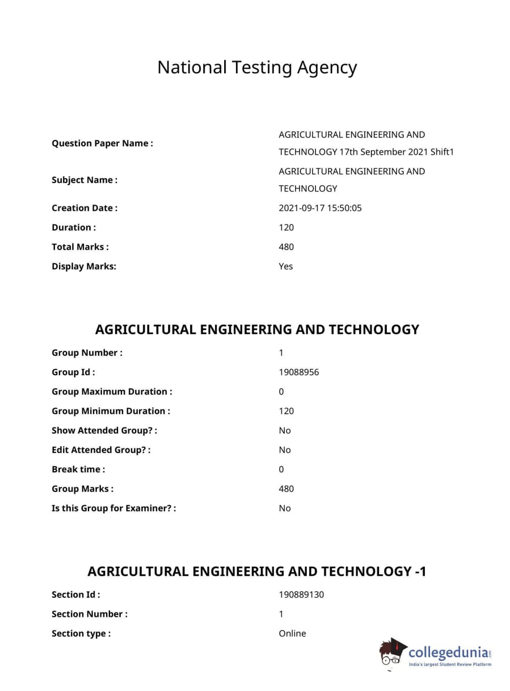 | ICAR AIEEA 2021 PG - AGRICULTURAL ENGINEERING AND TECHNOLOGY Question Paper PDF | ICAR AIEEA 2021 PG - AGRICULTURAL ENGINEERING AND TECHNOLOGY Answer Key PDF |