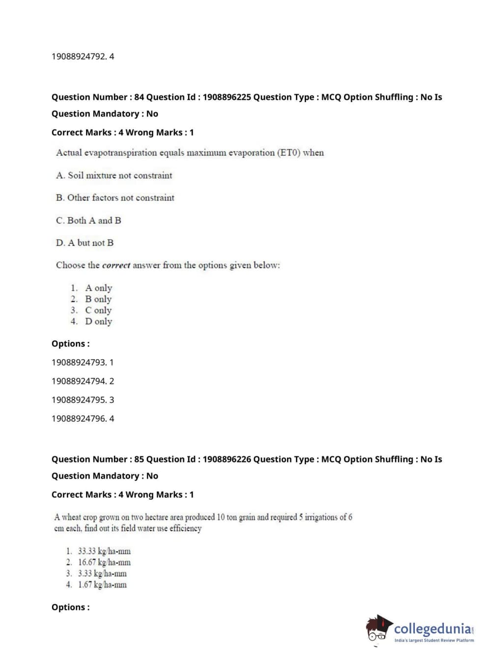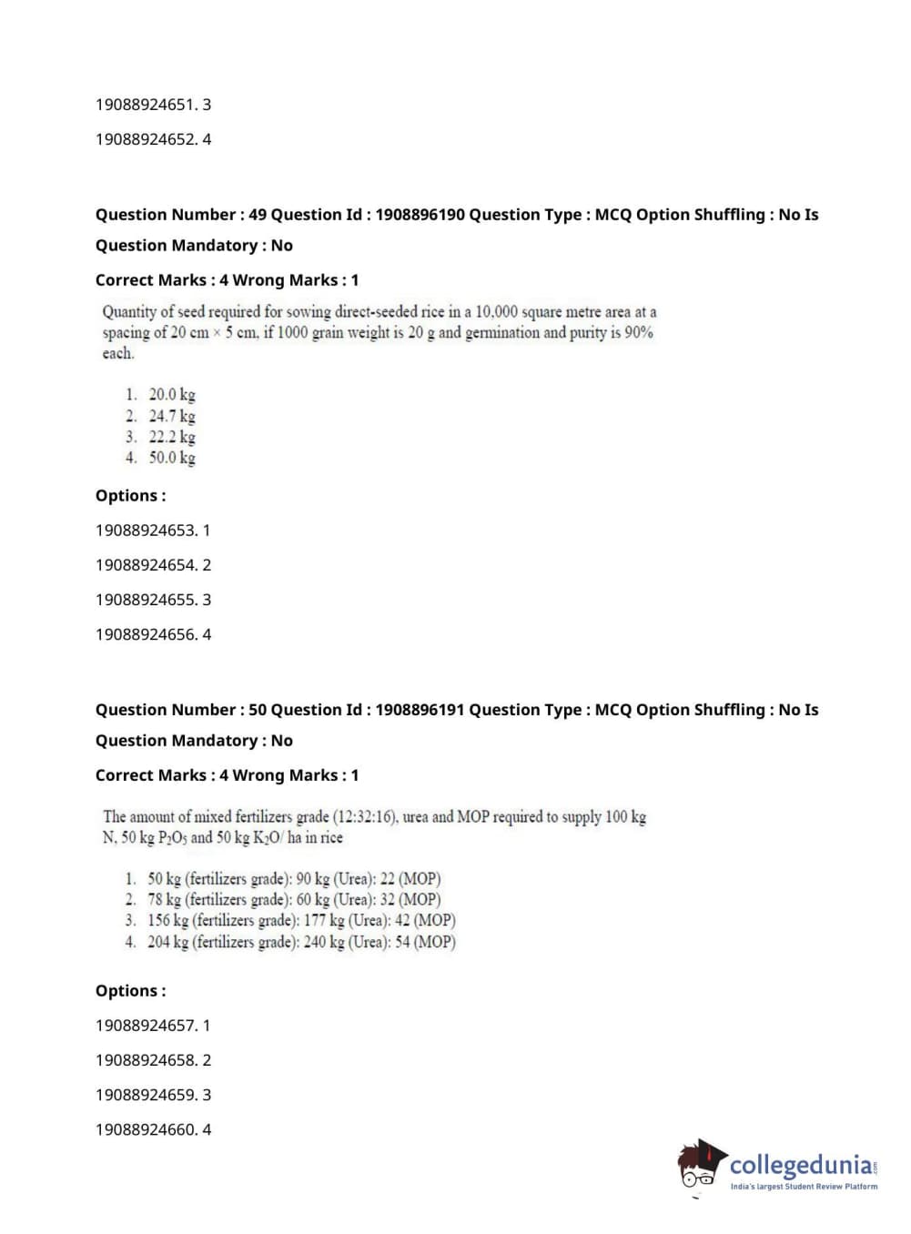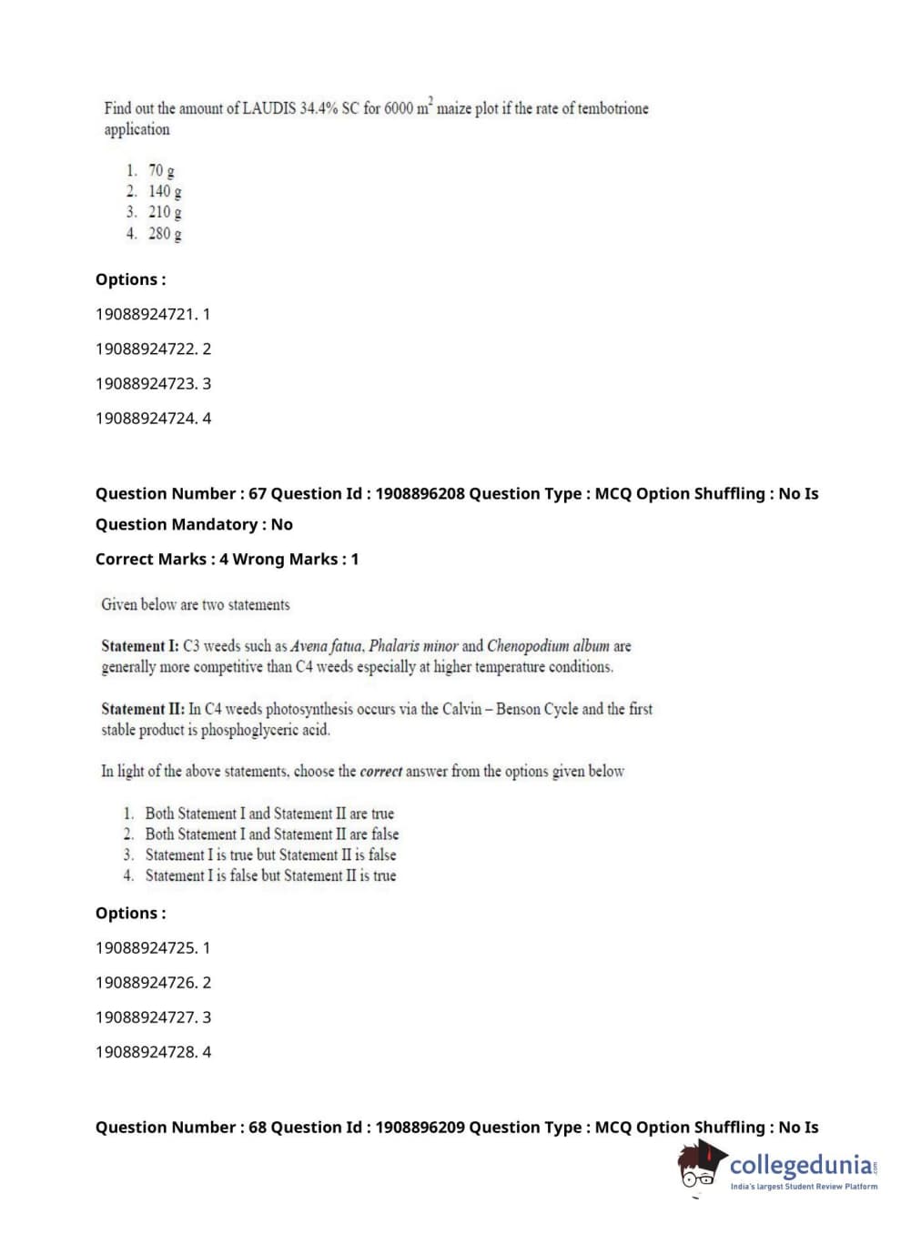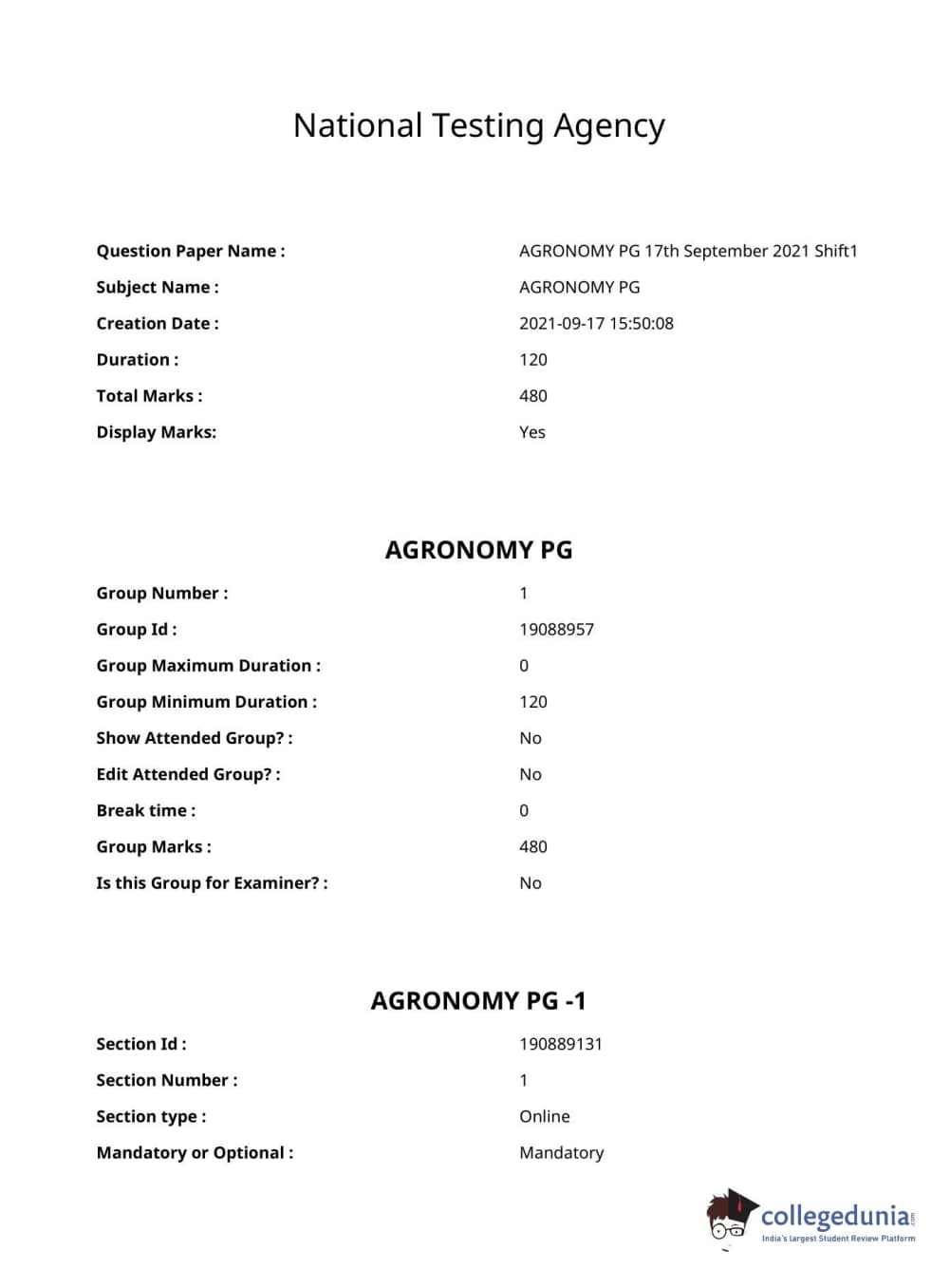 ICAR AIEEA 2021 PG - AGRONOMY Question paper with answer key pdf conducted on September 17, 2021 is available for download. The exam was successfully organized by National Testing Agency (NTA). The question paper comprised a total of 120 questions.