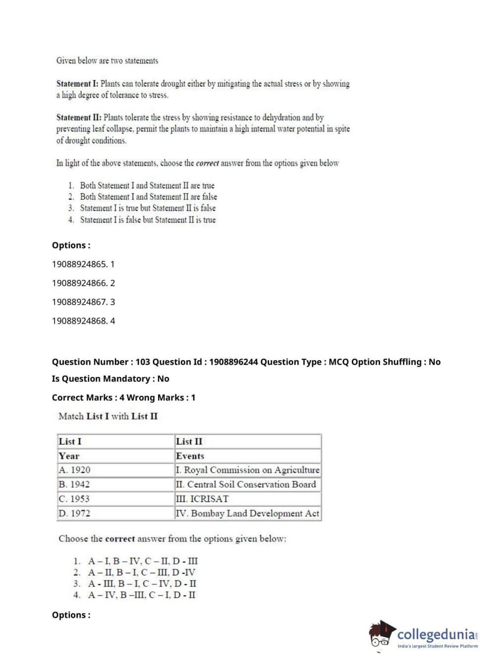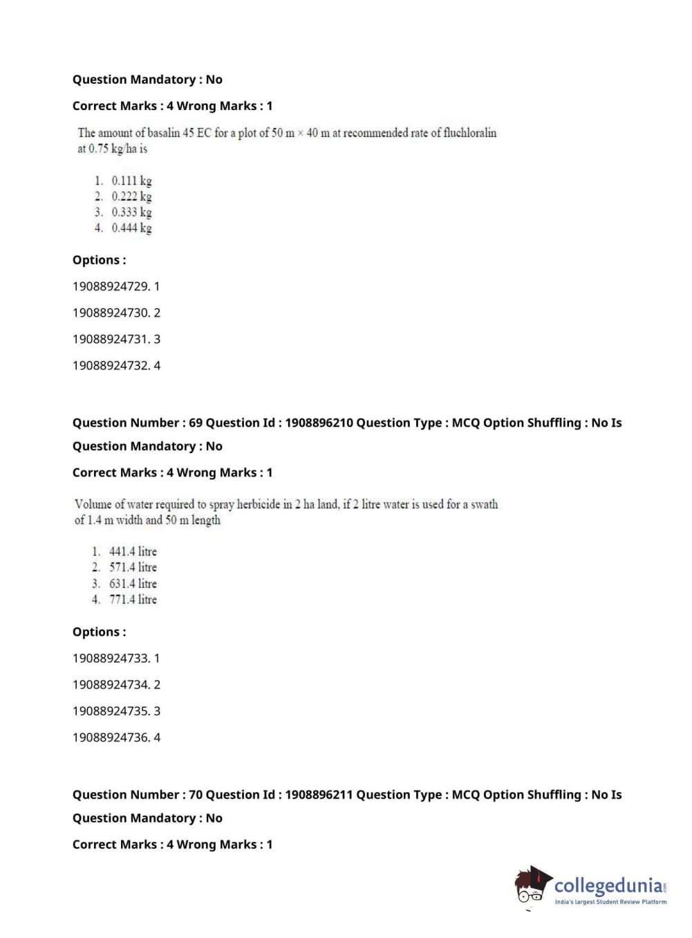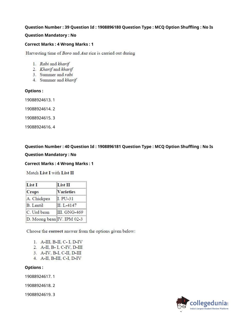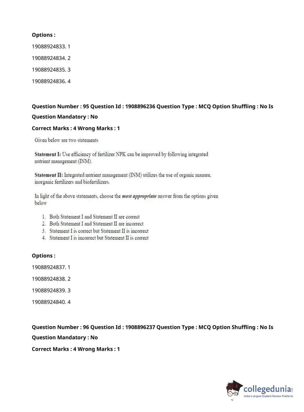 ICAR AIEEA 2021 PG - AGRONOMY Question paper with answer key pdf conducted on September 17, 2021 is available for download. The exam was successfully organized by National Testing Agency (NTA). The question paper comprised a total of 120 questions.