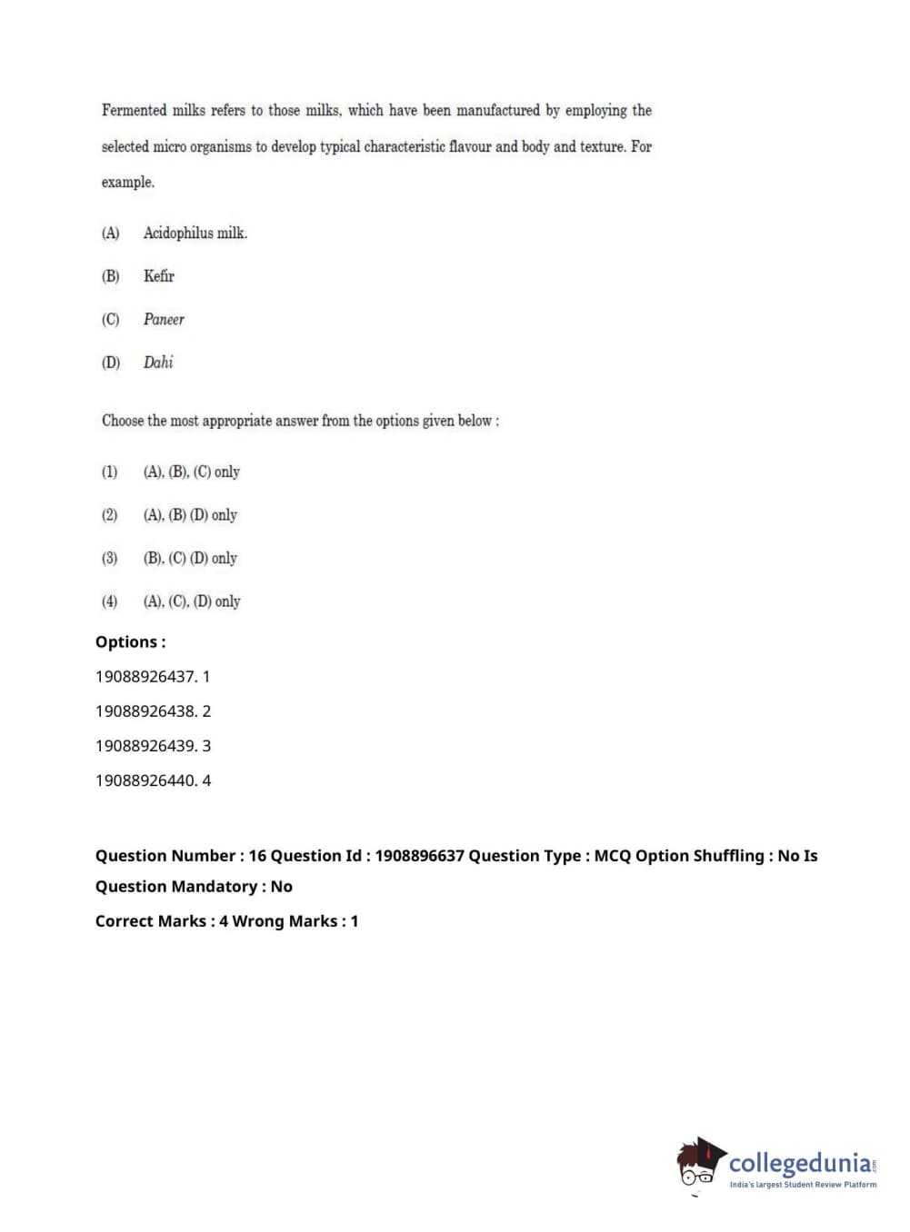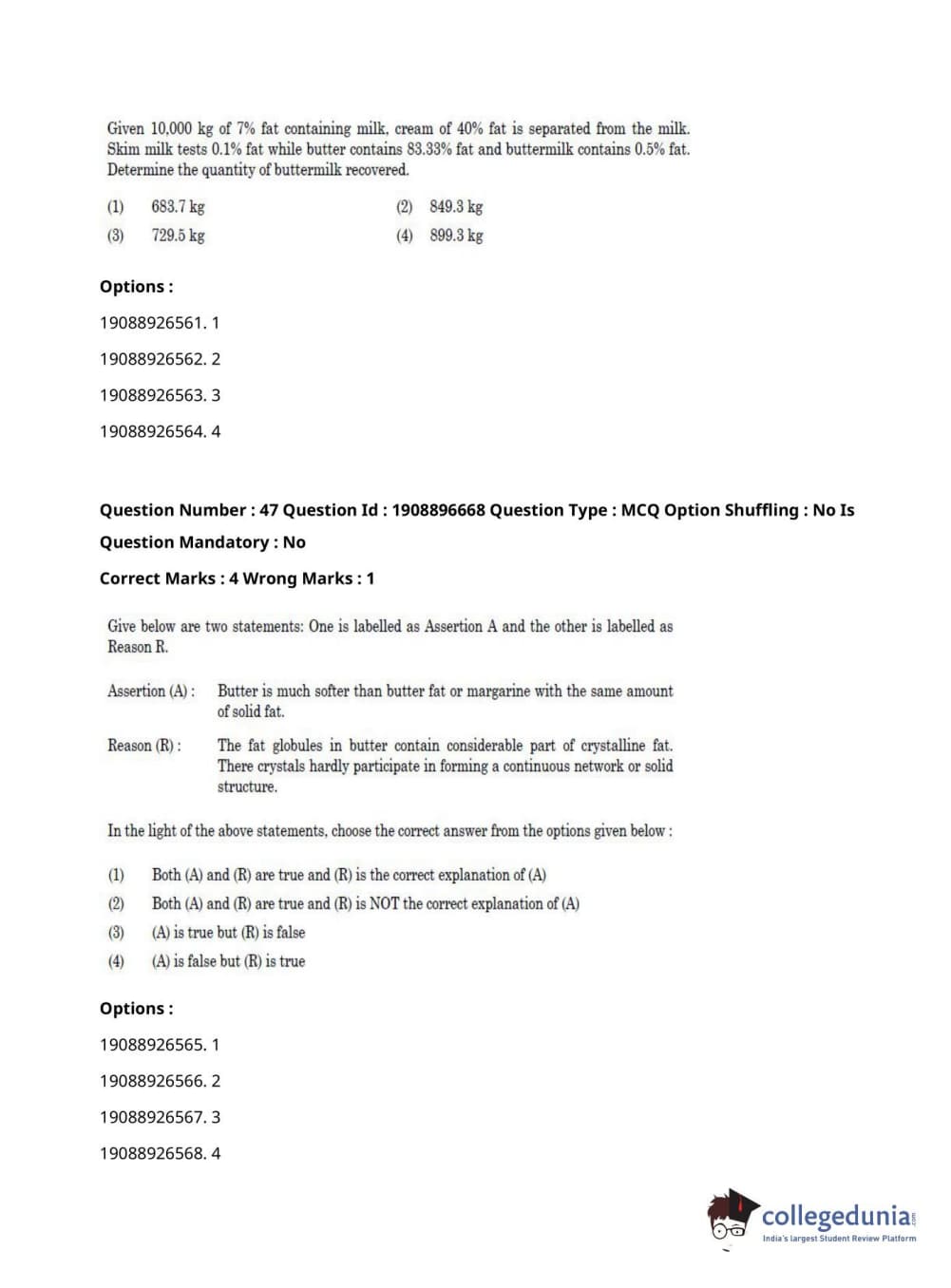 ICAR AIEEA 2021 PG - DAIRY TECHNOLOGY Question Paper with Answer Key PDFs