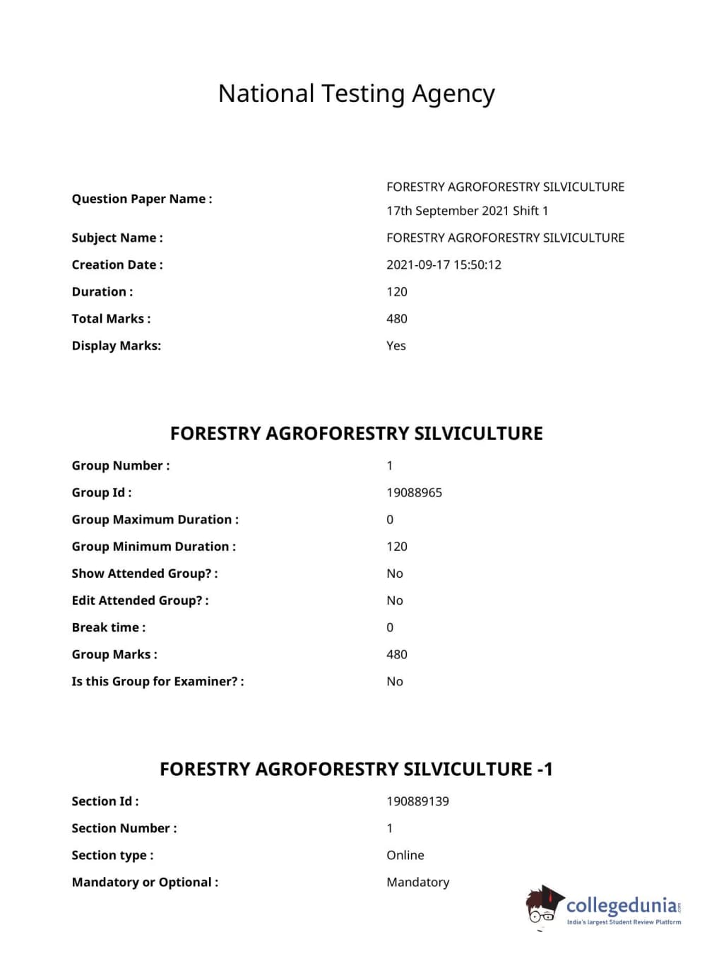 ICAR AIEEA 2021 PG - FORESTRY AGROFORESTRY SILVICULTURE Question paper with answer key pdf conducted on September 17, 2021 is available for download. The exam was successfully organized by National Testing Agency (NTA). The question paper comprised a total of 120 questions.