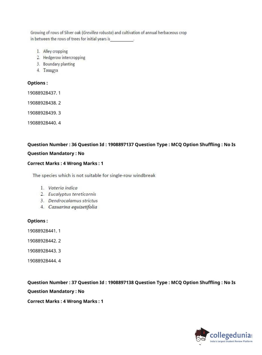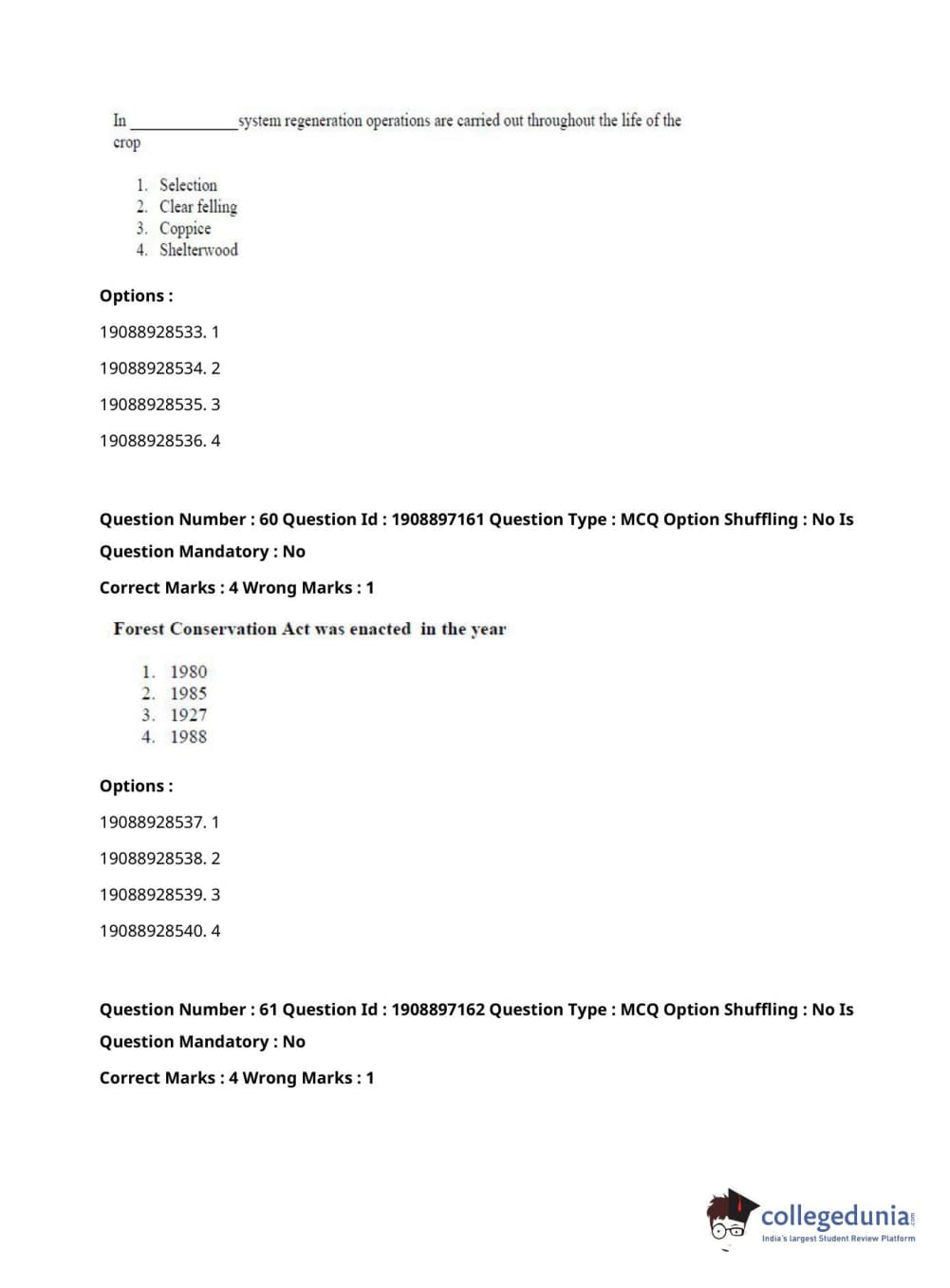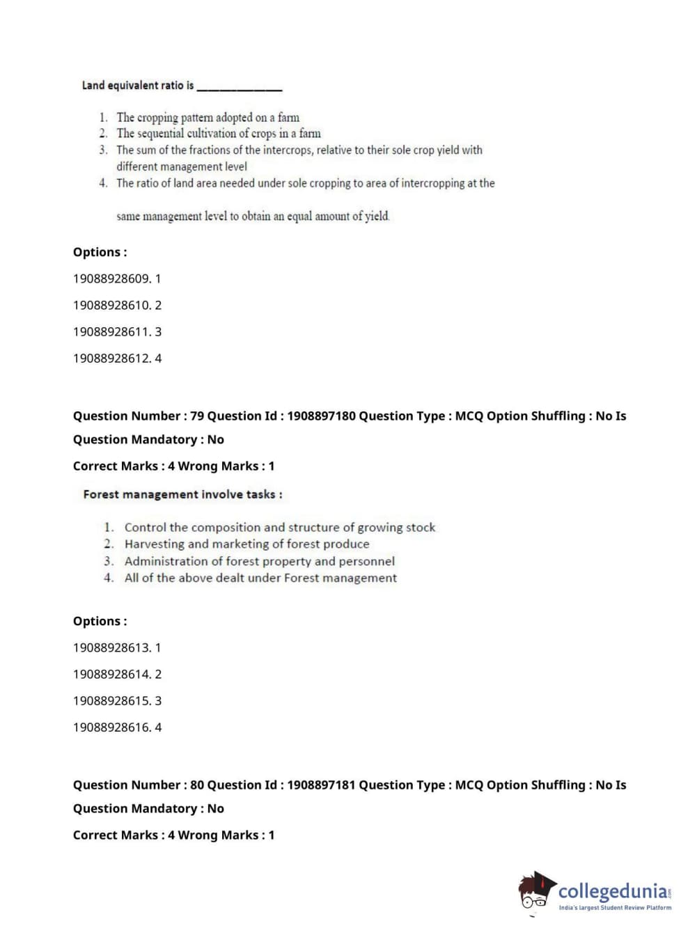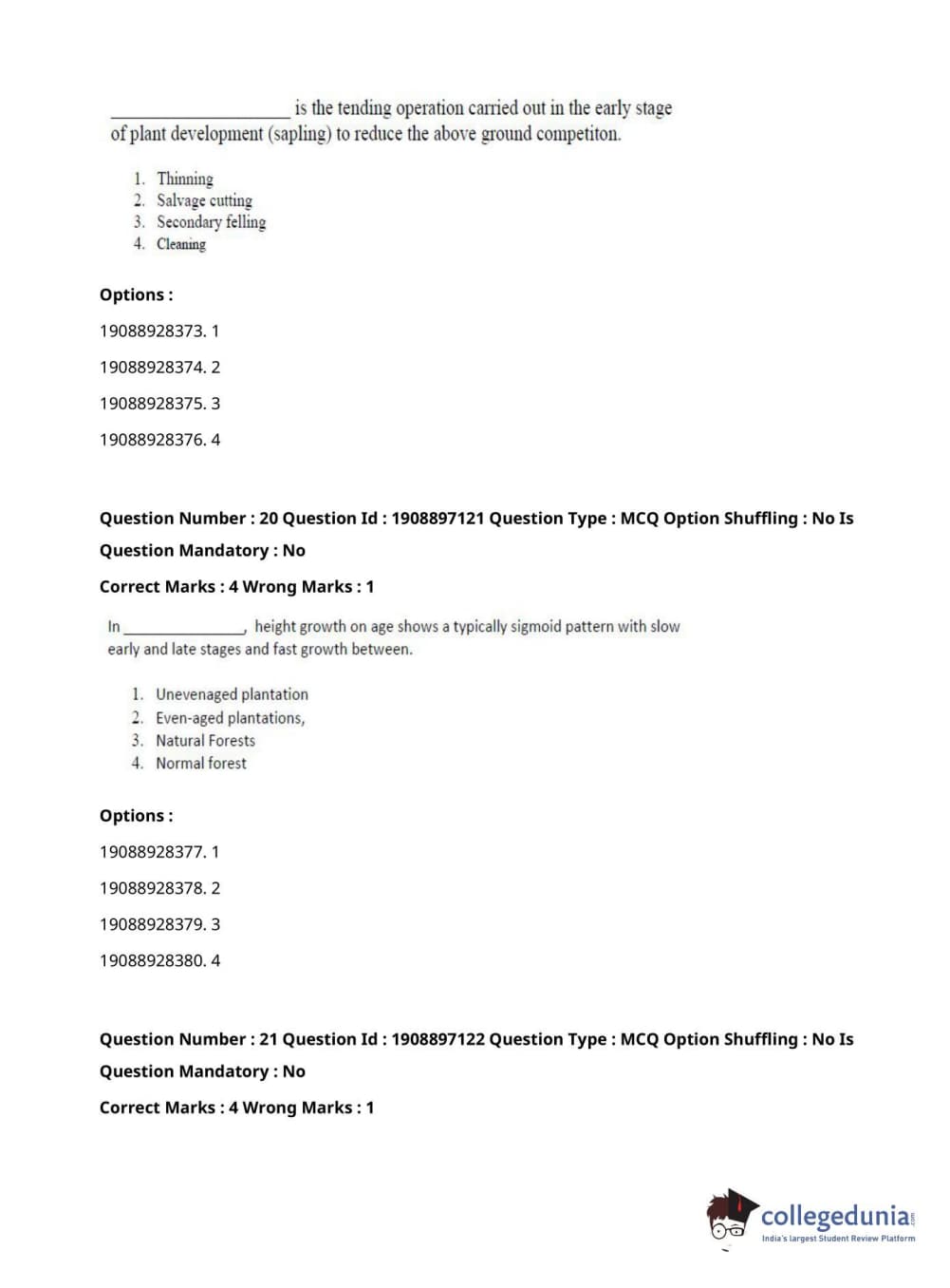 ICAR AIEEA 2021 PG - FORESTRY AGROFORESTRY SILVICULTURE Question Paper with Answer Key PDFs