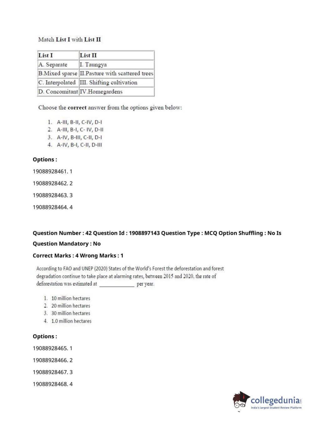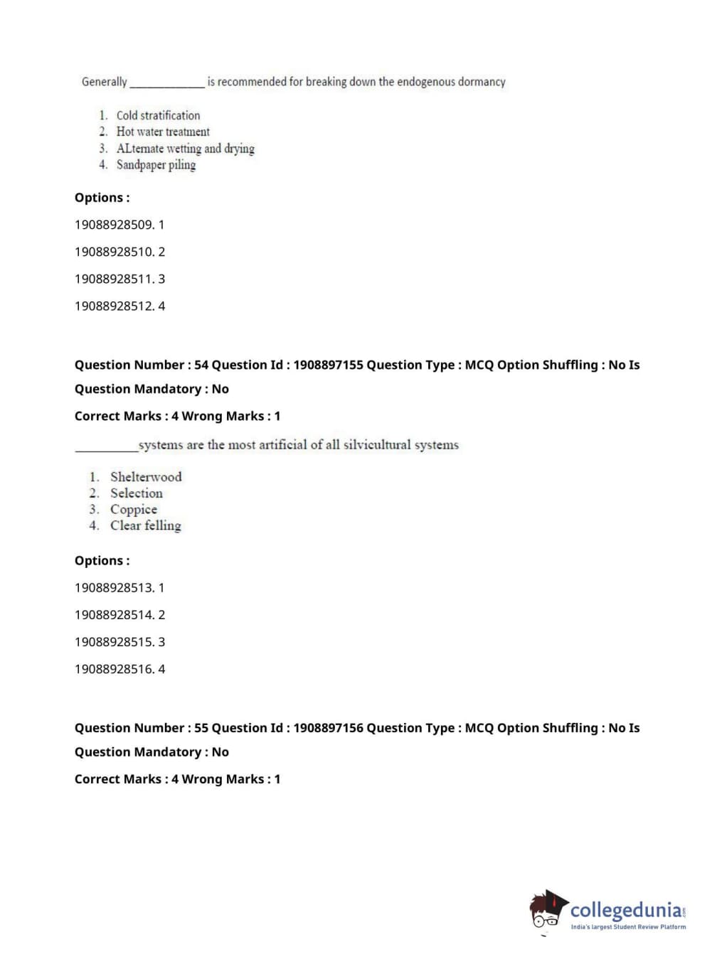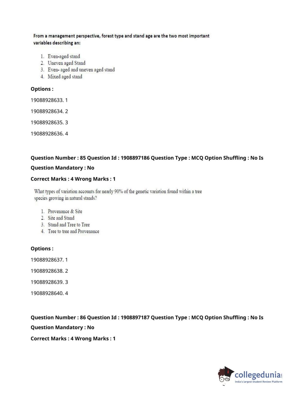 ICAR AIEEA 2021 PG - FORESTRY AGROFORESTRY SILVICULTURE Question Paper with Answer Key PDFs
